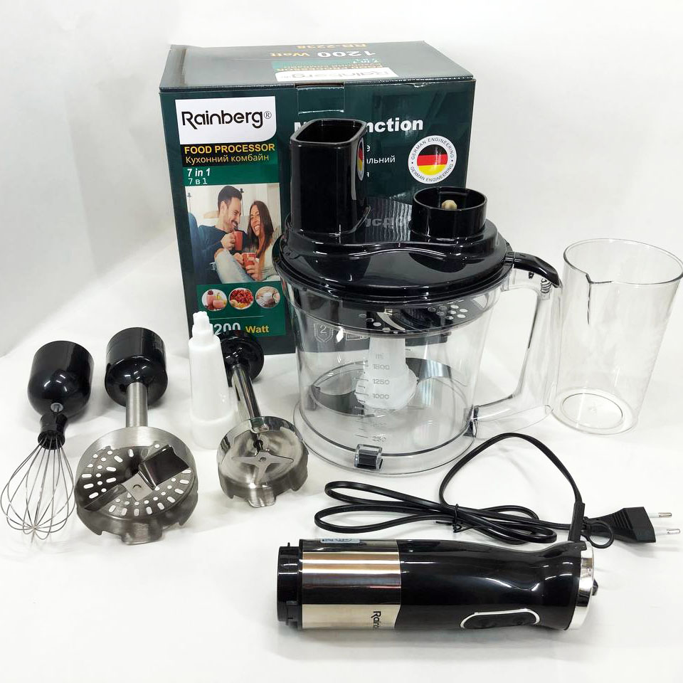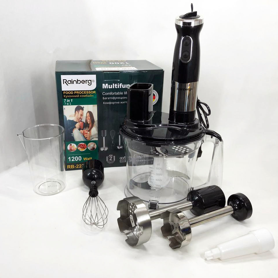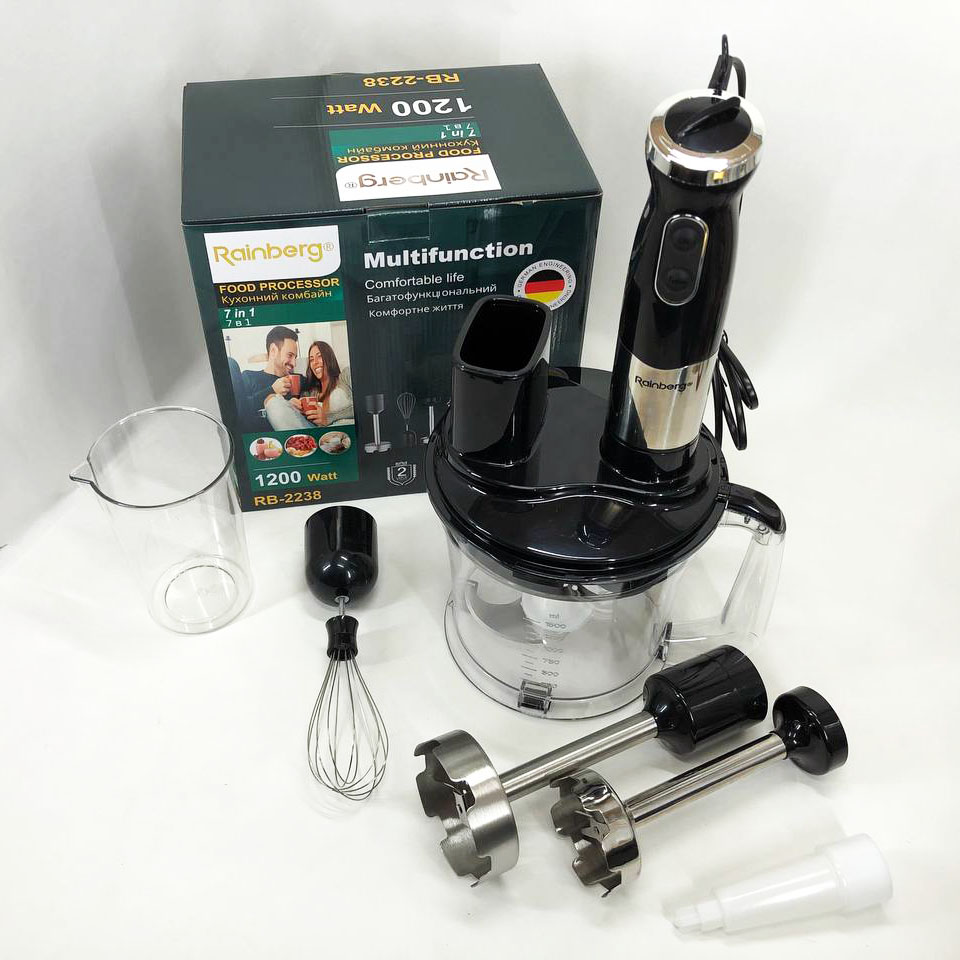 Занурювальний блендер Rainberg RB-2238 – це компактний побутовий прилад потужністю 1200 Вт, який буде простий у використанні, надійний та безпечний. Модель можна використовувати для подрібнення, змішування та збивання продуктів.