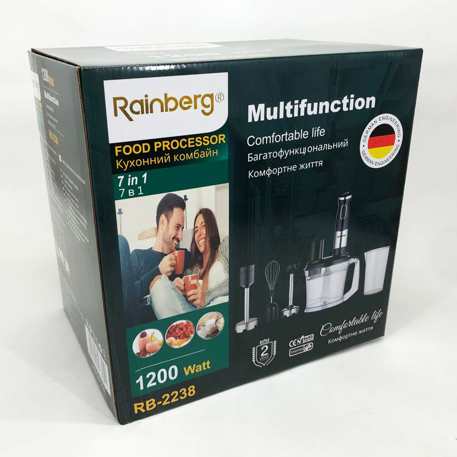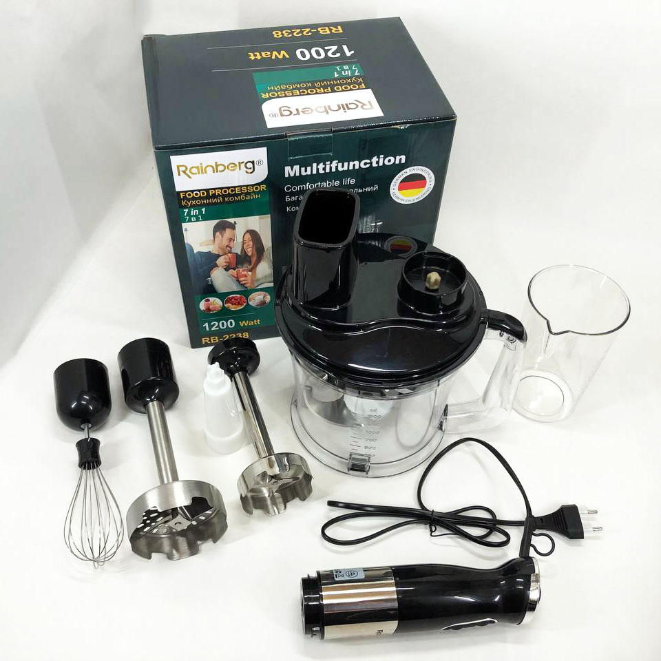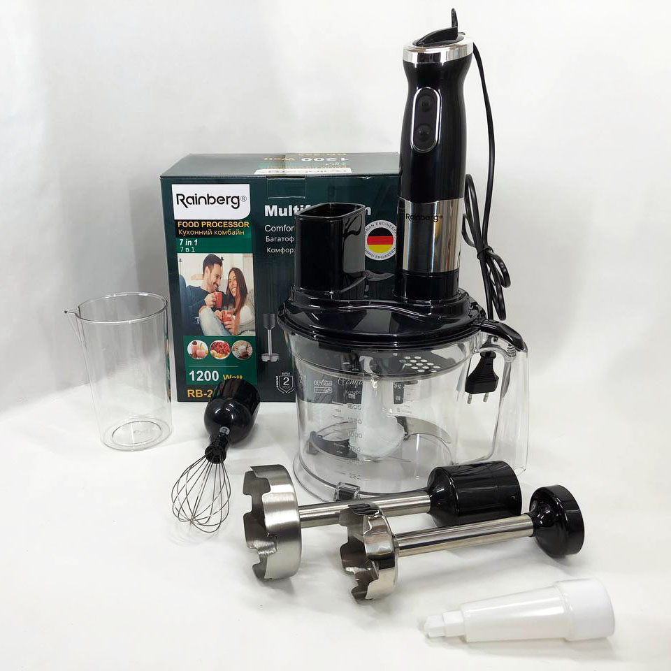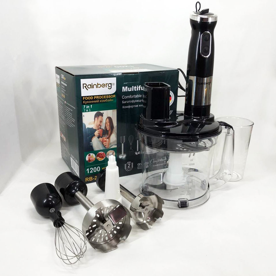 Занурювальний блендер Rainberg RB-2238 – це компактний побутовий прилад потужністю 1200 Вт, який буде простий у використанні, надійний та безпечний. Модель можна використовувати для подрібнення, змішування та збивання продуктів.