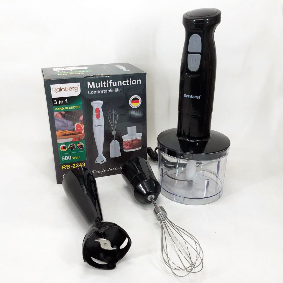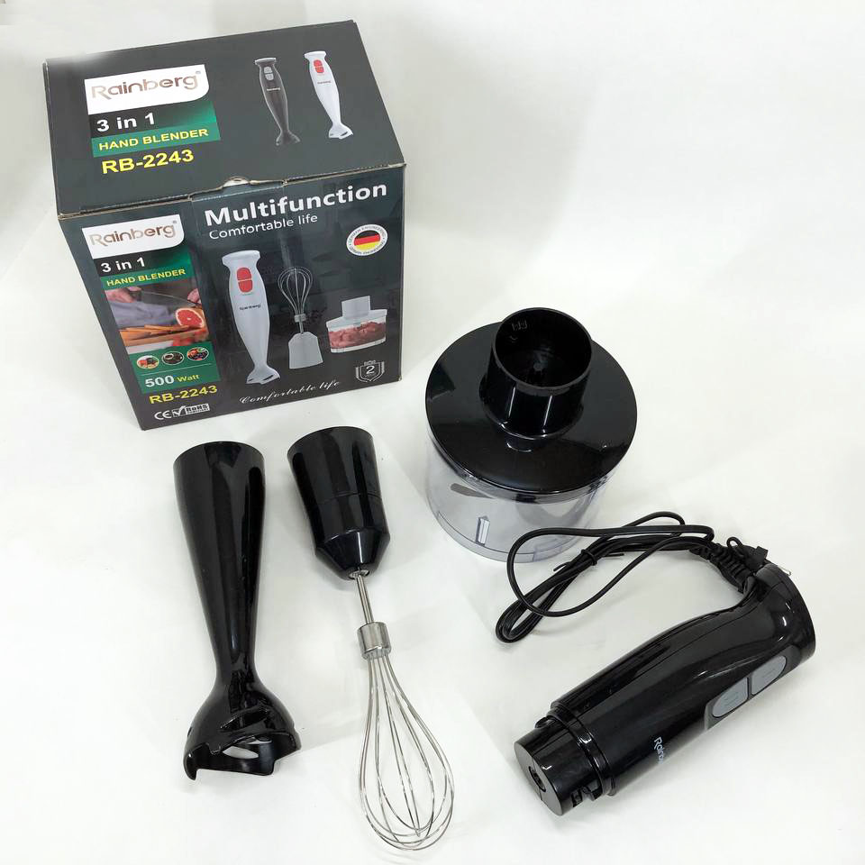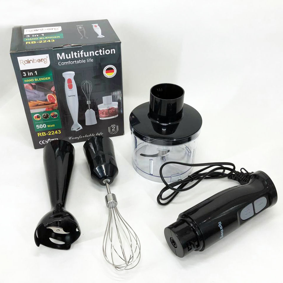 Блендер Rainberg RB RB-2243 3в1 – хороший надійний, і що найголовніше, цілком доступний помічник на кухні для більшості сучасних господинь. Адже з його допомогою можна приготувати, подрібнити, перемішати до однорідної маси багато харчових компонентів, починаючи від дитячого харчування та закінчуючи вишуканими, легкими та дієтичними супами-пюре.