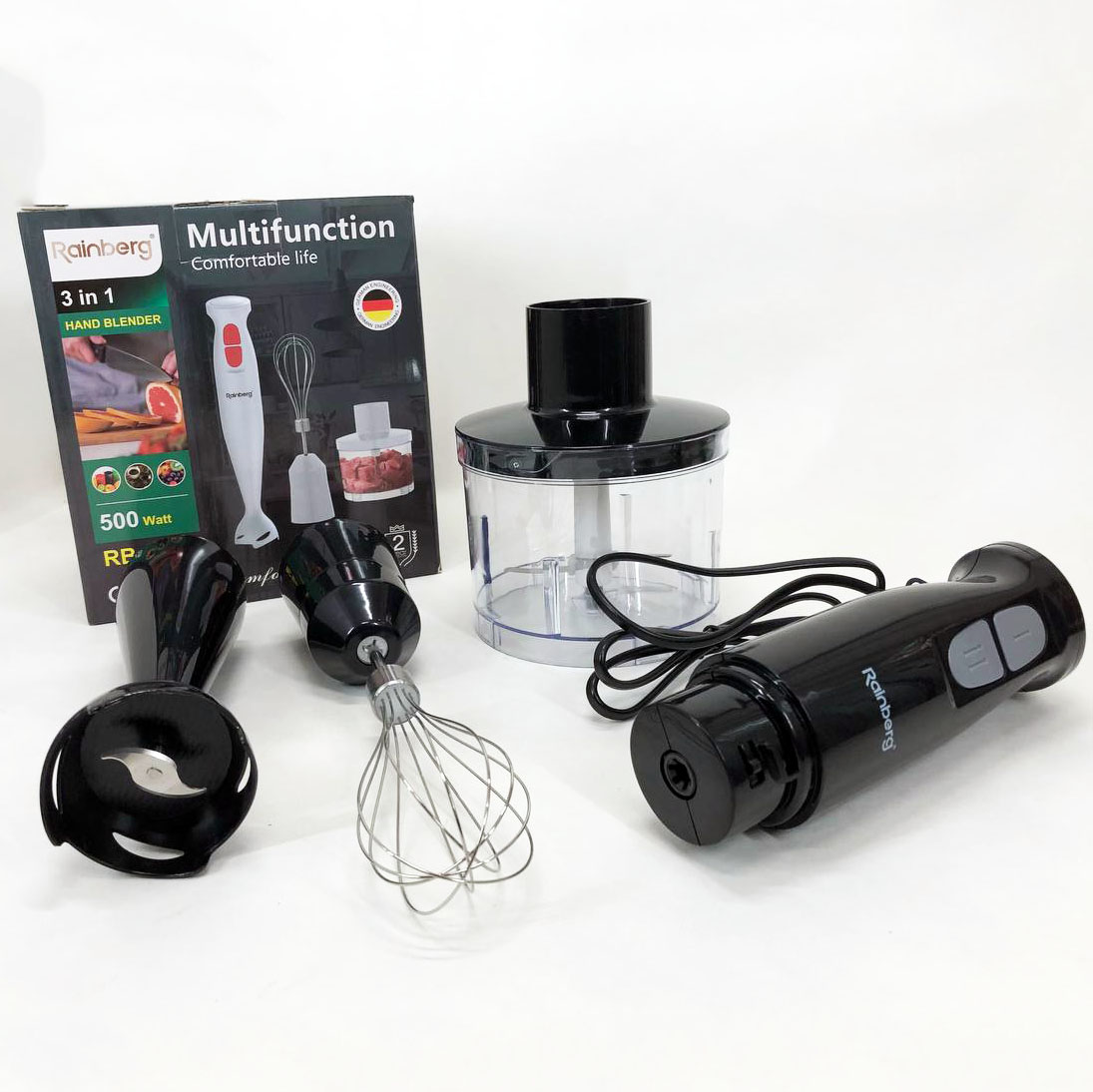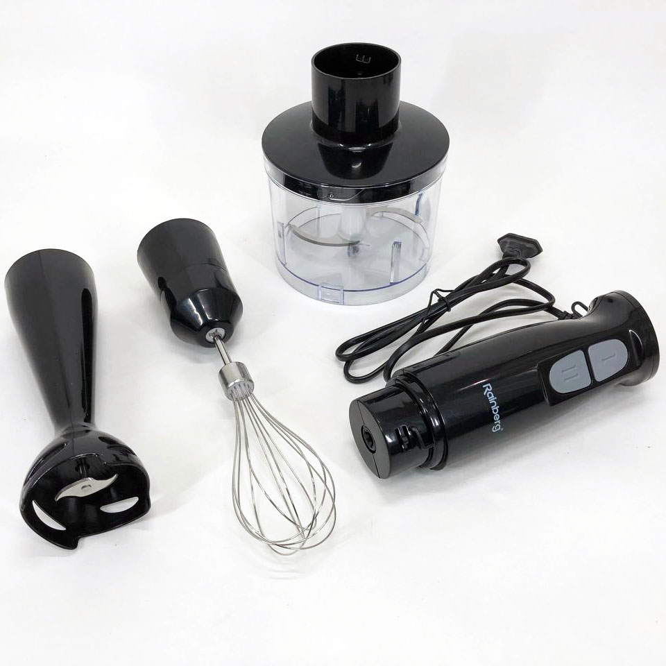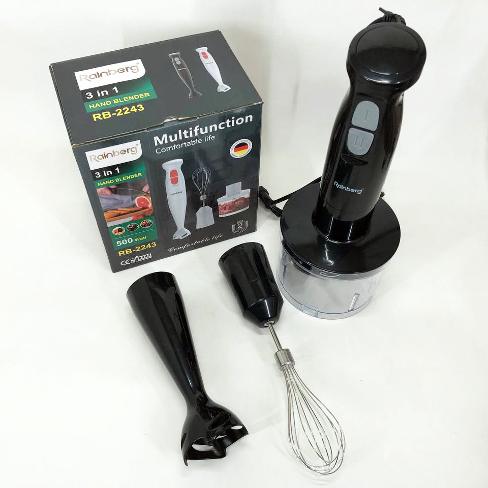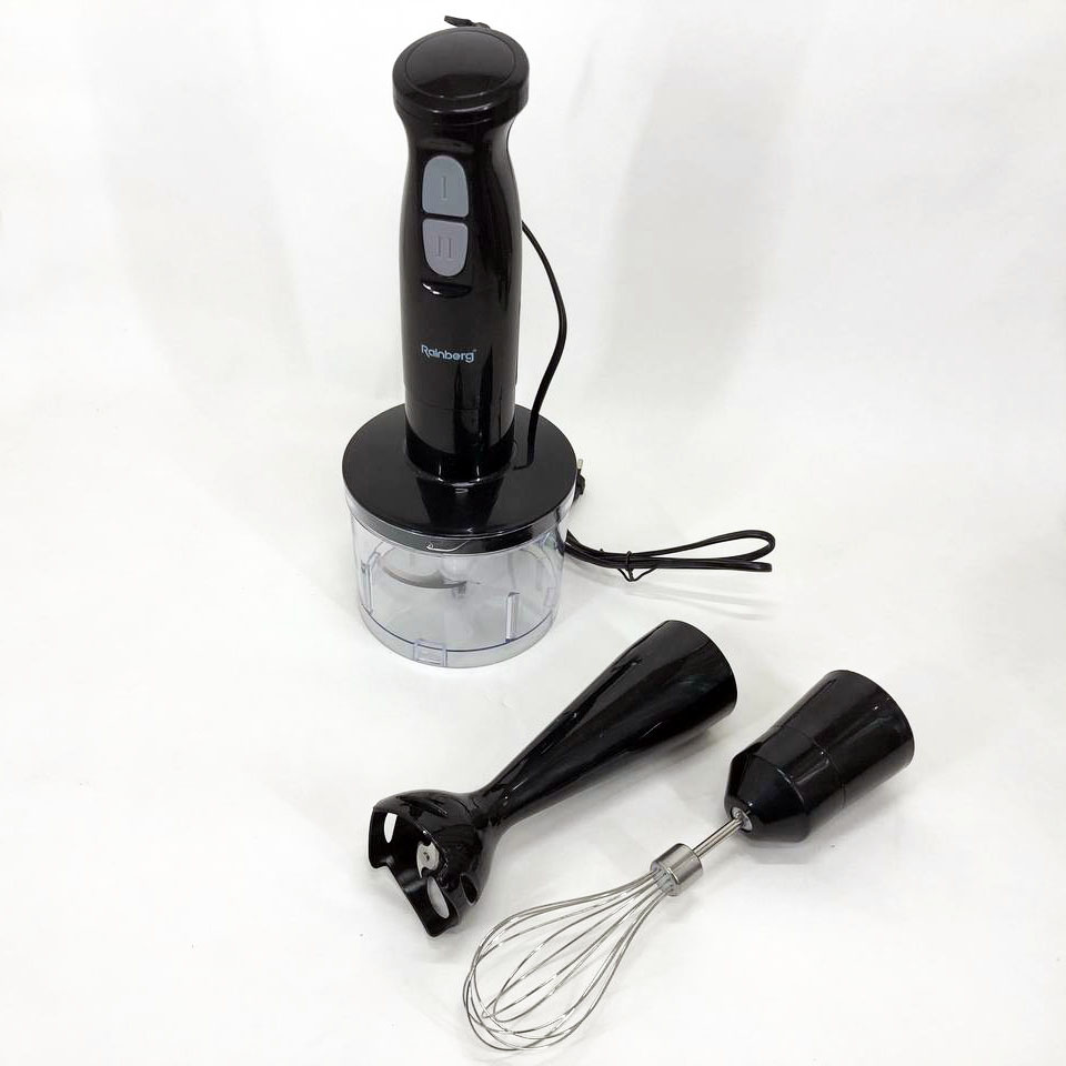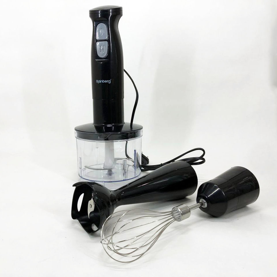 Потужності блендера в 500 Вт цілком достатньо для виконання всіх цих завдань із головою. Крім усього іншого варто згадати про те, що модель Rainberg RB RB-2243 – ndash; це комбінований кухонний прилад. Який завдяки своїй багатій комплектації може застосовуватися також для збивання яєчних білків, приготування майонезів, соусів і т.д, виконуючи по суті роль міксера завдяки насадці-віночку.