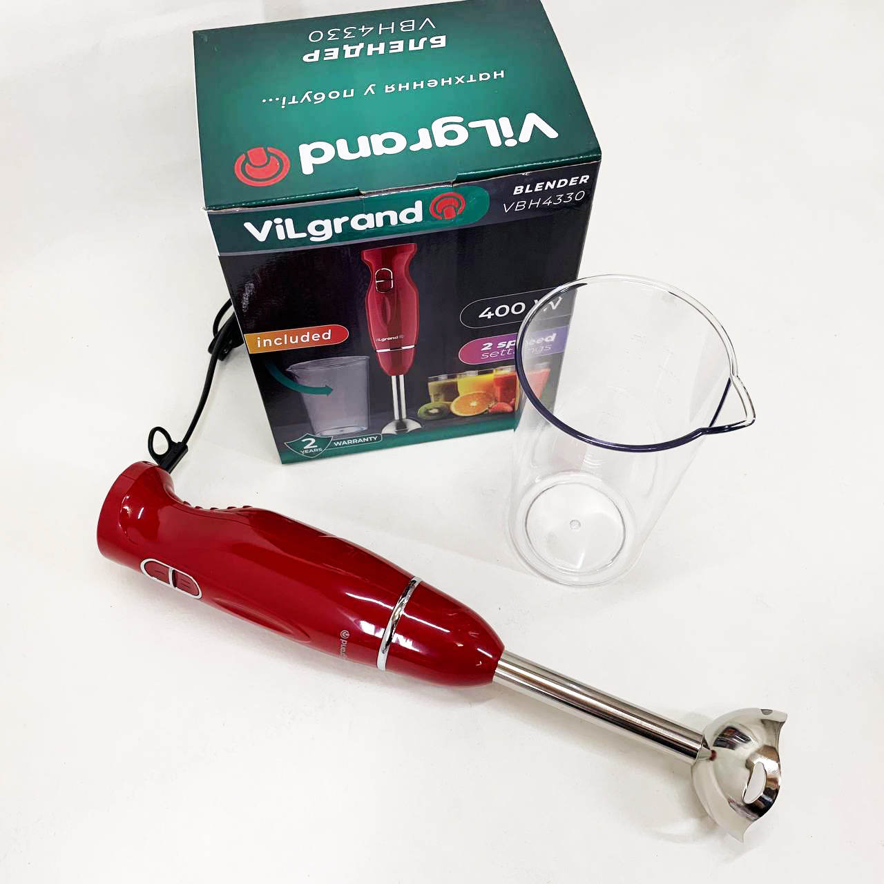 Блендер занурювальний з мірною склянкою VILGRAND VBH4330 red