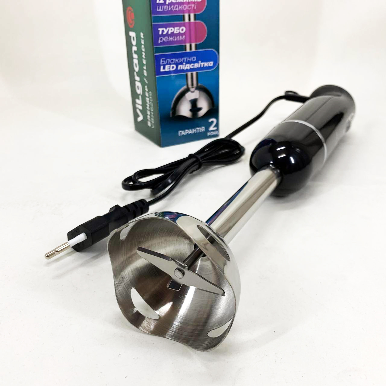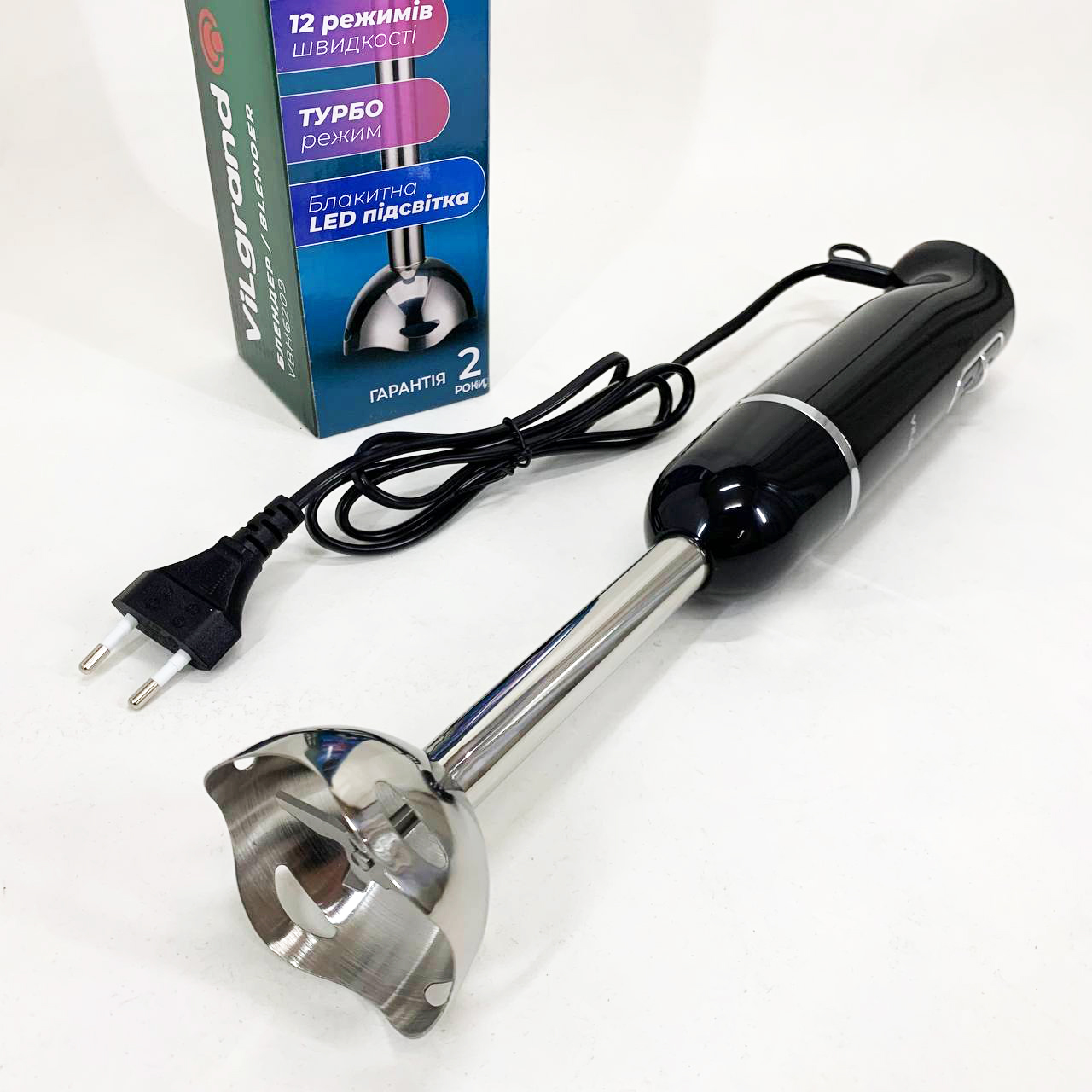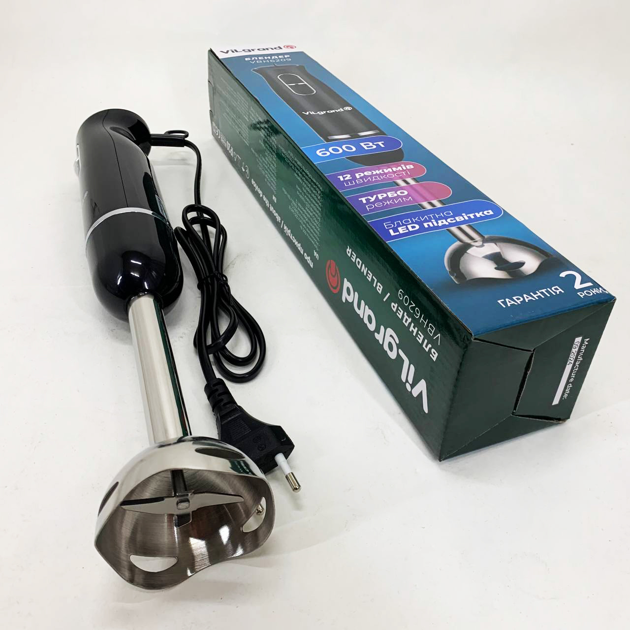 Блендер занурювальний VILGRAND VBH6209 — легко впорається з ручною кухонною роботою і допоможе приготувати різноманітні страви. та стильний дизайн. Очищується після використання і миється. Ножі виконані з високоякісної нержавіючої сталі. 50/60