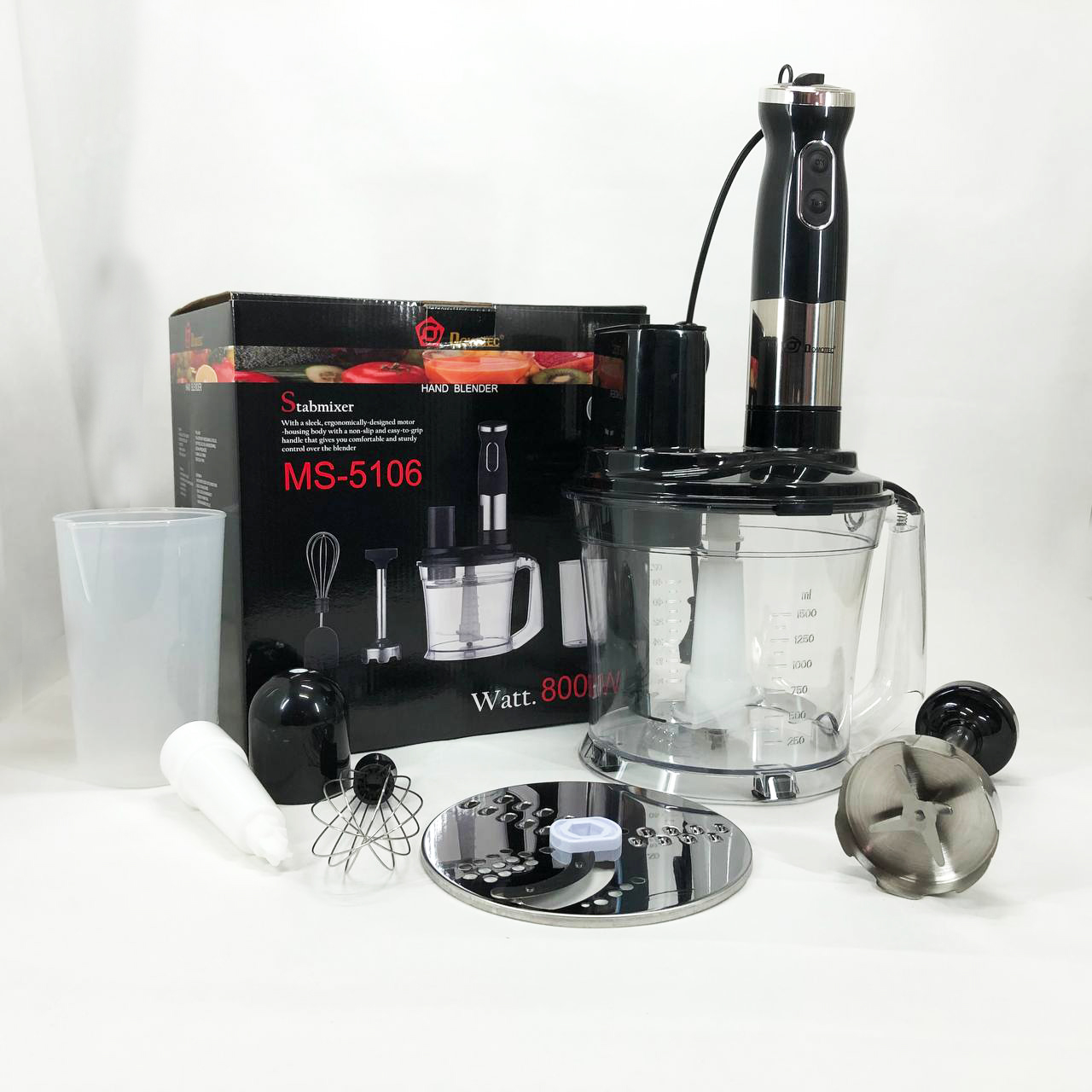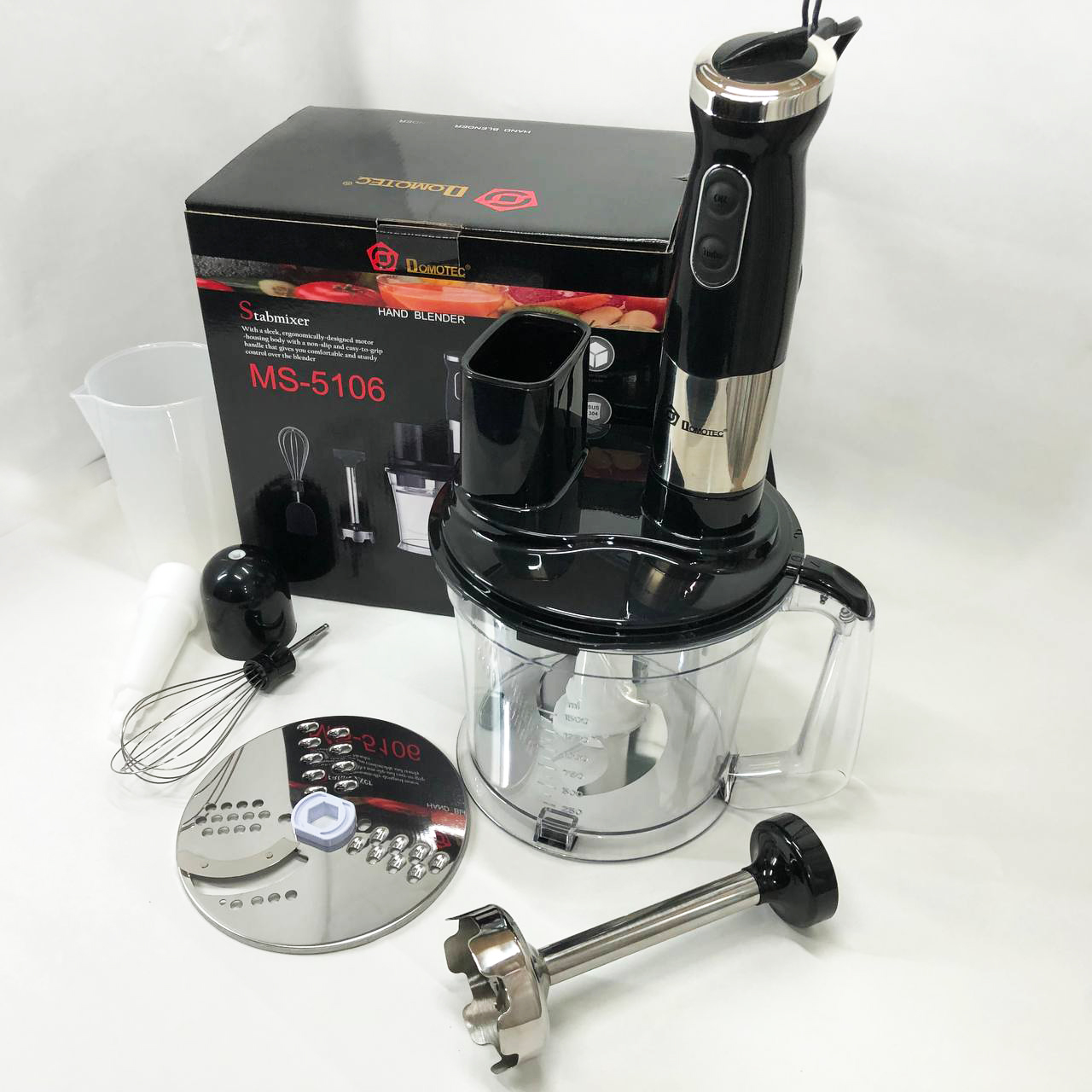 Занурювальний блендер Domotec MS-5106 використовується для подрібнення, змішування та збивання продуктів. Простий у використанні, надійний та безпечний.