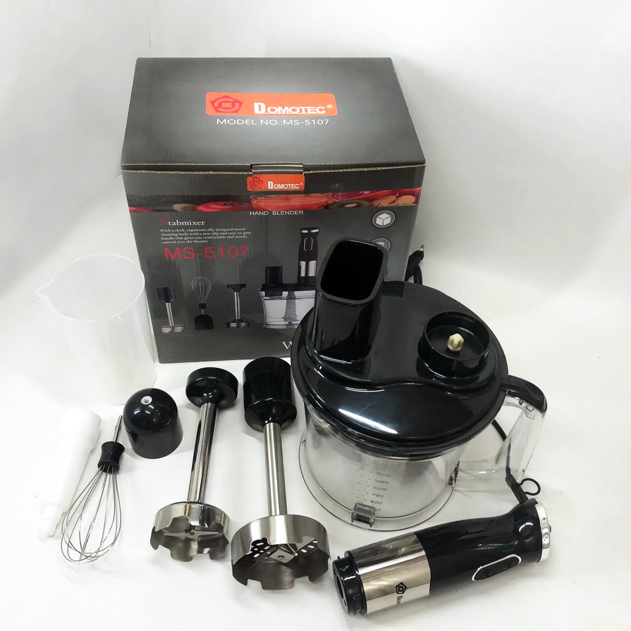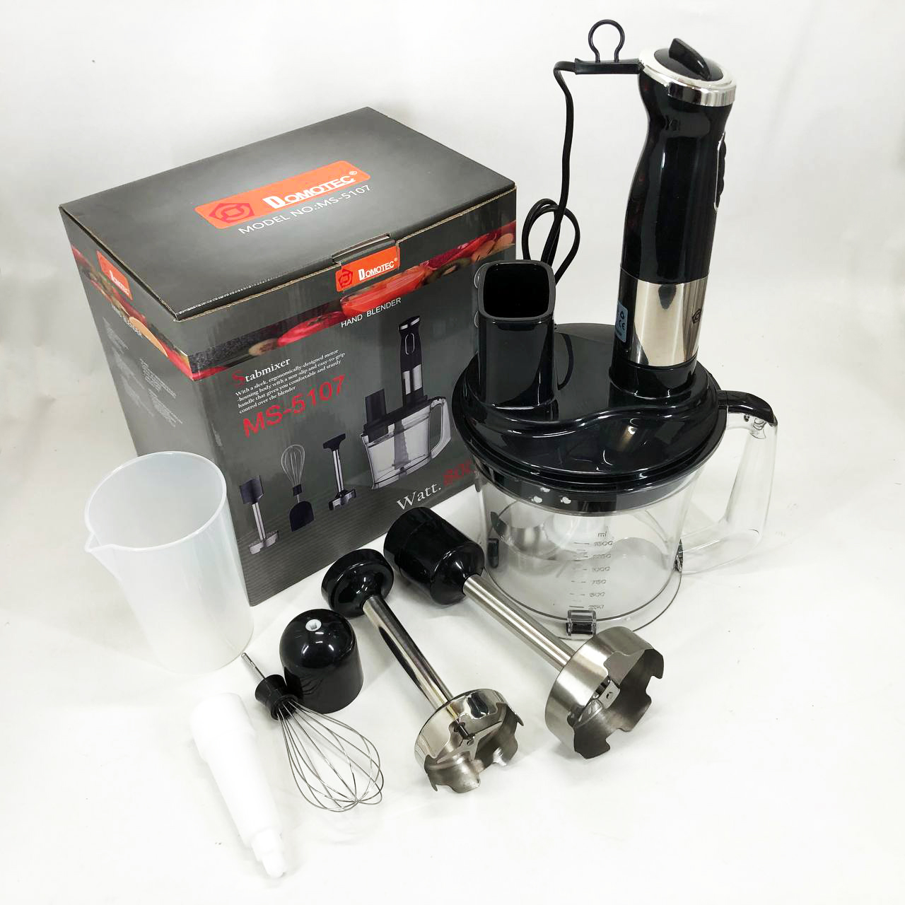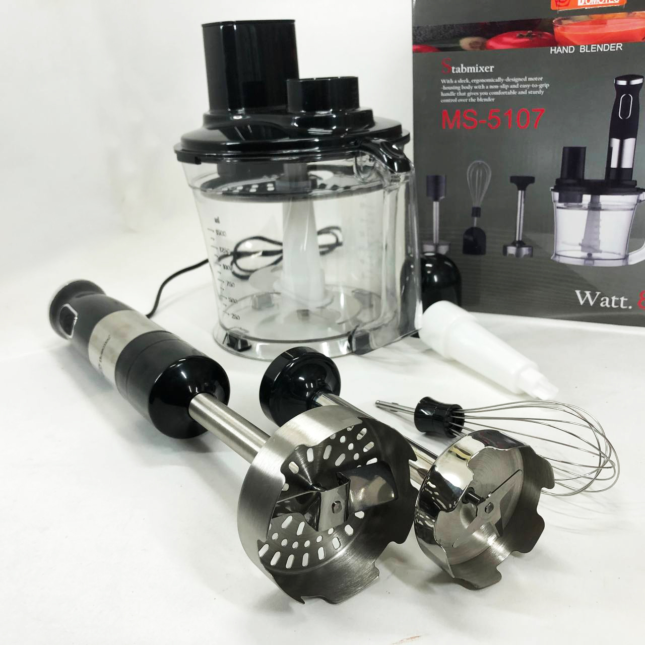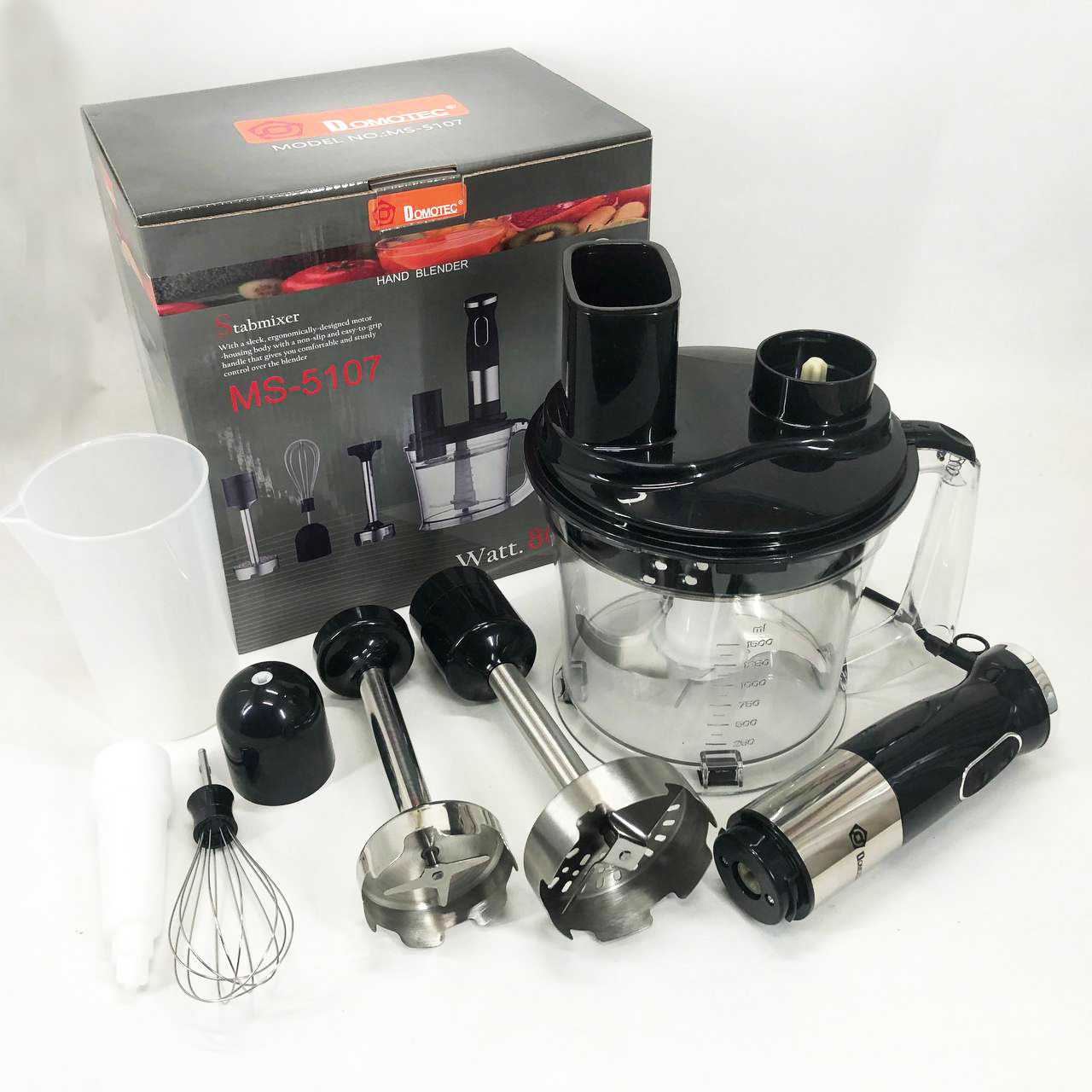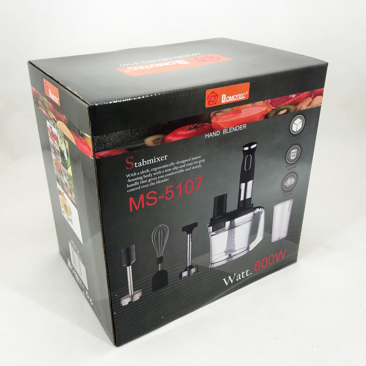 Занурювальний блендер Domotec MS-5107 – це компактний побутовий прилад потужністю 800 Вт, який буде простий у використанні, надійний та безпечний. Модель можна використовувати для подрібнення, змішування та збивання продуктів.