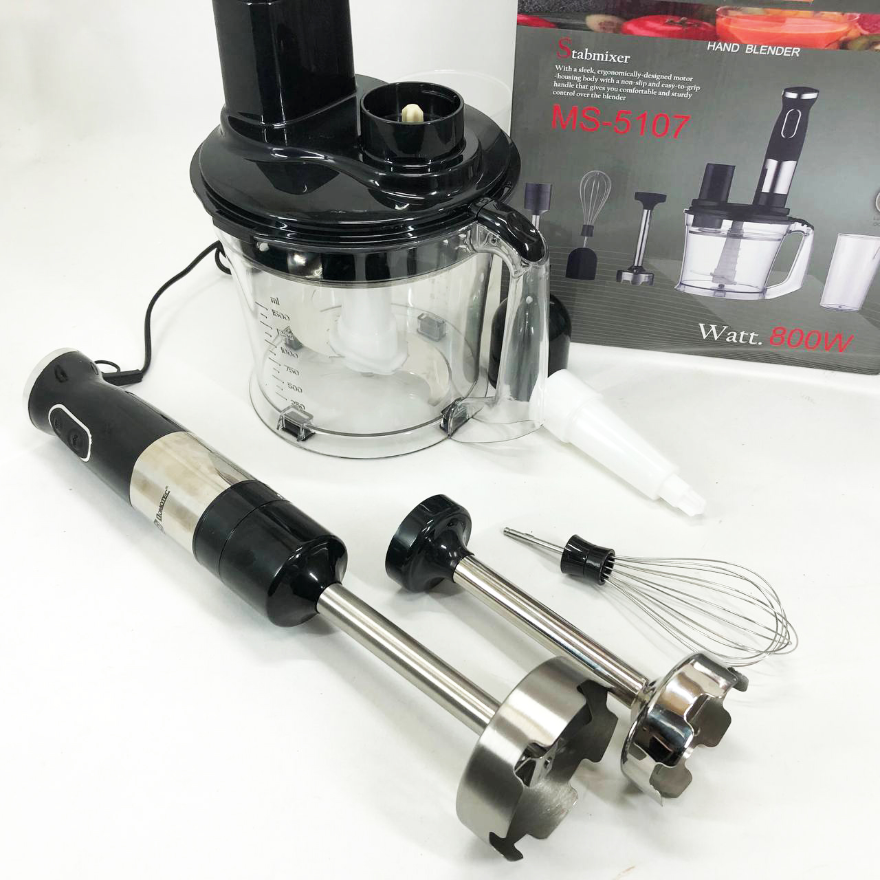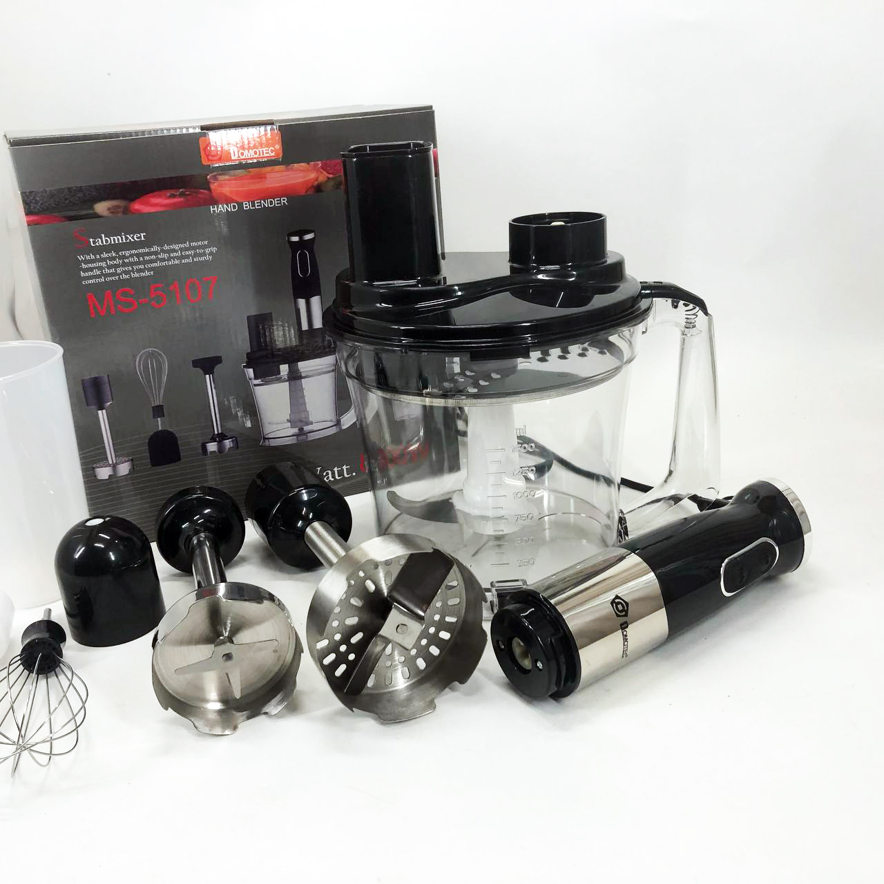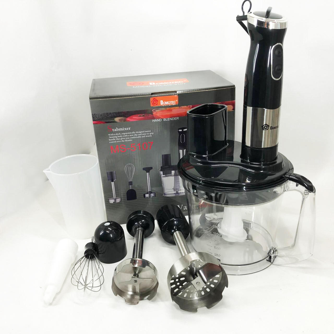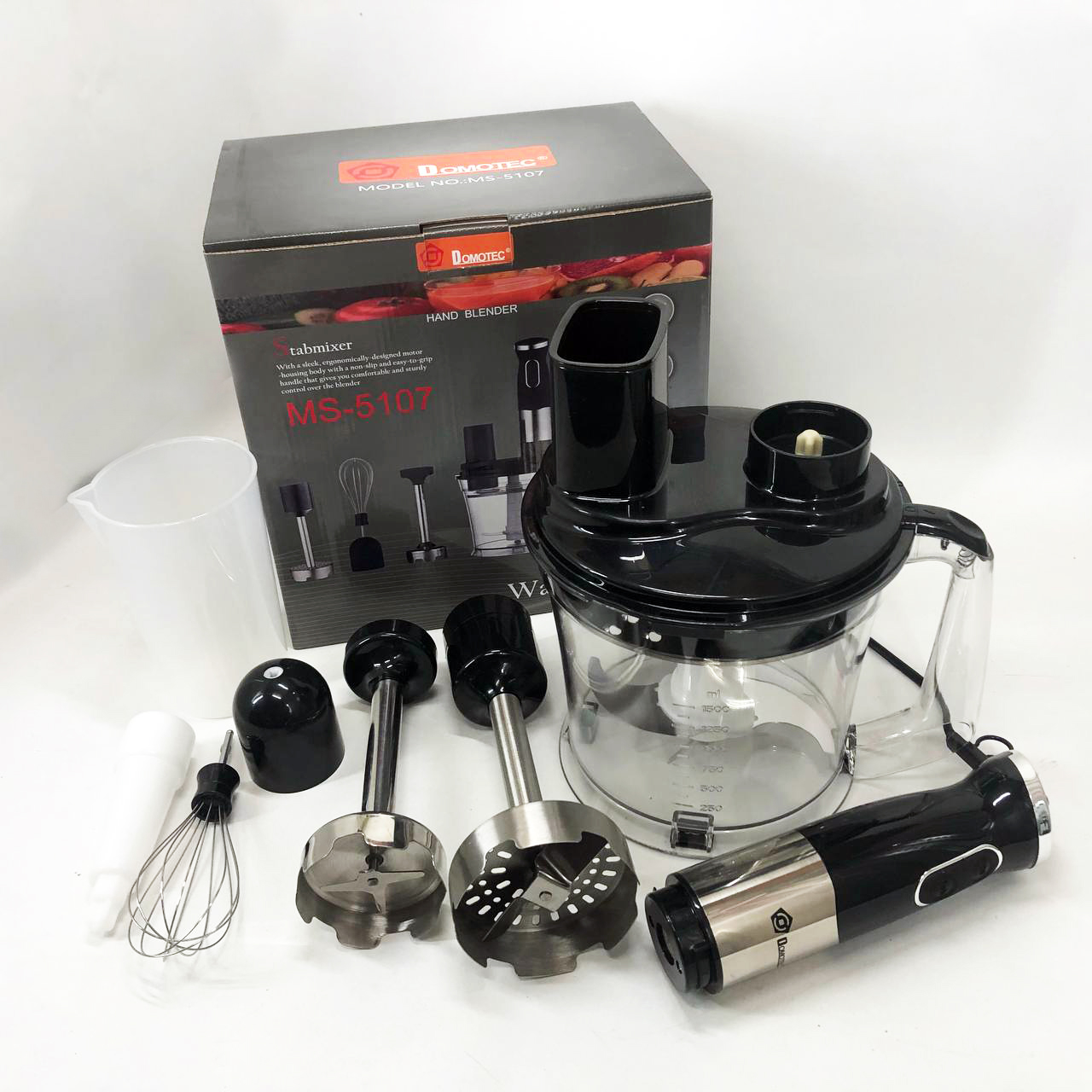 Занурювальний блендер Domotec MS-5107 – це компактний побутовий прилад потужністю 800 Вт, який буде простий у використанні, надійний та безпечний. Модель можна використовувати для подрібнення, змішування та збивання продуктів.