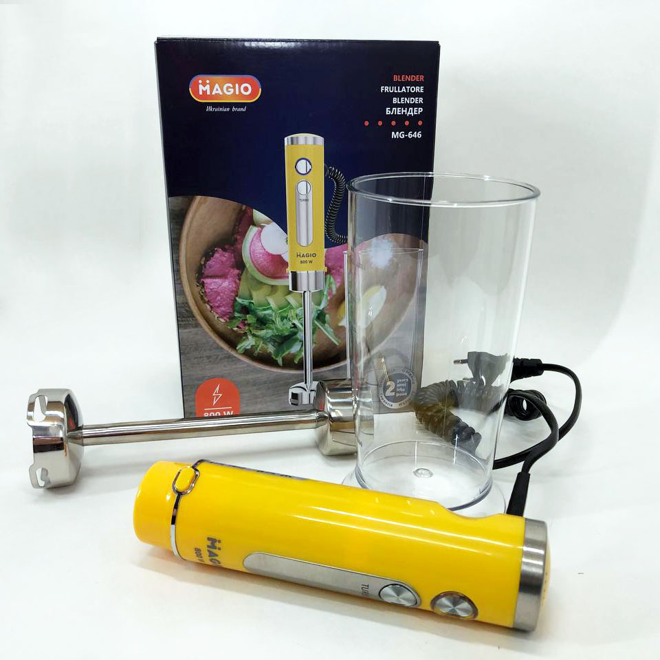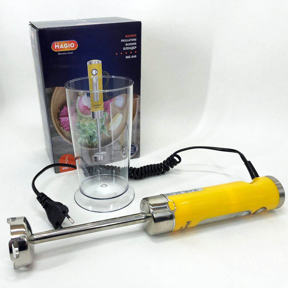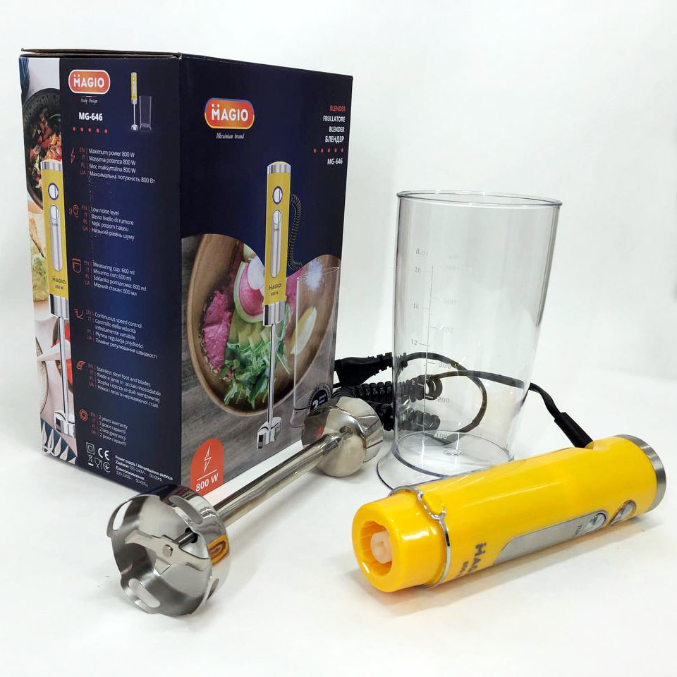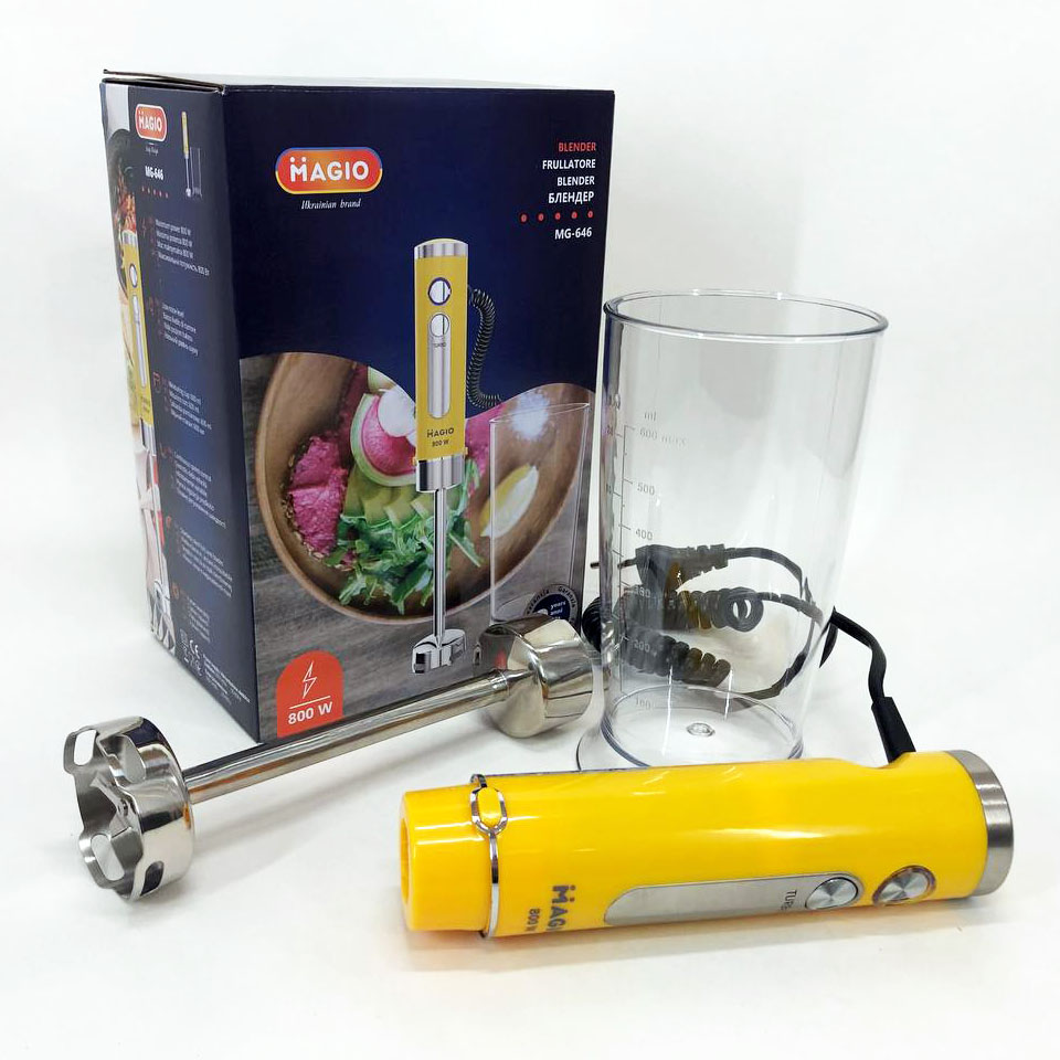 Блендер Magio MG-646 дозволить вам урізноманітнити ваше меню та приготувати новий кулінарний шедевр. Потужність блендера становить 800 Вт, що забезпечує ефективну безшумну роботу протягом тривалого часу. Занурювальна частина виконана з нержавіючої сталі — запорука стійкості до зносу та довговічності. Блендер може працювати на 13 швидкостях, що плавно перемикаються. Перемикач знаходиться на ручці приладу, що дуже зручно. У комплект входить пластикова мірна склянка. Ці властивості у поєднанні з компактним дизайном роблять блендер незамінним помічником на вашій кухні.