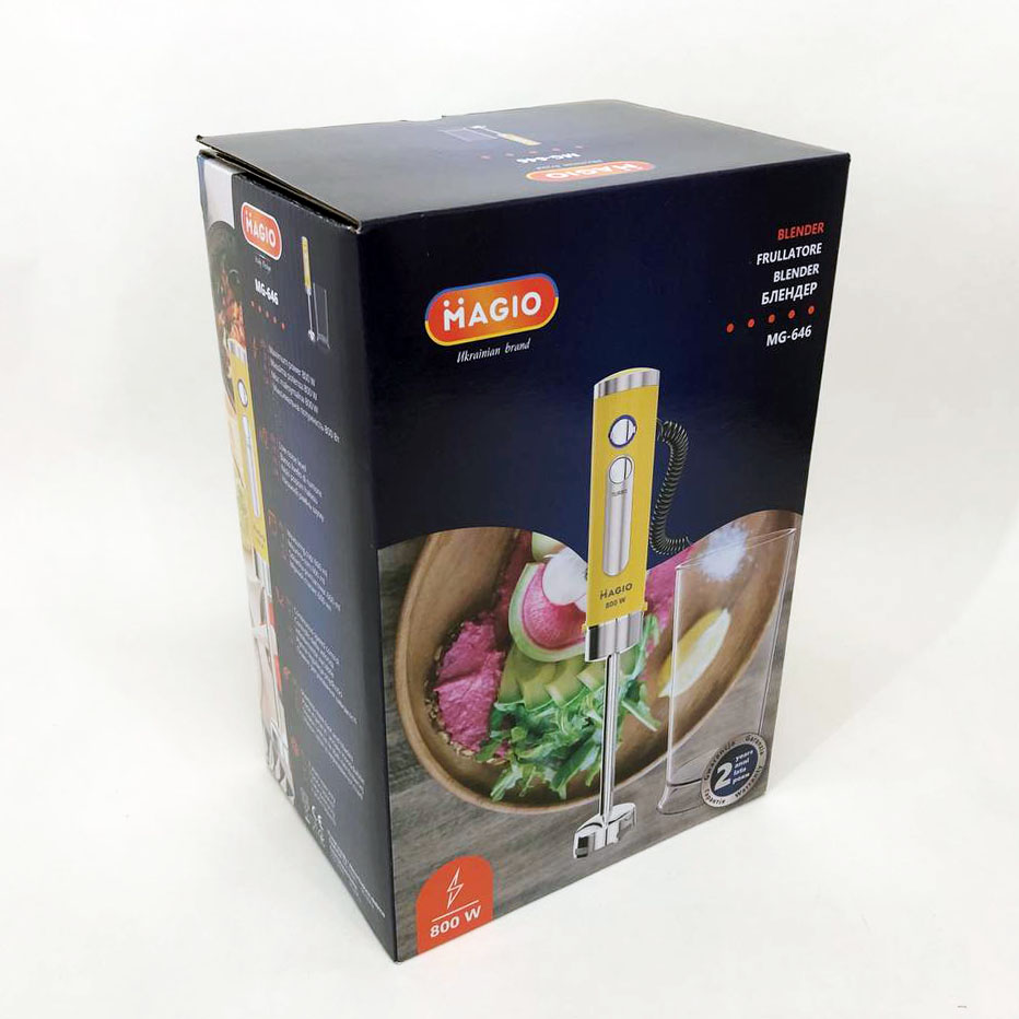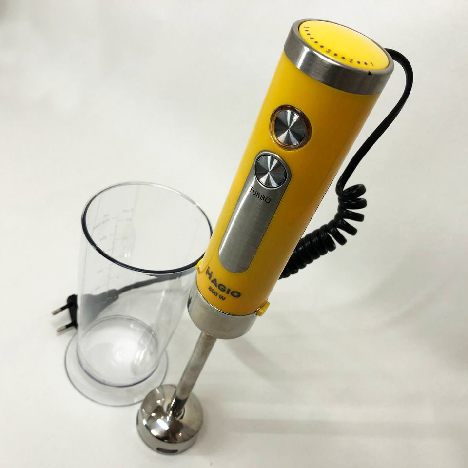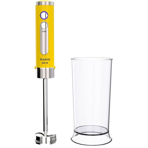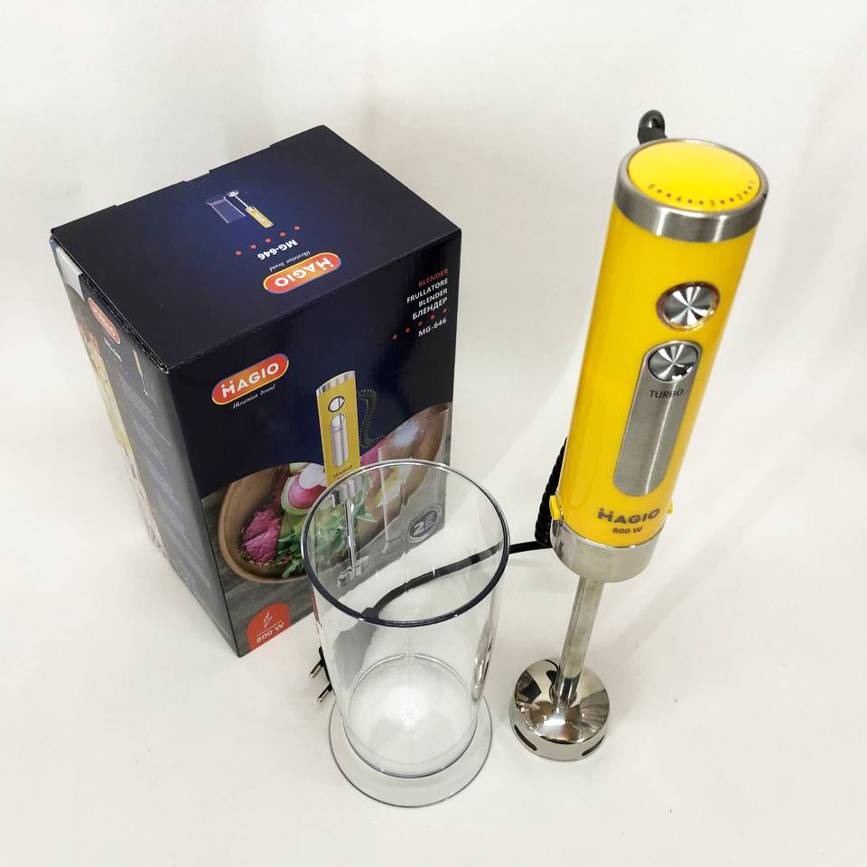Блендер Magio MG-646 дозволить вам урізноманітнити ваше меню та приготувати новий кулінарний шедевр. Потужність блендера становить 800 Вт, що забезпечує ефективну безшумну роботу протягом тривалого часу. Занурювальна частина виконана з нержавіючої сталі — запорука стійкості до зносу та довговічності. Блендер може працювати на 13 швидкостях, що плавно перемикаються. Перемикач знаходиться на ручці приладу, що дуже зручно. У комплект входить пластикова мірна склянка. Ці властивості у поєднанні з компактним дизайном роблять блендер незамінним помічником на вашій кухні.