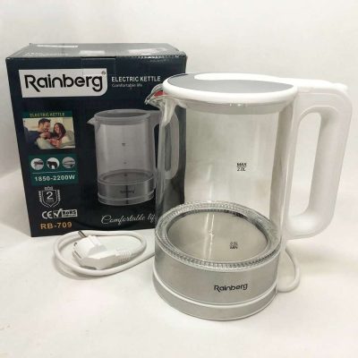 Дисковий електричний чайник Rainberg RB-709 скляний з підсвічуванням, чайник електро. Колір: білий