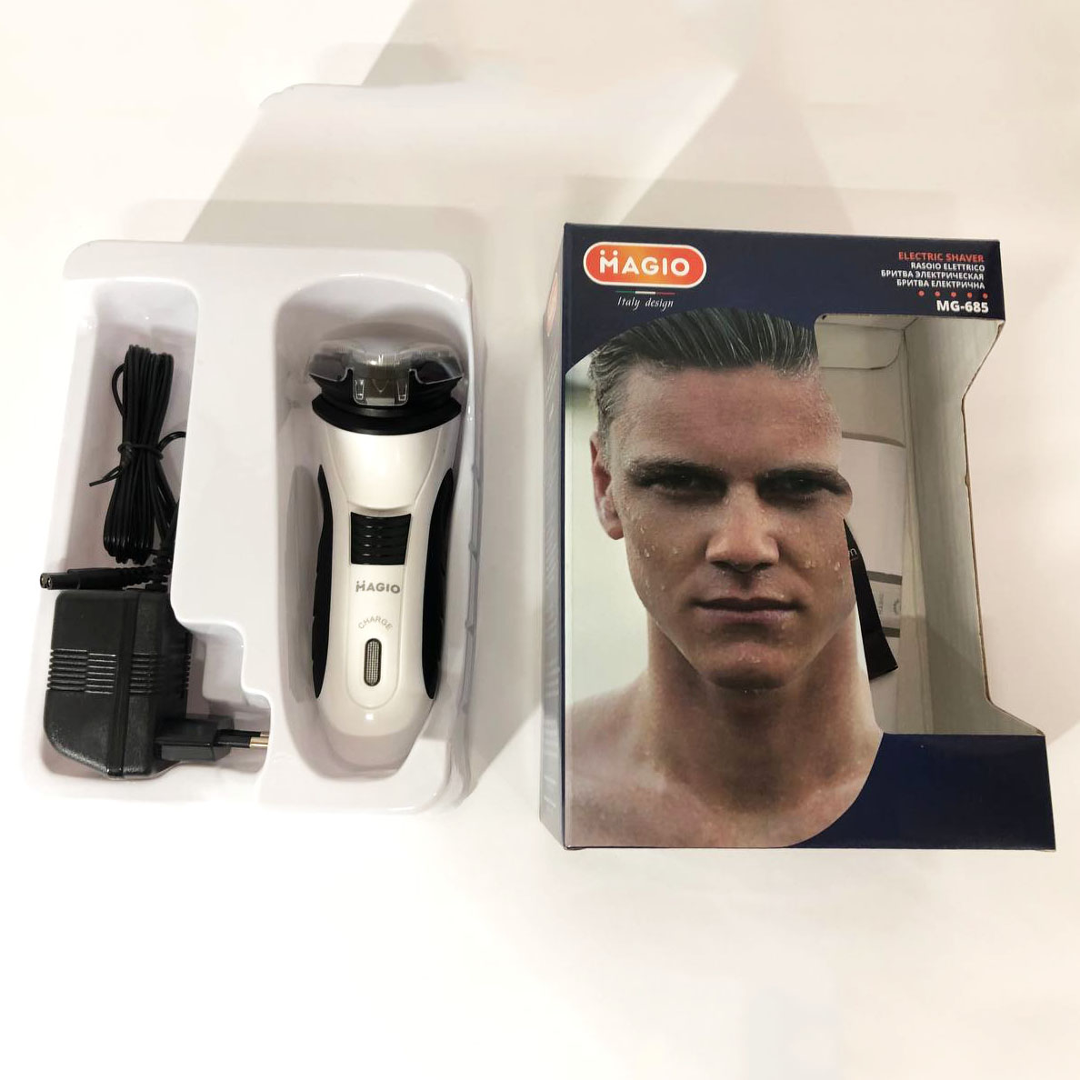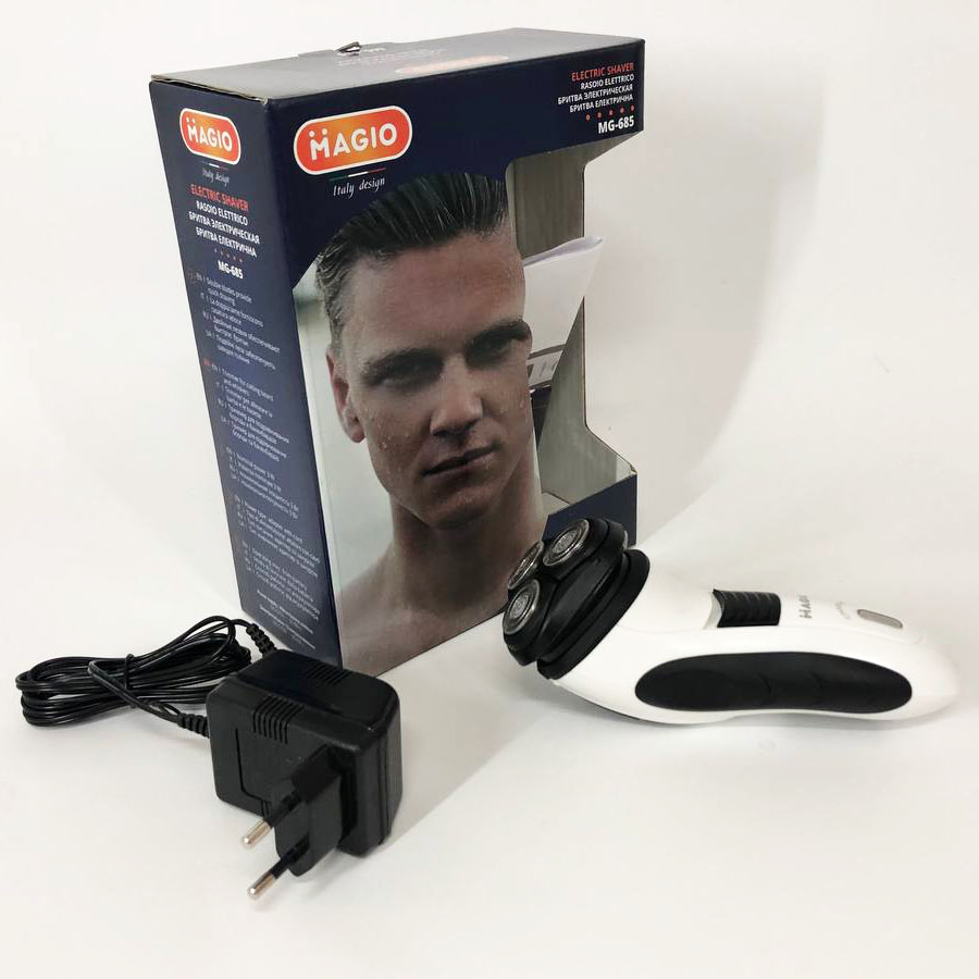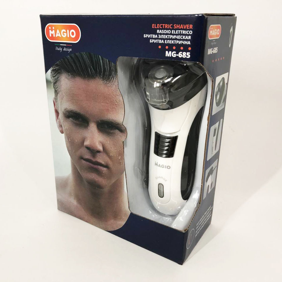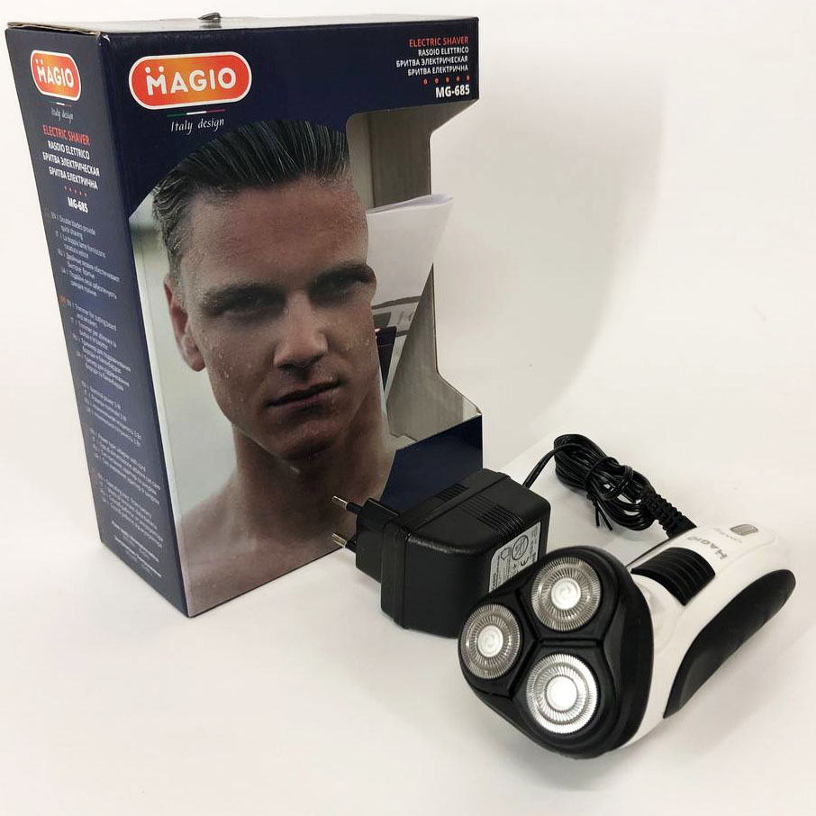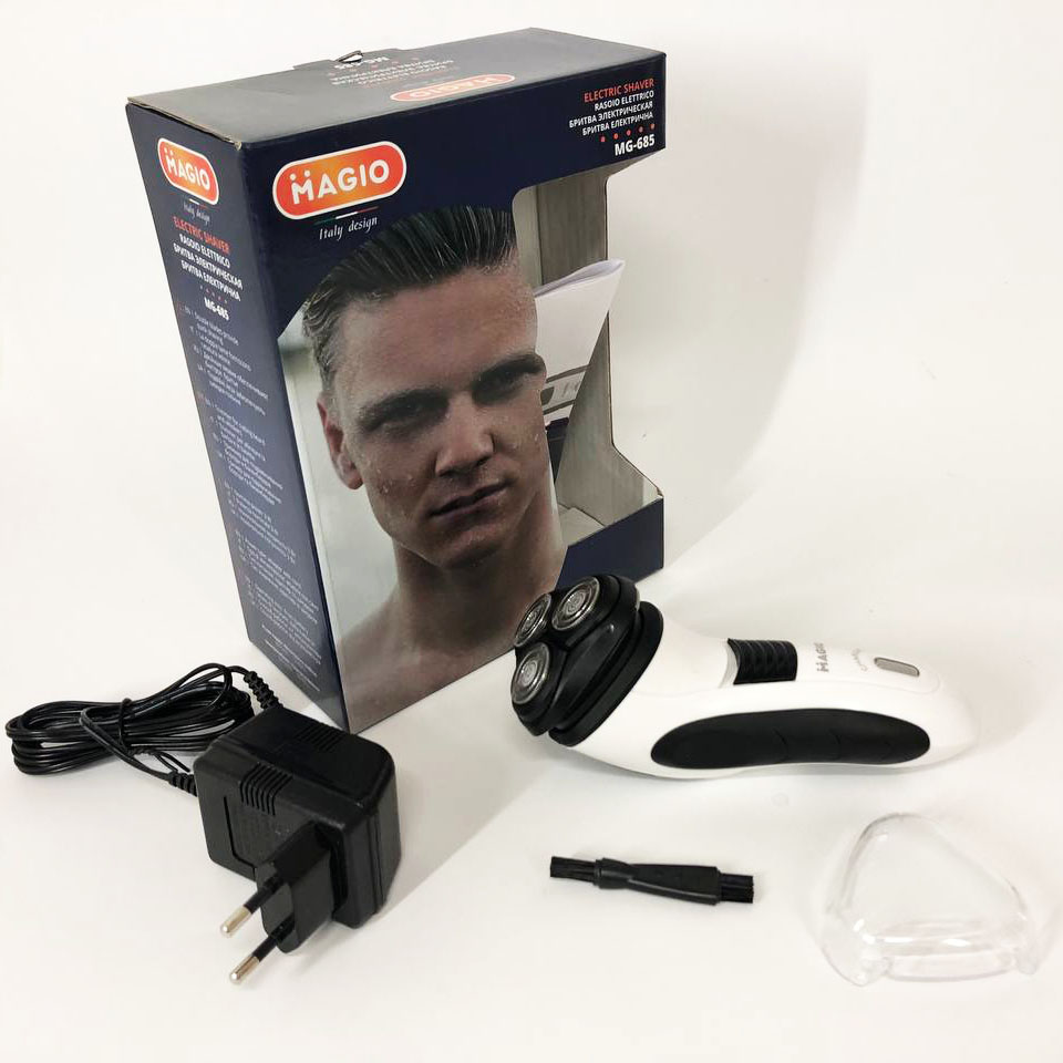 Електробритва MAGIO MG-685 для вологого та сухого гоління з трьома рухомими голками для гоління забезпечить ідеальний результат за рахунок щільного прилягання обертових лез до шкіри. Ця модель роторної бритви з якісними подвійними лезами та системою повторення контурів обличчя делікатно відноситься до шкіри. Акумулятора після 8-годинної зарядки вистачає на 30 хвилин автономної роботи.