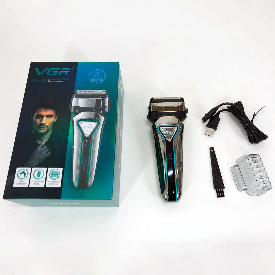 Електробритва портативна VGR V 333 — компактний та практичний девайс для чоловіків! Підходити для сухого та влажного голення, водонепроникний! Унікальною особливістю шейвера є підвійна сітка, між якою вбудований тример! Функція блокування: Дуже корисна функція, адже дозволяє уникнути випадкового вмикання приладу.