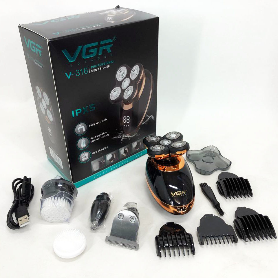 - Комплектація: Електробритва Насадки USB кабель Чистяча щітка Упаковка-коробка