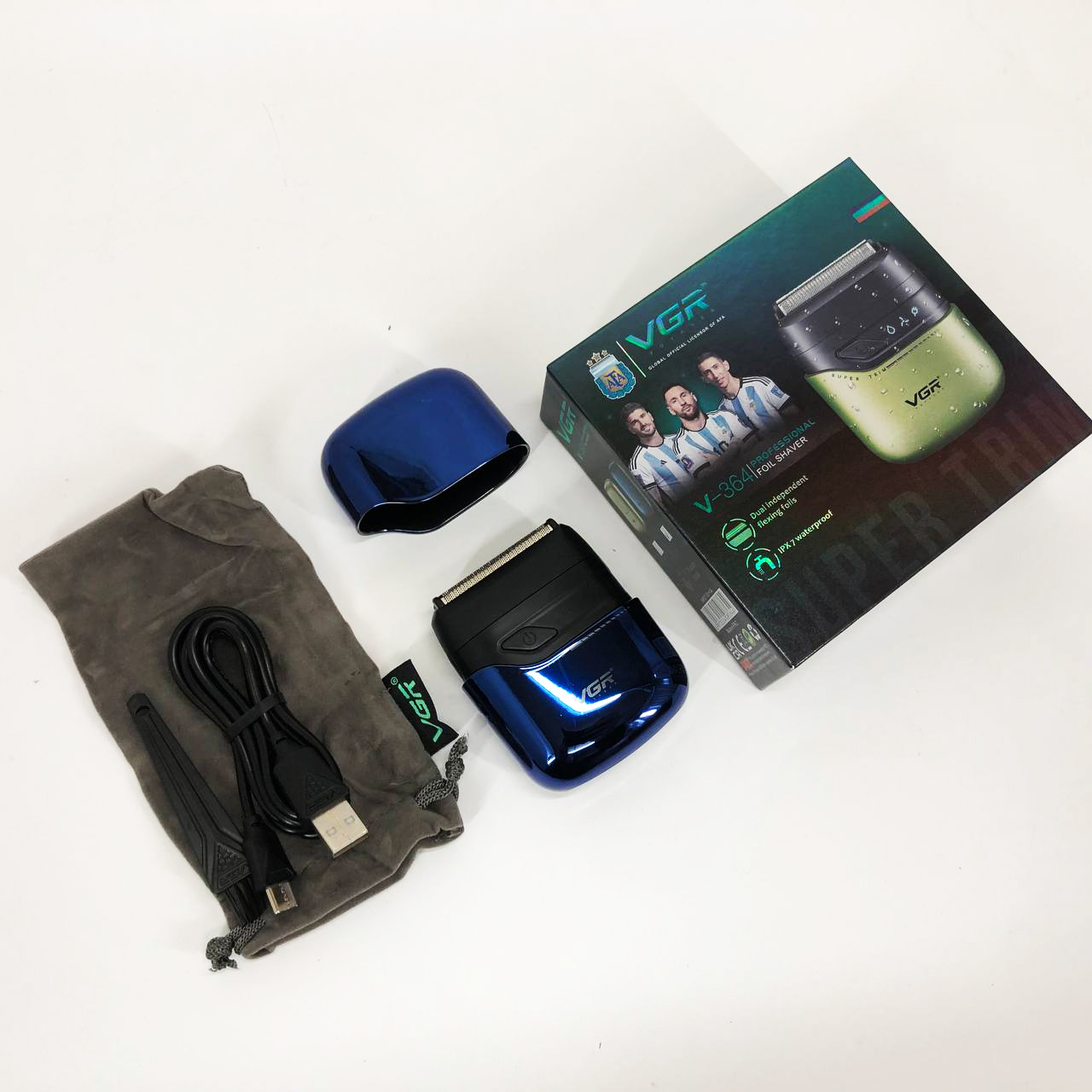 Електроритва VGR — це стильна професійна бритва від відомого бренду VGR, яка забезпечить ідеальне гладке гоління. Шейвер має елегантний дизайн та безліч аксесуарів. Електробритва поставляється в подарунковій упаковці, що робить її чудовим подарунком для будь-якого чоловіка! Живлення від літій-іонного акумулятора. Леза виготовлені з нержавіючої сталі, корпус — із якісного пластику. Завдяки протиковзкому покриттю корпус шейвера зручно лежить у руці і не вислизає. Водонепроникність: IPX7.