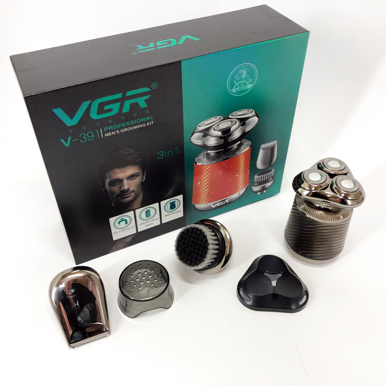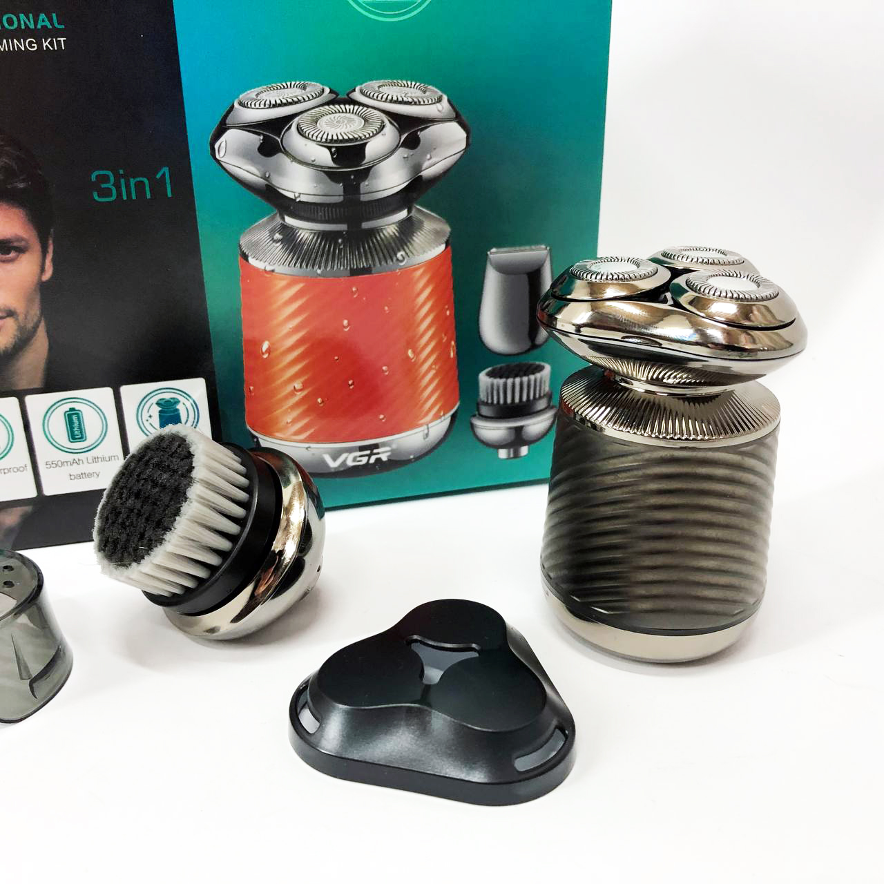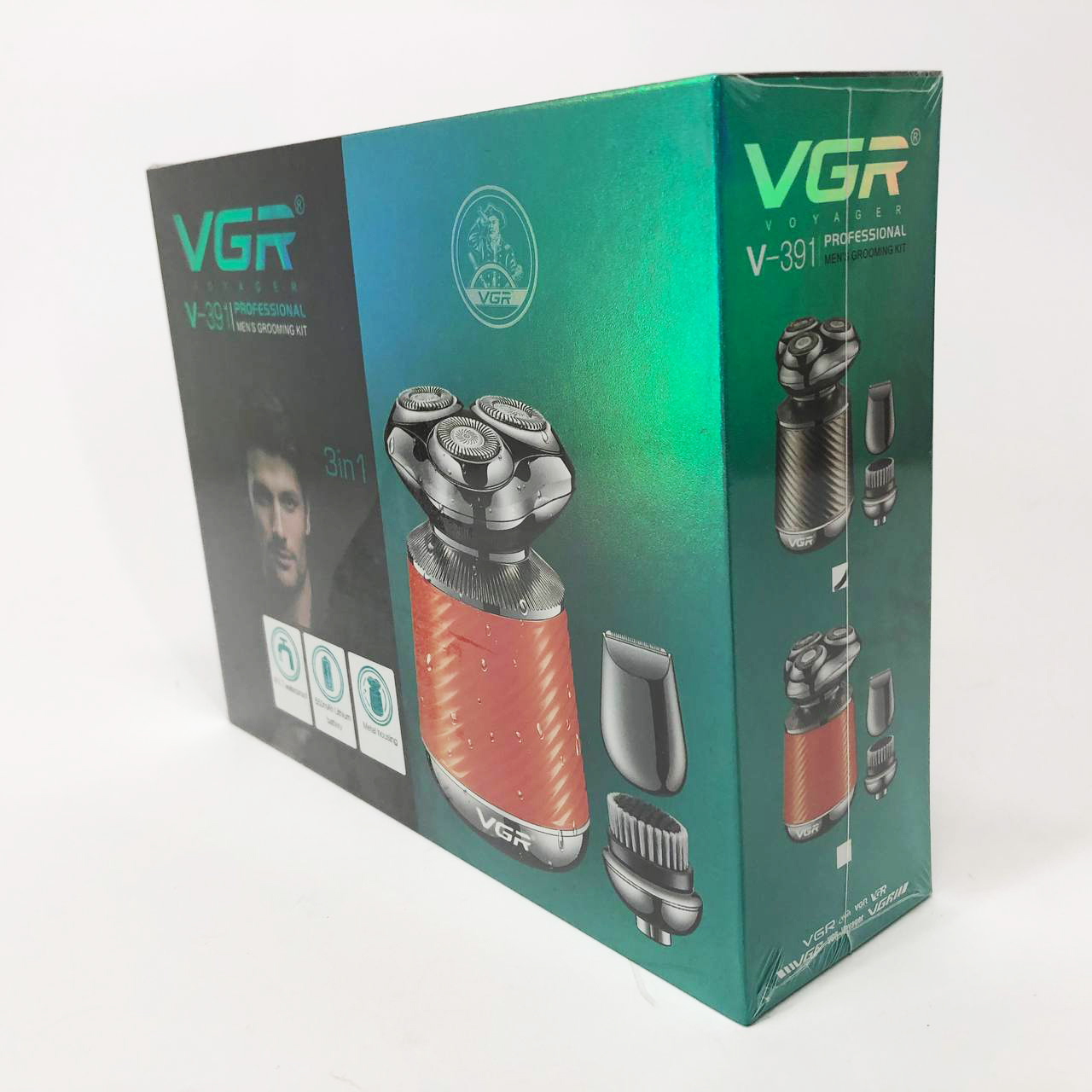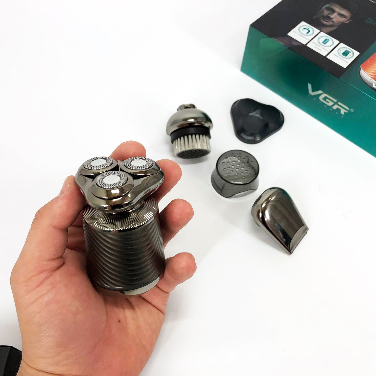 Електробритва VGR V-391 поєднує в собі три незамінні функції: електробритву, триммер і щітку для пілінгу. Завдяки плаваючим головкам, які повторюють кожен вигин вашого обличчя, ви отримаєте гладке і комфортне гоління навіть у важкодоступних місцях, таких як шия і підборіддя. Літієва батарея ємністю 550 мА*год забезпечує до 90 хвилин безперебійної роботи, а час заряджання становить лише 2 години.