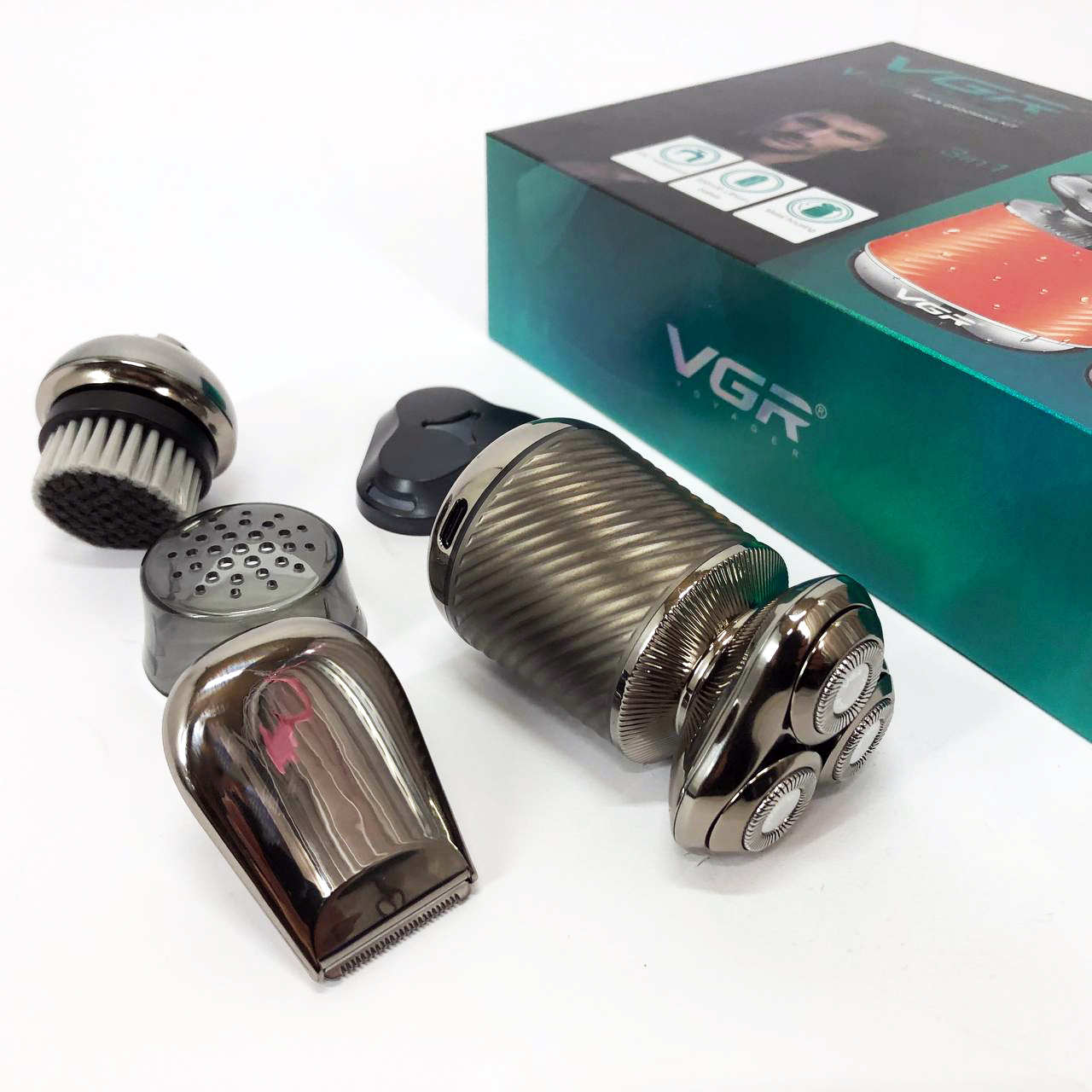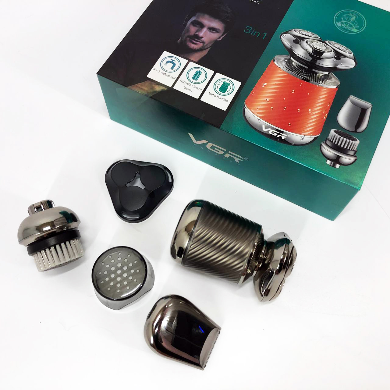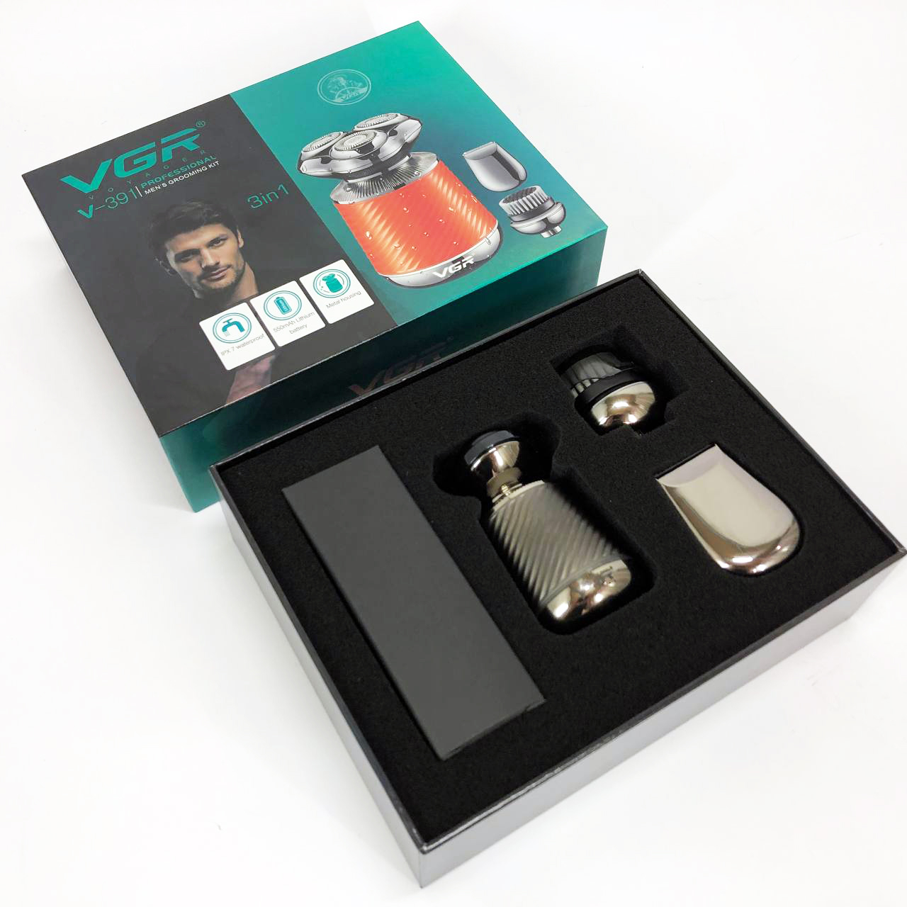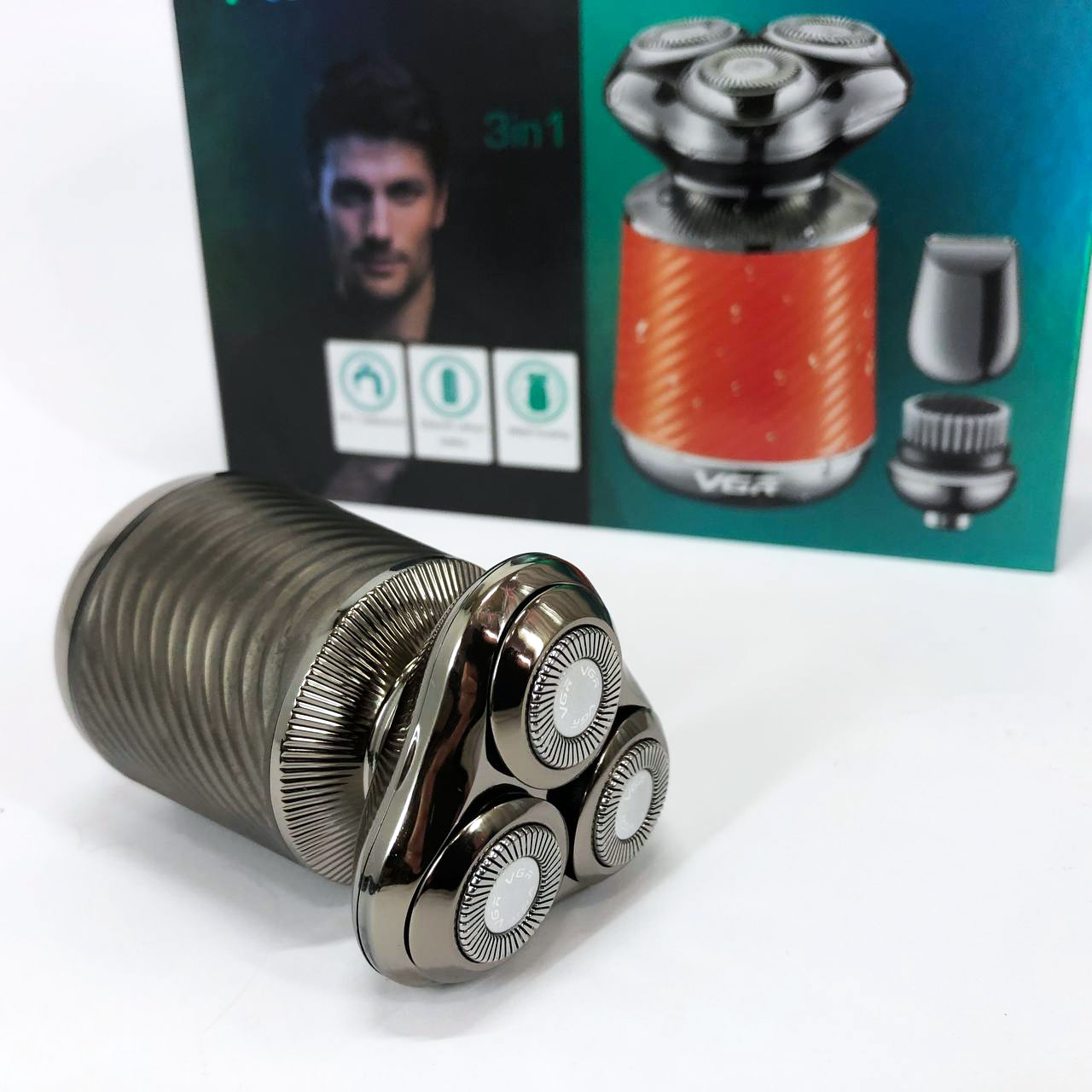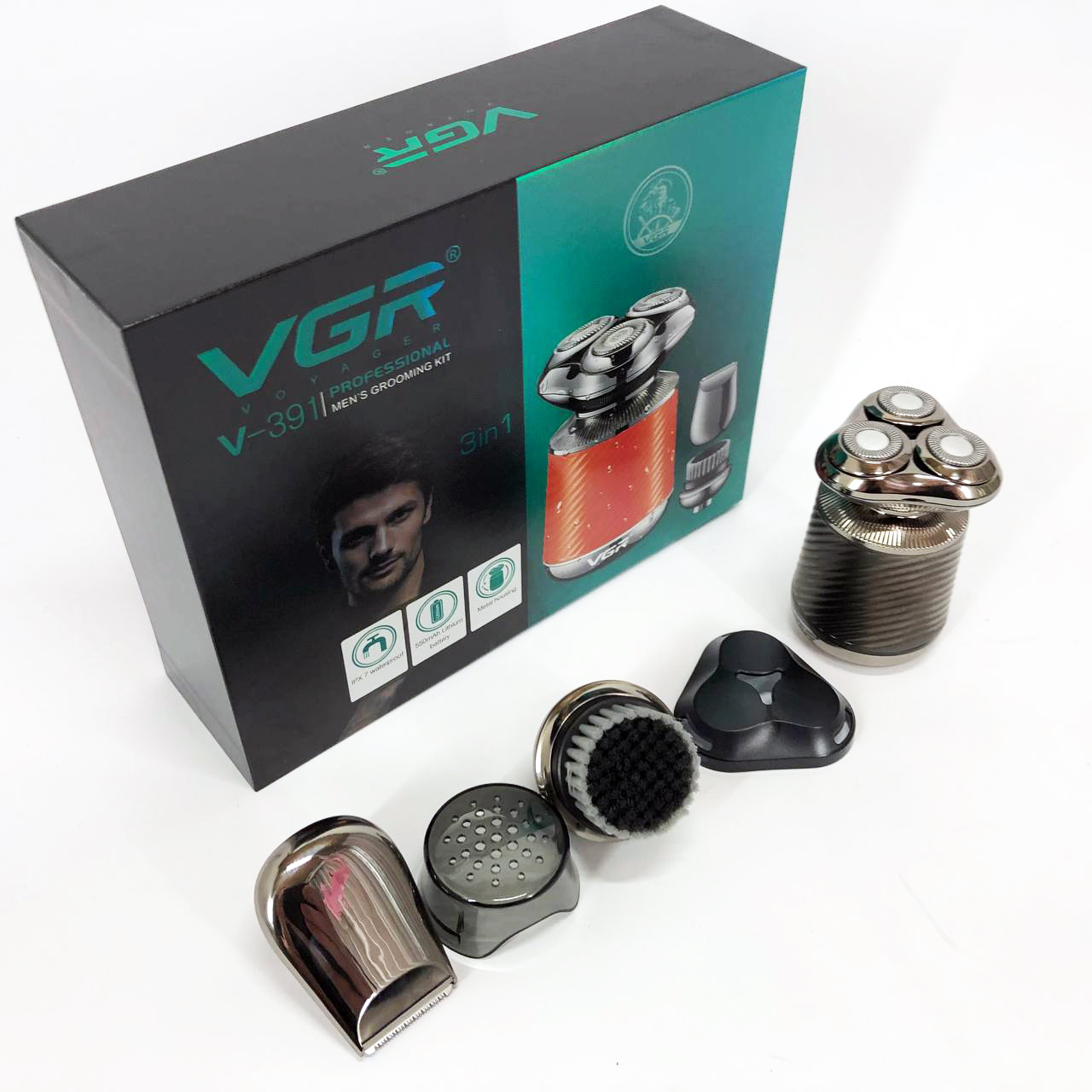 Електробритва VGR V-391 поєднує в собі три незамінні функції: електробритву, триммер і щітку для пілінгу. Завдяки плаваючим головкам, які повторюють кожен вигин вашого обличчя, ви отримаєте гладке і комфортне гоління навіть у важкодоступних місцях, таких як шия і підборіддя. Літієва батарея ємністю 550 мА*год забезпечує до 90 хвилин безперебійної роботи, а час заряджання становить лише 2 години.