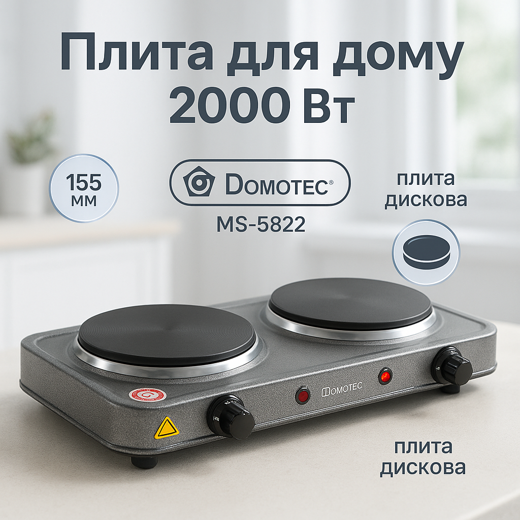 Не пропустіть можливість спростити процес приготування їжі з електроплитою Domotec MS-5822 — це зручність, економія часу і простота в експлуатації.