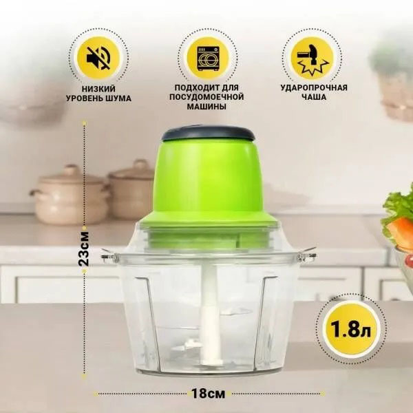 Електроприлад зі швидкістю блискавки справляється з подрібненням овочів, фруктів, м’яса, горіхів та інших продуктів. Замінить громіздкі кухонні комбайни та допоможе з приготуванням м’ясного фаршу, салатів, овочевих та фруктових пюре.