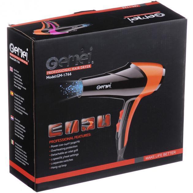 Фен поєднує в собі потужність, зручність і стиль, тож він стане надійним помічником у щоденному догляді. Замовте GEMEI GM-1766 зараз, щоб отримувати ідеальну зачіску швидко та без зайвих клопотів.