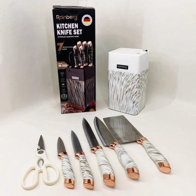 Набір ножів із нержавіючої сталі з основою Rainberg RB-2327 White