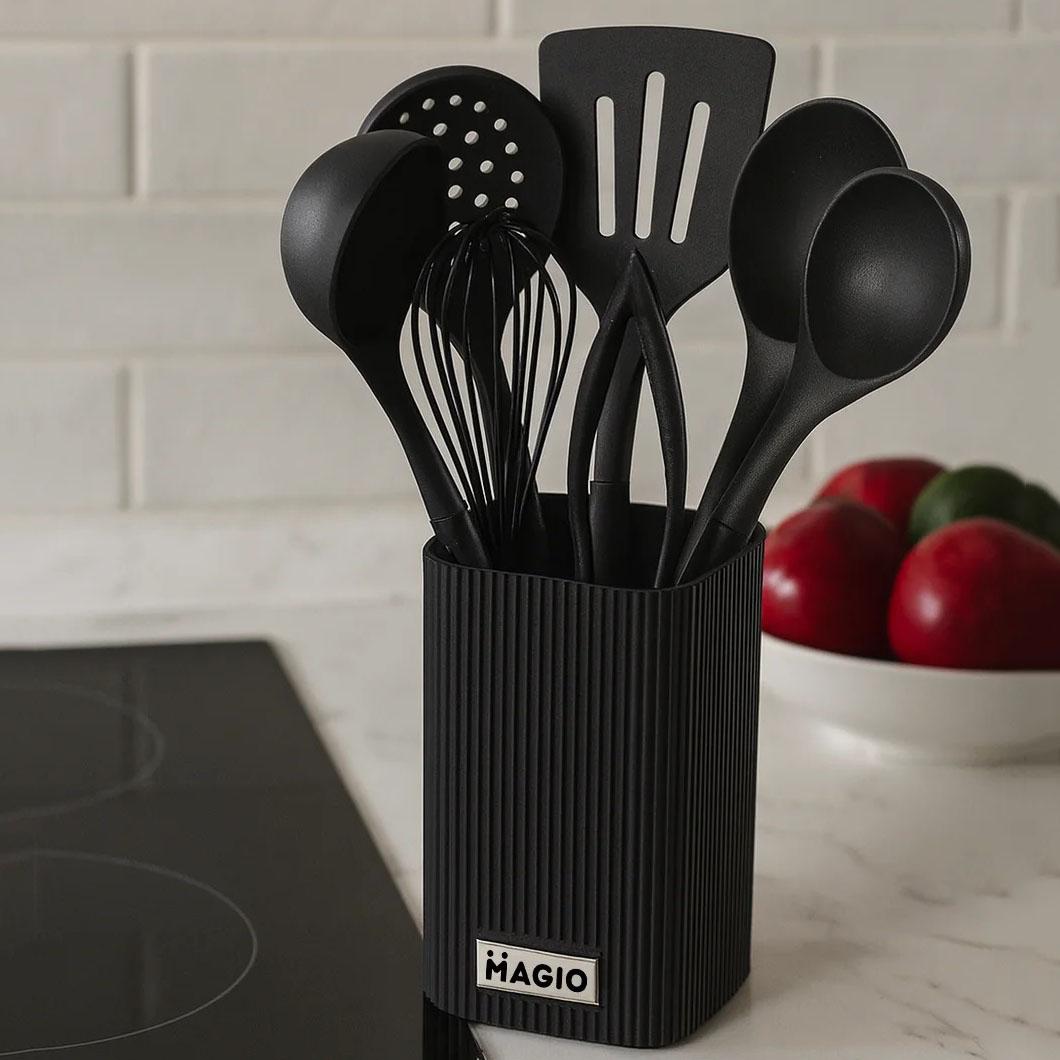 Вибираючи комплект кухонного приладдя з силікону та нейлону, ви отримуєте універсальний інструментарій, який поєднує зручність, безпеку та довговічність. Цей 8-предметний набір розроблений для ефективної роботи з будь-яким типом кухонного посуду, збереження цілісності поверхонь та легкого догляду. Він стане надійним помічником у щоденному приготуванні, оптимізуючи процеси на вашій кухні та роблячи їх максимально комфортними.