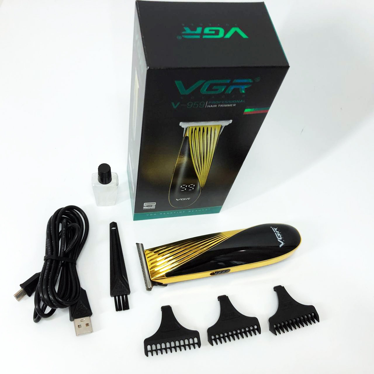 Акумуляторна машинка для стрижки VGR V-959 від USB – має елегантний дизайн, міцну конструкцію з високоякісних матеріалів та ергономічну ручку. Машинка для бороди дуже проста у використанні. Стильна портативна машинка для стрижки волосся має ножі з нержавіючої сталі та оснащена інноваційним вбудованим акумулятором. Стайлери для бороди можна використовувати як автономно, так і від мережі. Тример має збільшений час автономної роботи. У комплекті є всі необхідні насадки для ідеальної стрижки. Машинка ідеально підходить для стрижки волосся на голові, їй можна користуватися як тример для бороди і вусів, а також інтимної стрижки. Тример для волосся VGR V-959 легко замінить професійний догляд.