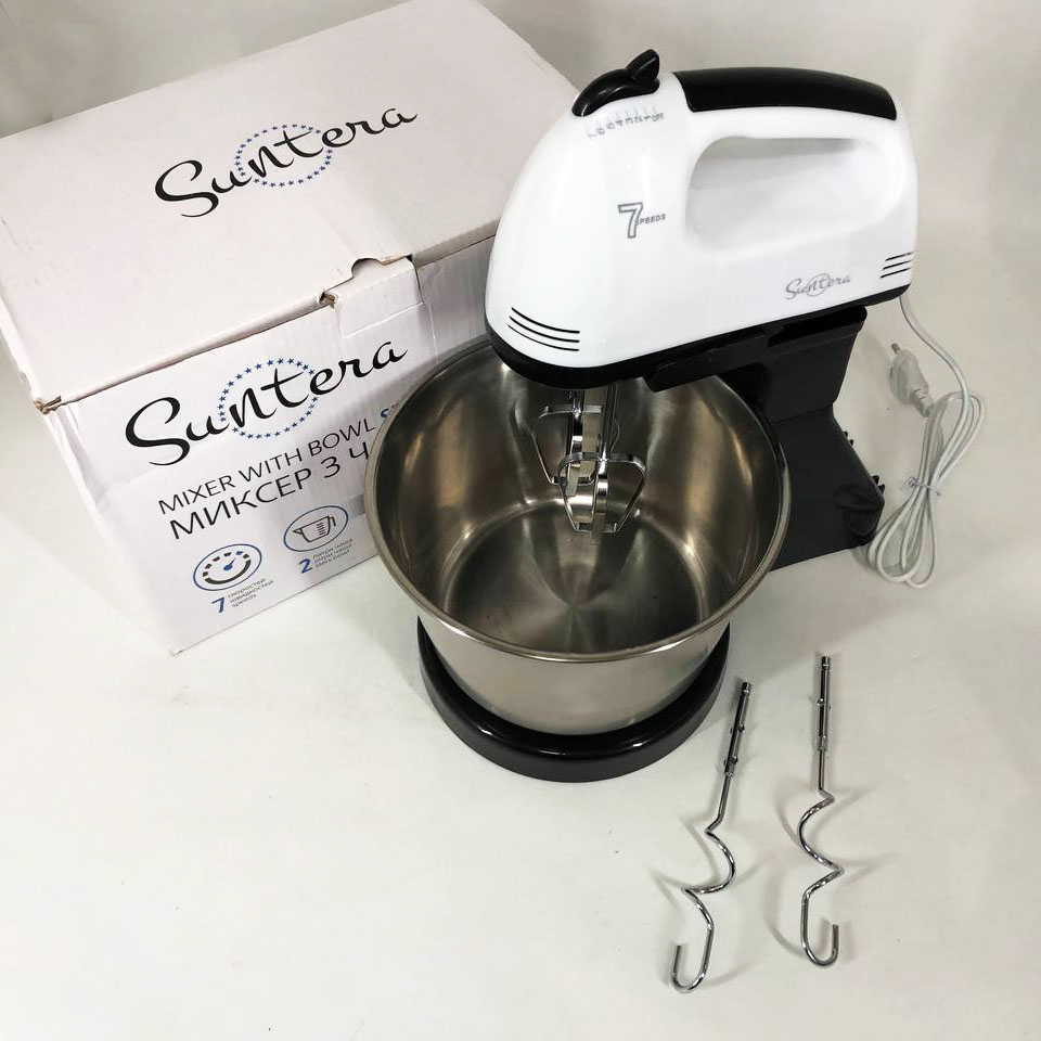 - Насадки — Віночки для збивання, Крюк для замісу тіста;