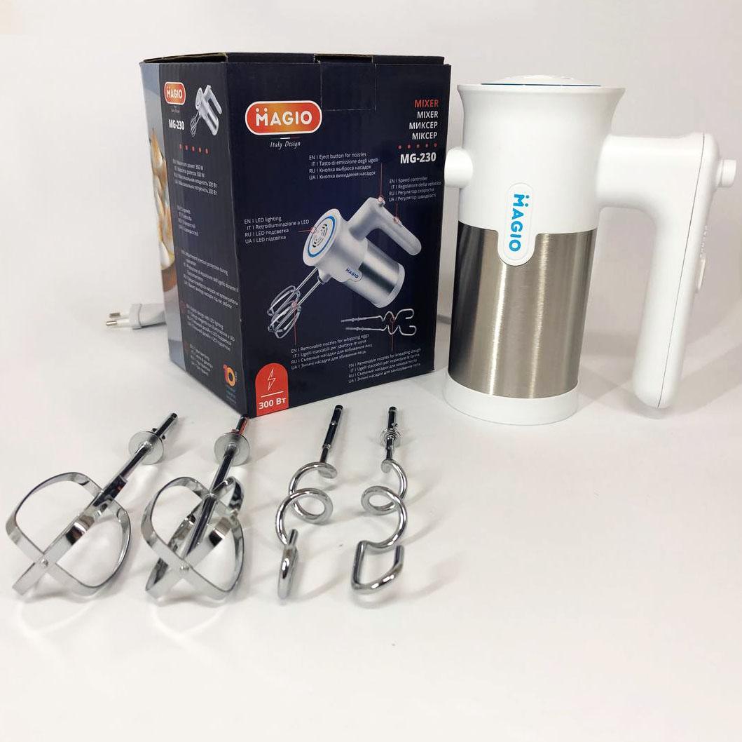 Magio MG-230 – це потужний і функціональний міксер, який відповідає вимогам сучасної кухні, забезпечуючи швидке та ефективне приготування різноманітних кулінарних страв. Завдяки оптимальній потужності і продуманому дизайну, він стане незамінним помічником як для домашнього, так і для професійного використання. Цей пристрій дозволить вам економити час і зусилля, роблячи процес приготування максимально комфортним.