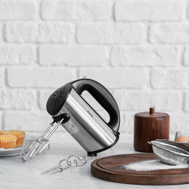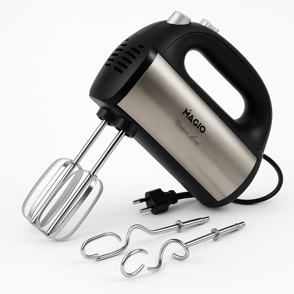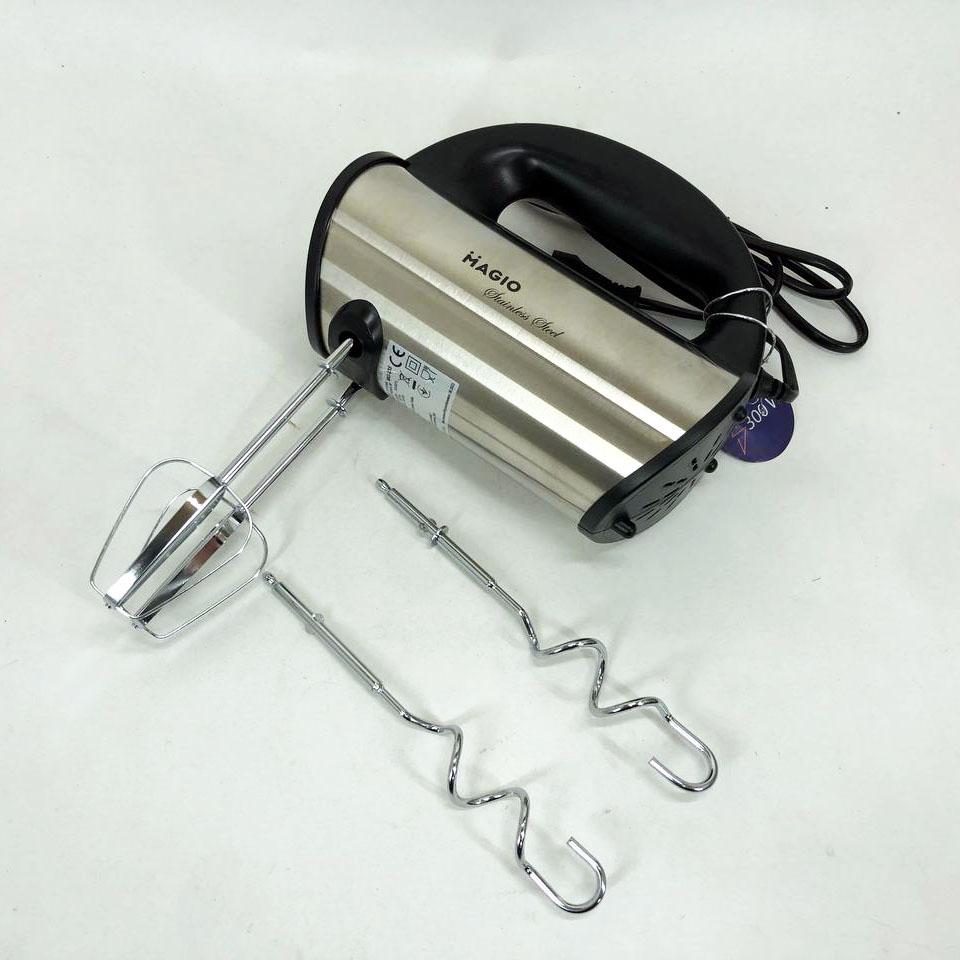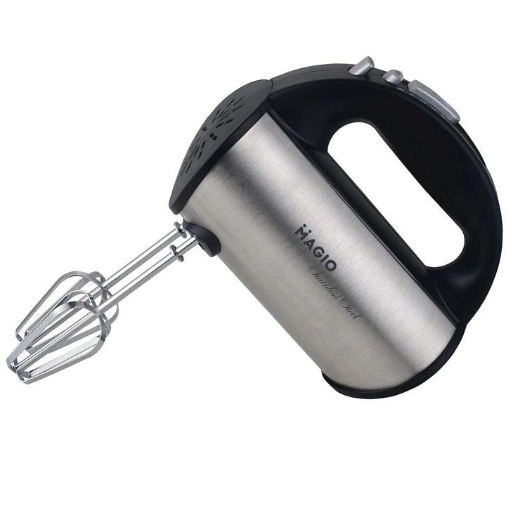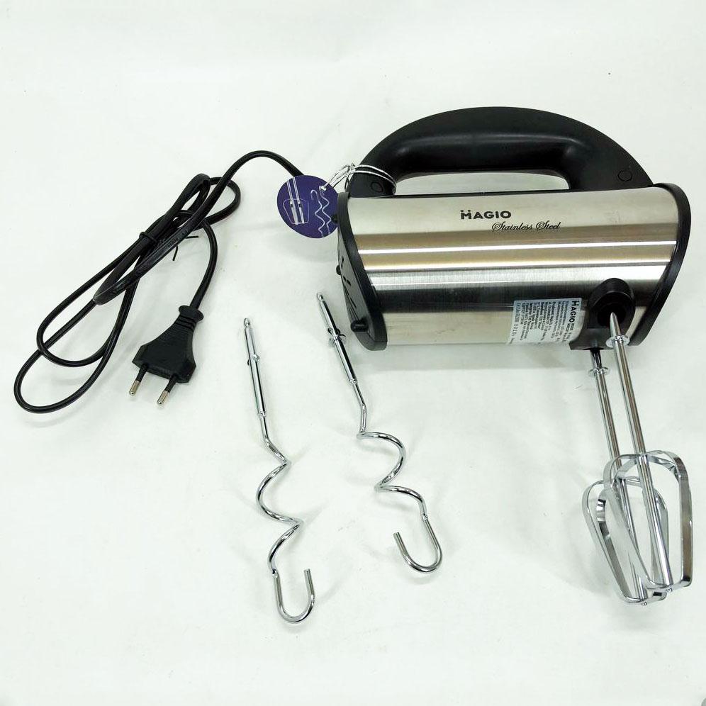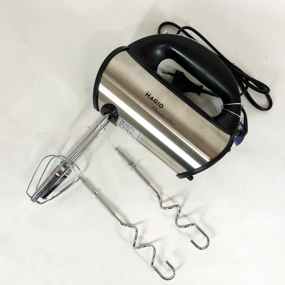 Міксер Magio MG-235 значно спростить приготування тесту, забезпечуючи швидкий і якісний результат. Ви зможете радувати своїх близьких домашньою випічкою щодня. Цей потужний і компактний ручний міксер має зручну ергономічну ручку та виконаний з нержавіючої сталі, що підвищує його надійність і довговічність. У комплекті є два види насадок: венчики для збивання рідин, яєць і вершків, а також крючки для замішування густого тесту або пюре.