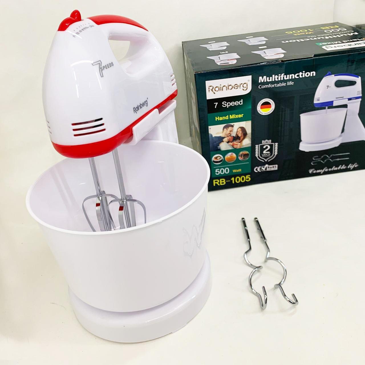 Міксер Rainberg RB-1005 стане незамінним помічником на вашій кухні. Завдяки своїм 7 скоростям ви зможете легко і швидко приготувати всі види тесту, креми, соуси та коктейлі. Цей міксер можна використовувати як у ручному, так і в стаціонарному режимах, що робить його дуже зручним у використанні. Об’єм чаші в 2 л дозволяє готувати достатню кількість їжі для вашої родини. Корпус міксера виготовлений з пластика, а насадки з нержавіючої сталі, що забезпечує довговічність і легкість у догляді.