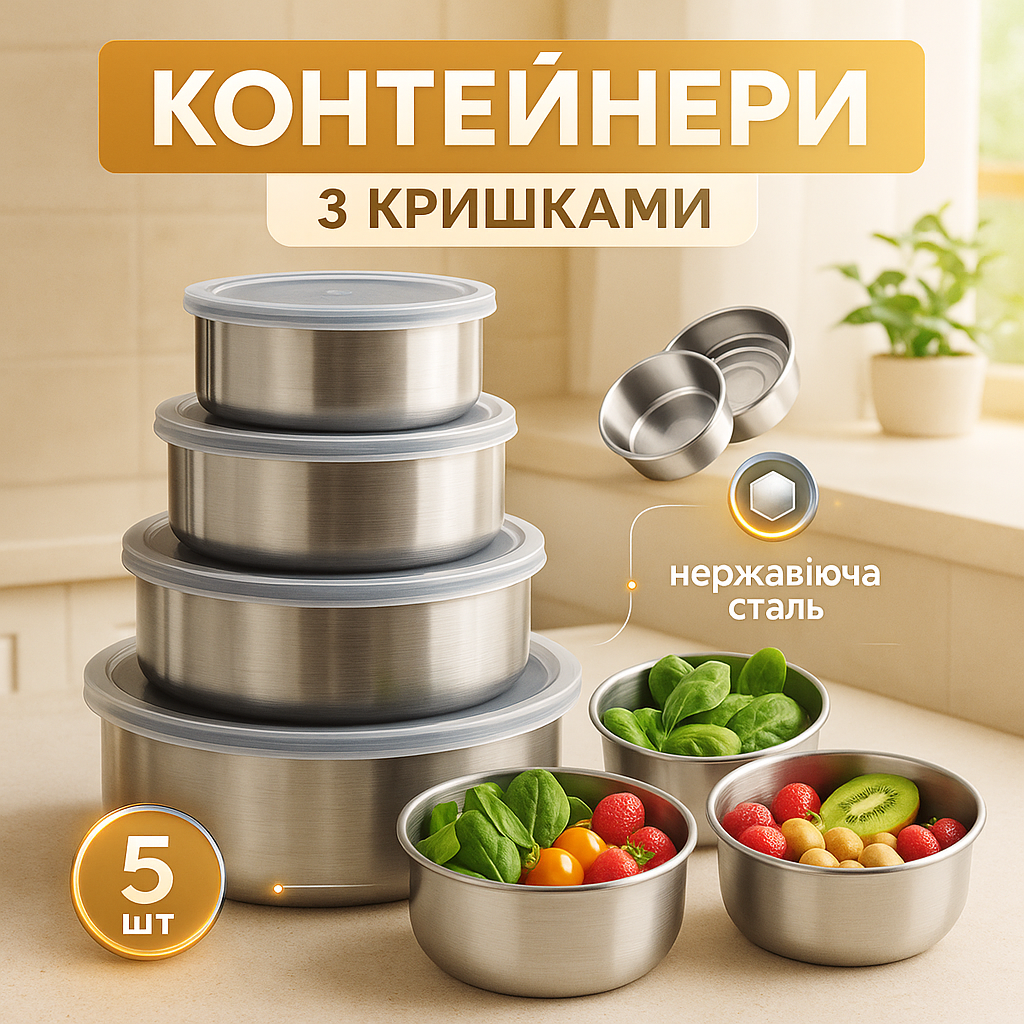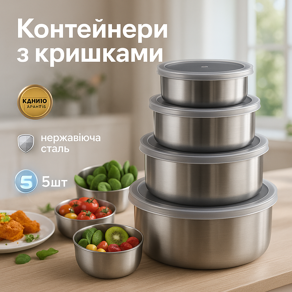 - Кришки: силиконові, герметичні, що щільно прилягають.