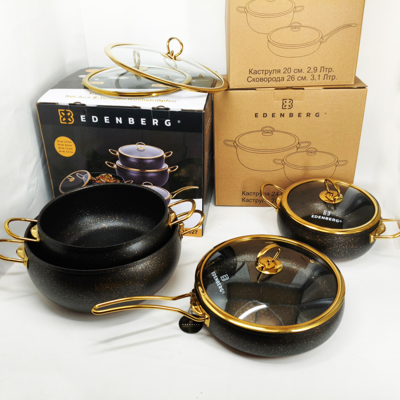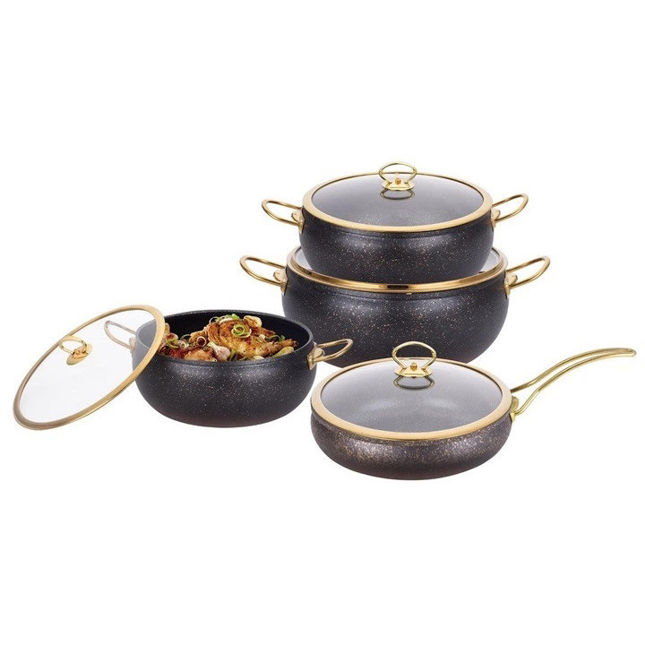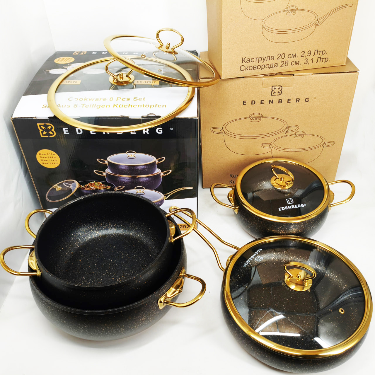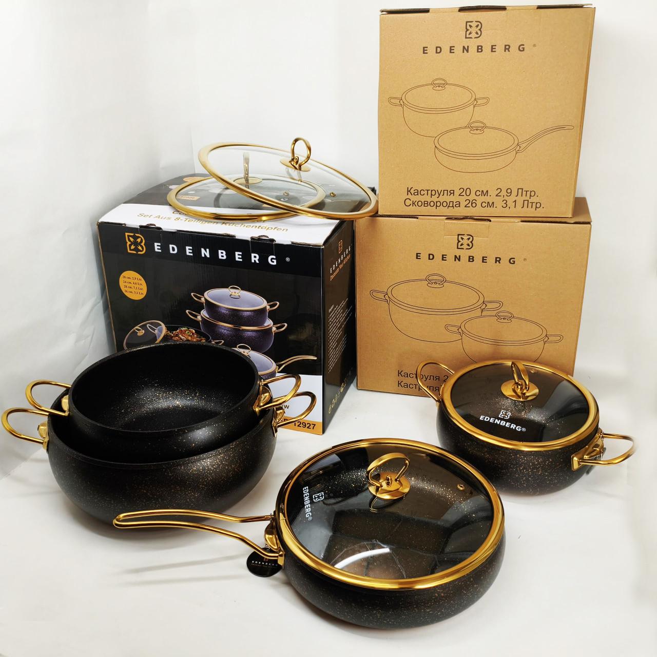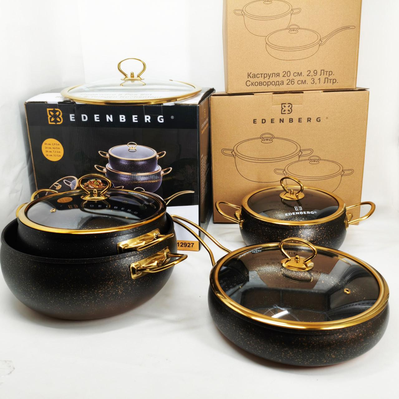 Цей набір посуду Edenberg EB-12927 стане чудовим доповненням вашої кухні. Вона виготовлена з високоякісного та безпечного для здоров’я алюмінію, що забезпечує міцність та довговічність виробів. Антипригарне гранітне покриття не тільки запобігає прилипанню їжі, але й полегшує процес збирання. Ручки зручні у використанні та не нагріваються, посуд підходить для всіх типів плит та легко миється у посудомийній машині.