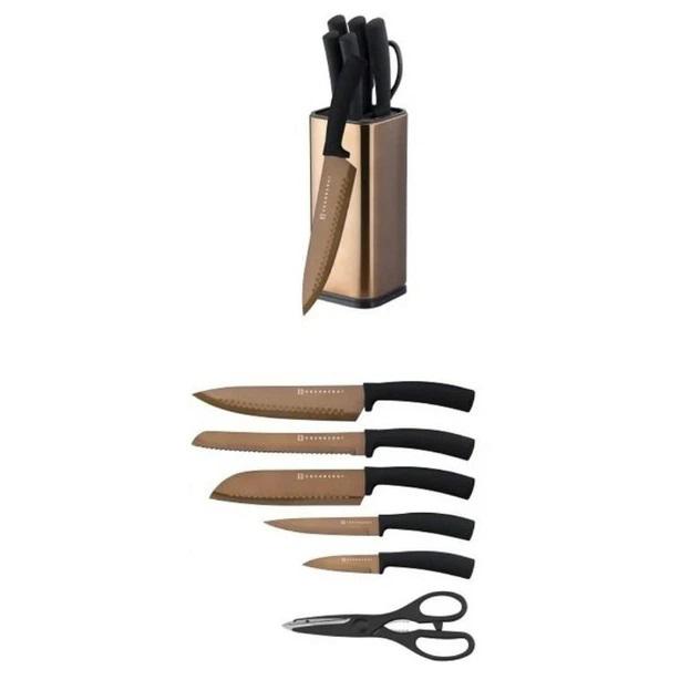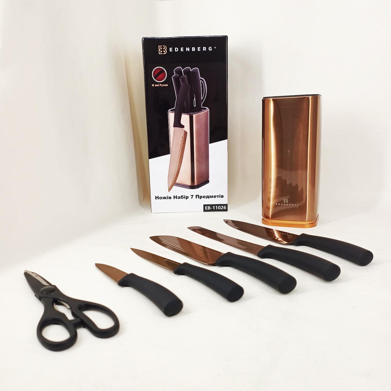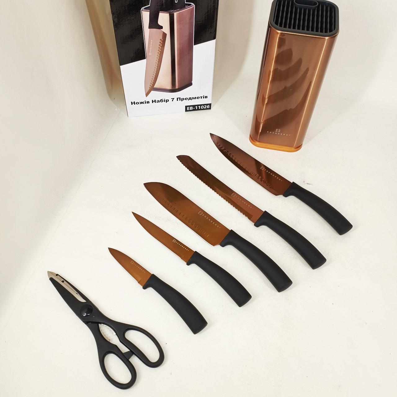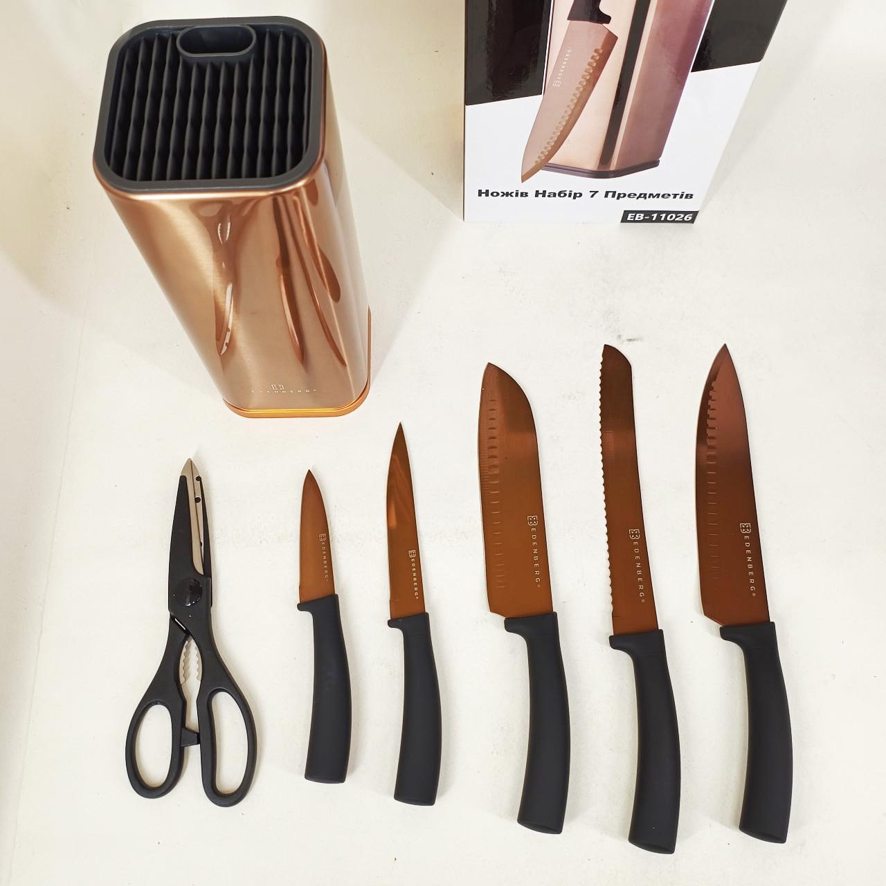 Набір ножів Edenberg EB-11026 — це втілення витонченого стилю та високої функціональності. Виконаний у розкішному кольорі “рожеве золото”, цей комплект стане не лише головним інструментом, а й справжньою окрасою вашої кухні. Кожне лезо виготовлене з високоякісної нержавіючої сталі та має спеціальне антибактеріальне напилення, яке перешкоджає прилипанню продуктів і не впливає на їхній смак чи запах.
