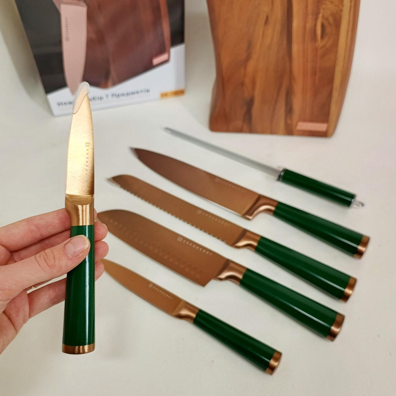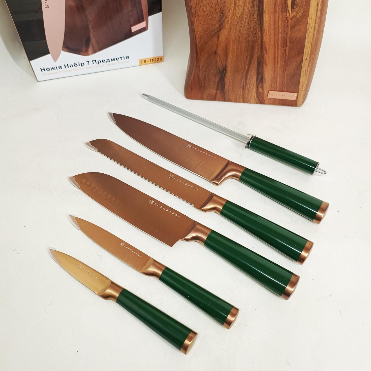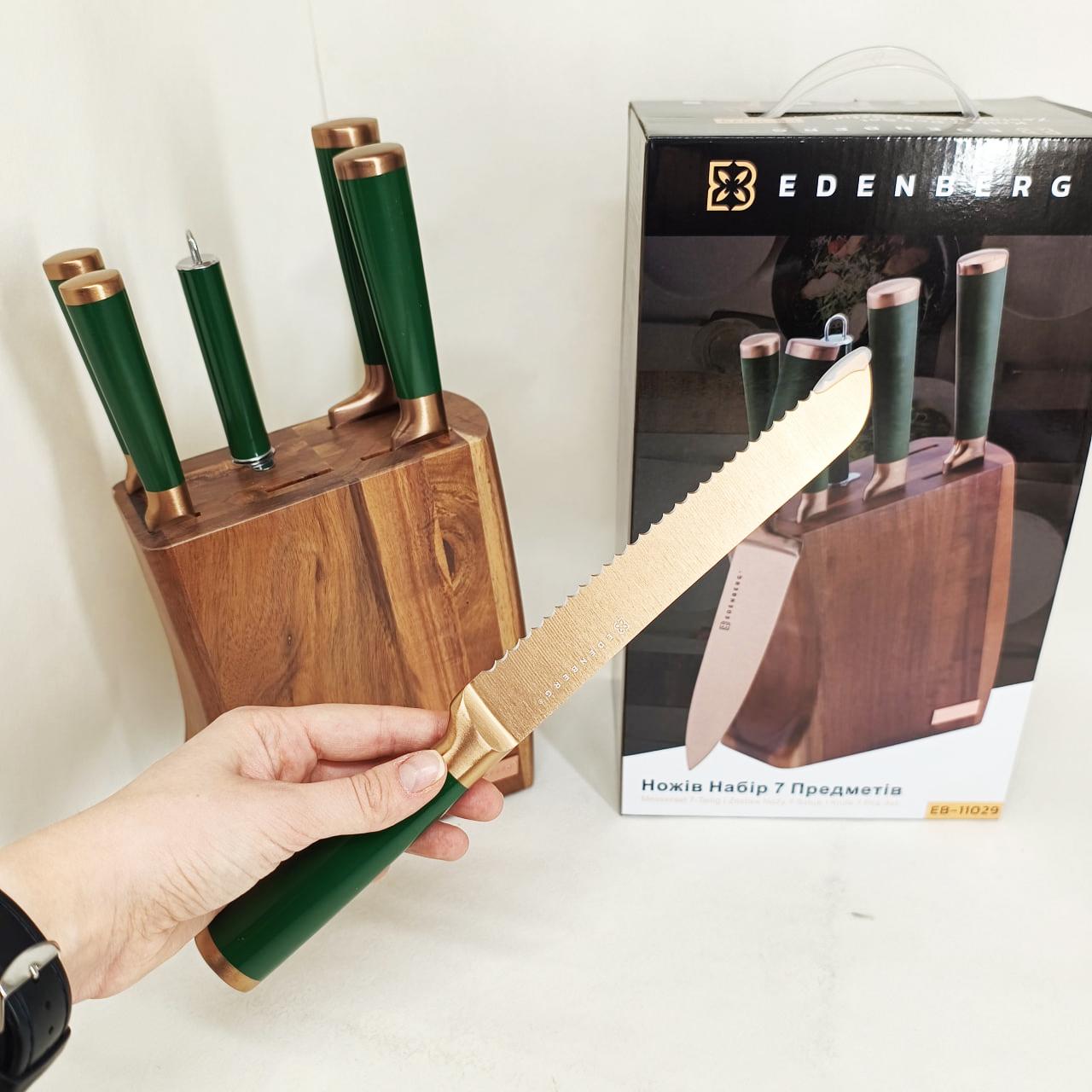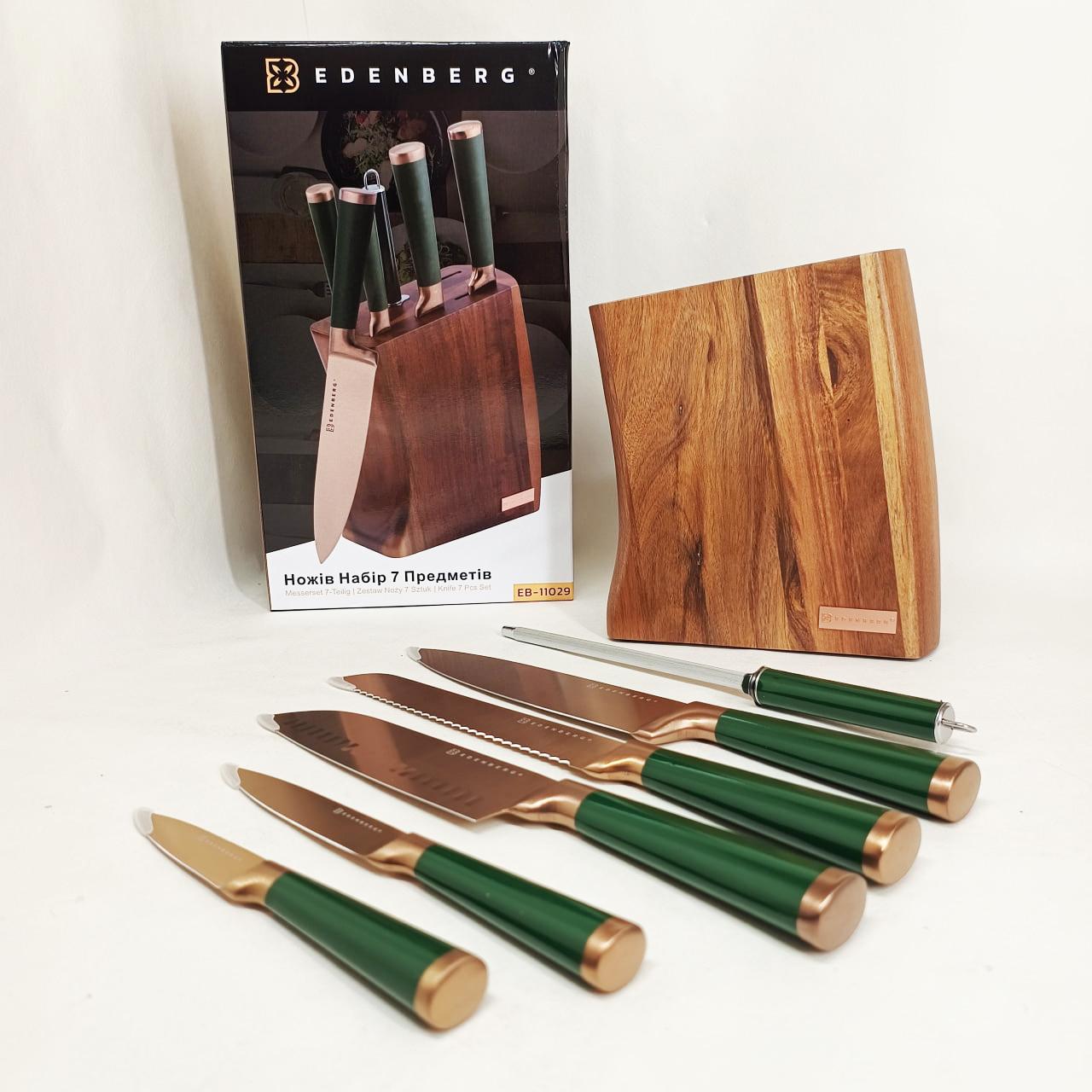 Набір кухонних ножів Edenberg EB-11029 — це професійне рішення для домашньої кухні, що поєднує в собі довговічність нержавіючої сталі та продуману ергономіку. Комплект із 7 предметів розроблений для виконання повного спектру кулінарних завдань: шинкування овочів, нарізання м’яса, обробки риби та акуратного скибкування хліба. Використання якісних матеріалів гарантує, що леза не вступають у реакцію з продуктами та не залишають сторонніх запахів, а можливість миття в посудомийній машині робить догляд за інструментами максимально простим.
