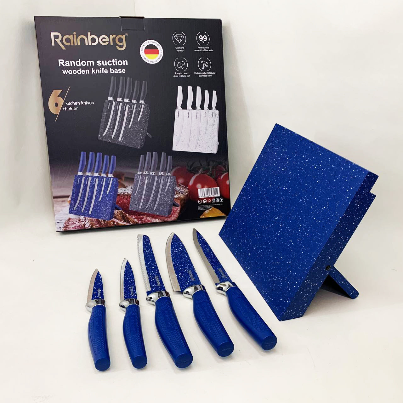 Набір ножів Rainberg RB-2322 — це професійне рішення для щоденного приготування страв, що поєднує в собі надійність нержавіючої сталі та естетику сучасного дизайну. Завдяки спеціальному мармуровому покриттю, леза не лише виглядають стильно, але й забезпечують легке ковзання, запобігаючи прилипанню продуктів під час нарізки м’яса, риби, овочів чи хліба. Ергономічна форма ручок мінімізує втому кисті, дозволяючи працювати з продуктами тривалий час без дискомфорту. Магнітна основа підставки гарантує стійкість та швидкий доступ до потрібного інструменту, підтримуючи ідеальний порядок на робочій поверхні кухні.