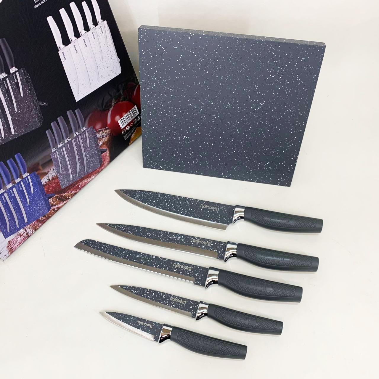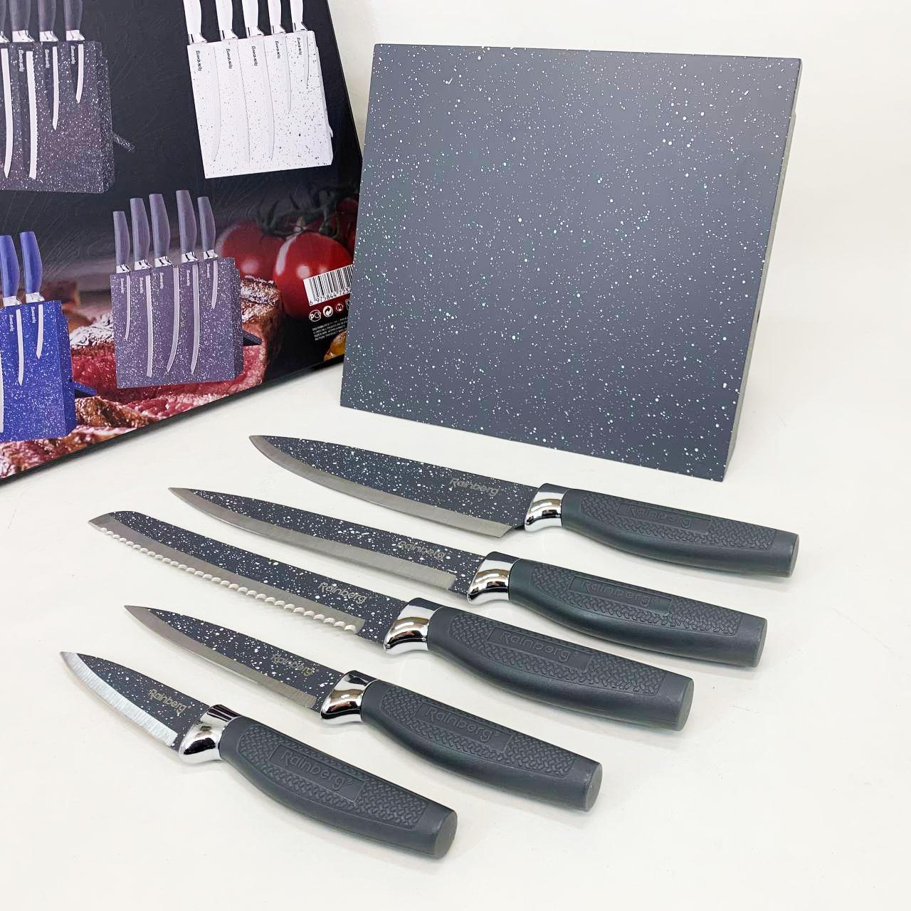Набір ножів Rainberg RB-2322 — це професійне рішення для щоденного приготування страв, що поєднує в собі надійність нержавіючої сталі та естетику сучасного дизайну. Завдяки спеціальному мармуровому покриттю, леза не лише виглядають стильно, але й забезпечують легке ковзання, запобігаючи прилипанню продуктів під час нарізки м’яса, риби, овочів чи хліба. Ергономічна форма ручок мінімізує втому кисті, дозволяючи працювати з продуктами тривалий час без дискомфорту. Магнітна основа підставки гарантує стійкість та швидкий доступ до потрібного інструменту, підтримуючи ідеальний порядок на робочій поверхні кухні.