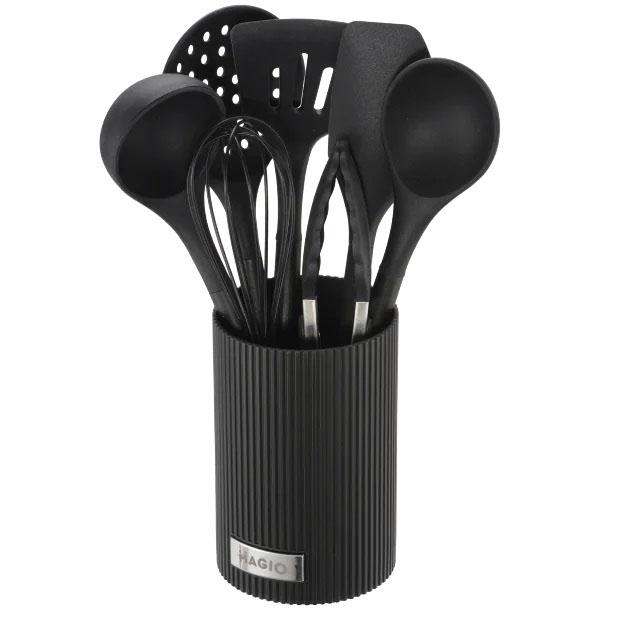 Набір кухонний MG-1128 — незамінний надійний помічник на вашій кухні, що складається з 8 предметів для кожної господині. Ведерко для зберігання аксесуарів має отвір на дні, що забезпечує сухість і запобігає утворенню слизі і цвілі. Силіконовий матеріал робить вироби стійкими до високих температур, забезпечуючи надійність використання. М’якість силікону захищає антипригарне покриття кастрюль і сковородок, що робить процес приготування комфортним і ефективним.