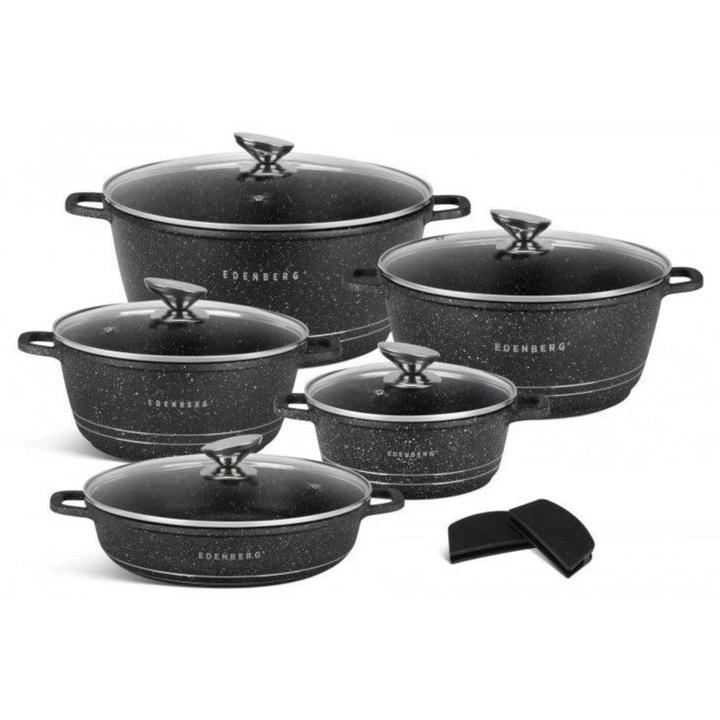 Набір Edenberg EB-12911 ідеально підходить для повсякденного використання на кухні, коли потрібна універсальність та зручність. Він стане незамінним помічником для сімей із різними потребами в обсягах приготування. Великі каструлі дозволять без проблем готувати перші страви або тушкувати м’ясо, сотейник із скляною кришкою – змажити чи тушкувати овочі, контролюючи процес. Якщо ви цінуєте практичність і прагнете підтримувати кухонний порядок без жодних зусиль, цей набір допоможе заощадити час як на готуванні, так і на митті.