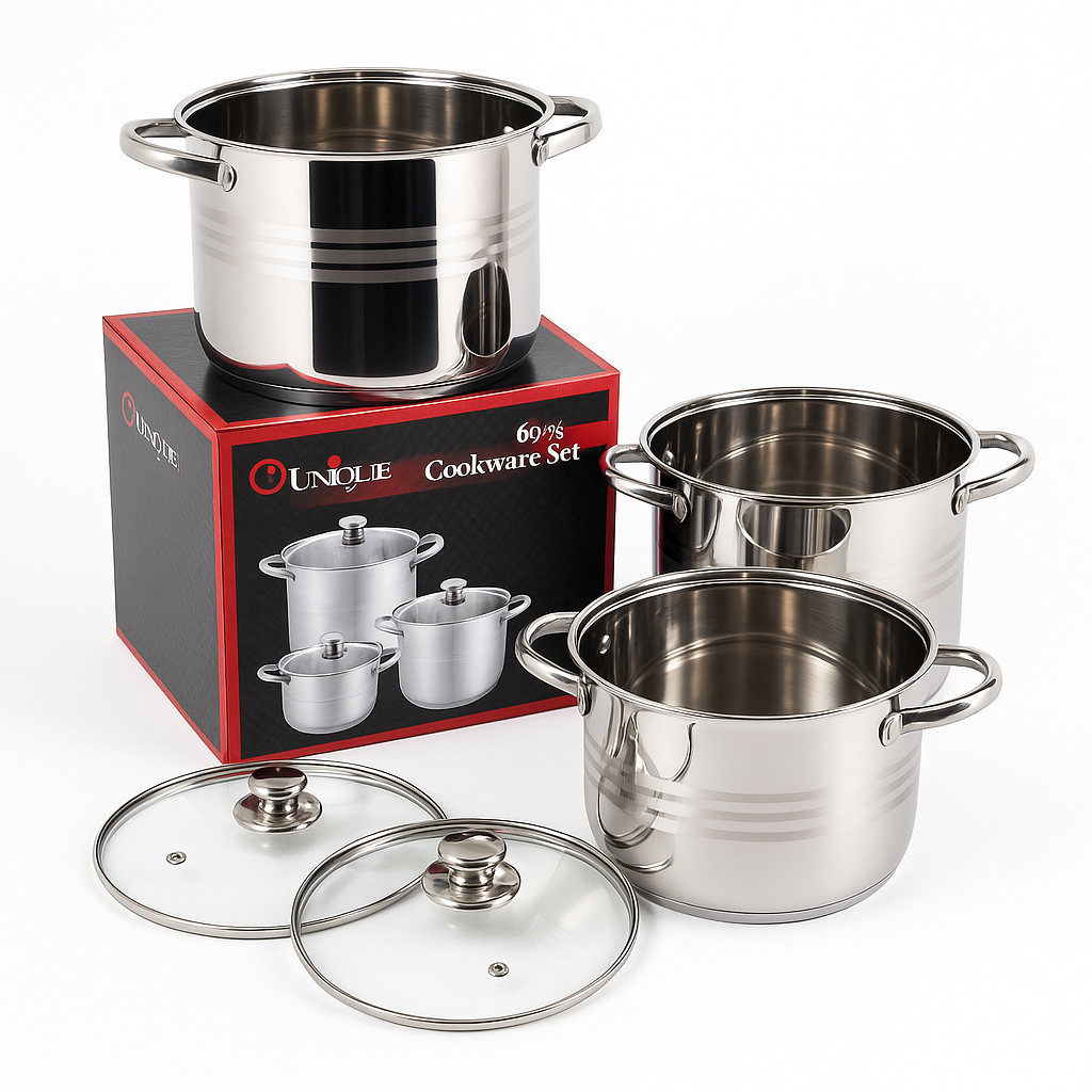 Інвестиція в сучасний набір посуду — це крок до ефективної та комфортної кулінарії. Представлений набір кастрюль з нержавіючої сталі оснащений інноваційним 5-кульовим термоакумулюючим дном, що забезпечує швидке, рівномірне нагрівання та тривале збереження тепла. Завдяки цим властивостям ви зможете значно зекономити годину при приготуванні страв та знизити витрати на енергію.