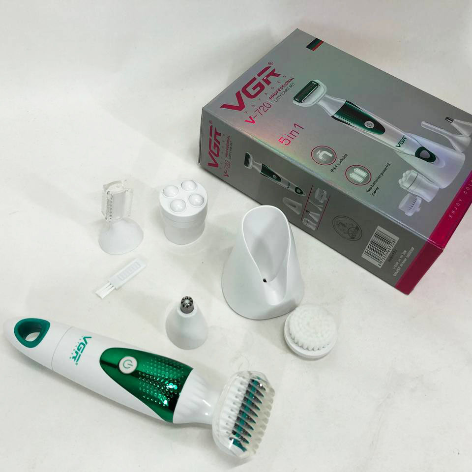 Має п’ять насадок: -бритвена; -насадка щітка; -насадка масажна — насадка для носа та вух — насадка для брів. Компактний, ергономічний щільно прилягає до вашої долоні, більш простий в експлуатації. Час зарядки 8 годин