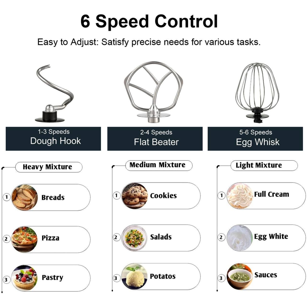 • 6 швидкісних режимів для ідеального контролю текстури страв.