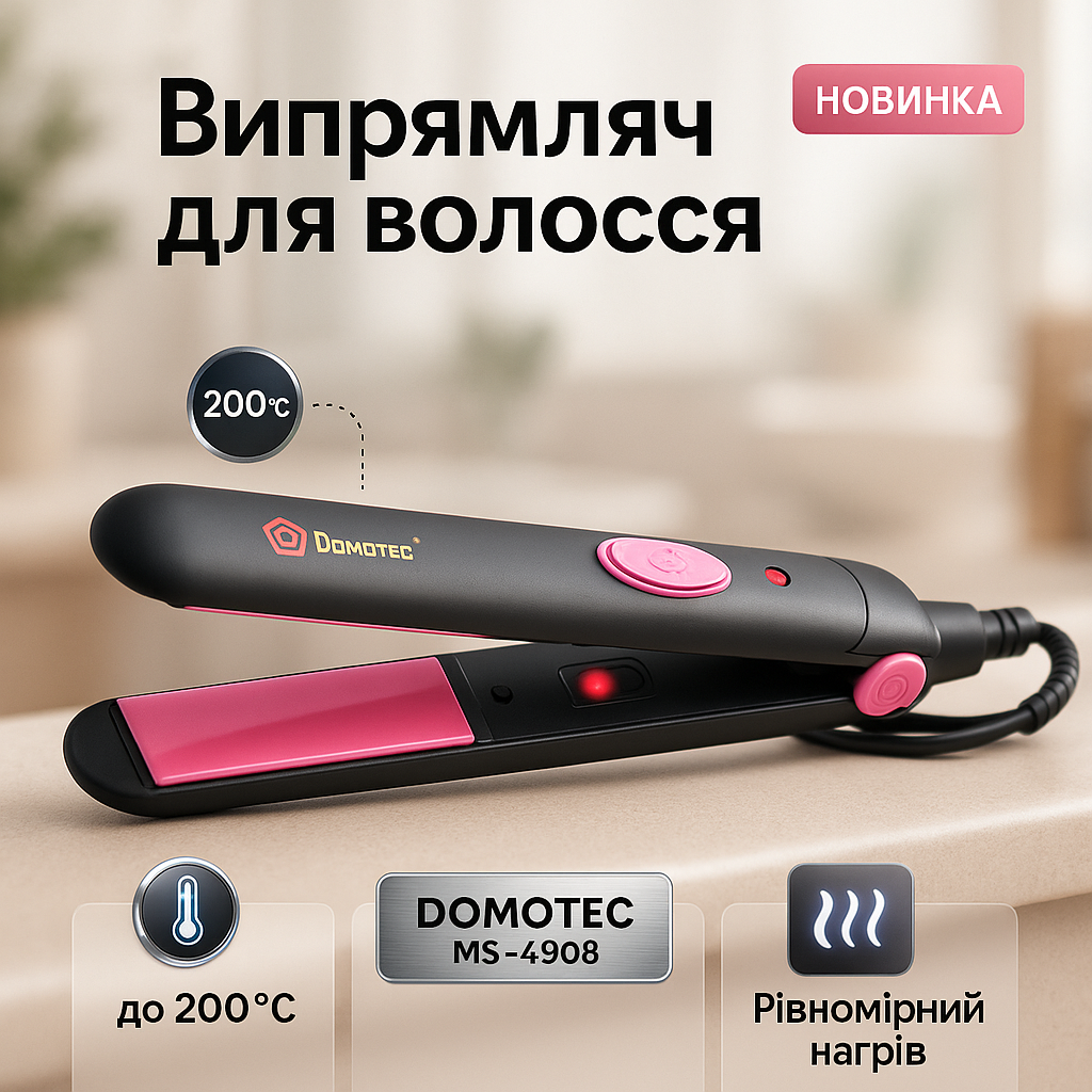 Domotec MS-4908 – це універсальний стайлер, який ідеально підходить для швидкого та ефективного випрямлення волосся будь-якої структури і довжини. Завдяки технології PTC, прилад забезпечує моментальний та рівномірний нагрів, що дозволяє досягти професійного результату за короткий час. Ергономічний дизайн і не нагревающаяся ручка гарантують зручність і безпеку в процесі укладки, а температура до 200°C зберігає здоров’я волосся.