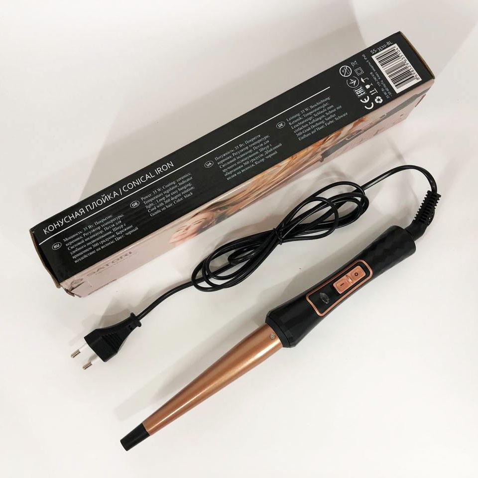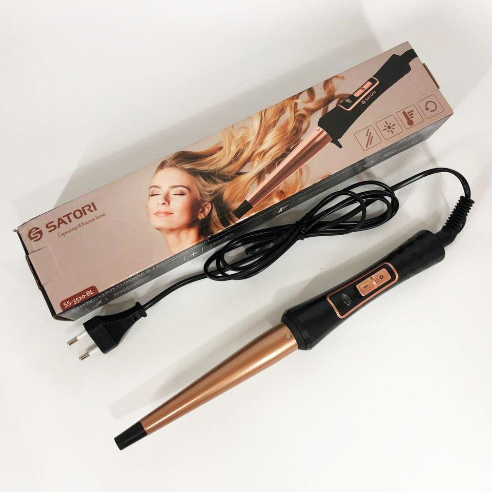 Щипці-плойка для волос Satori SS-3510-BL — це ідеальний інструмент для створення стильних та пружних локонів. Завдяки конусообразній формі ви зможете легко формувати локони різного діаметра, що дозволяє кожного дня змінювати свою зачіску відповідно до настрою.