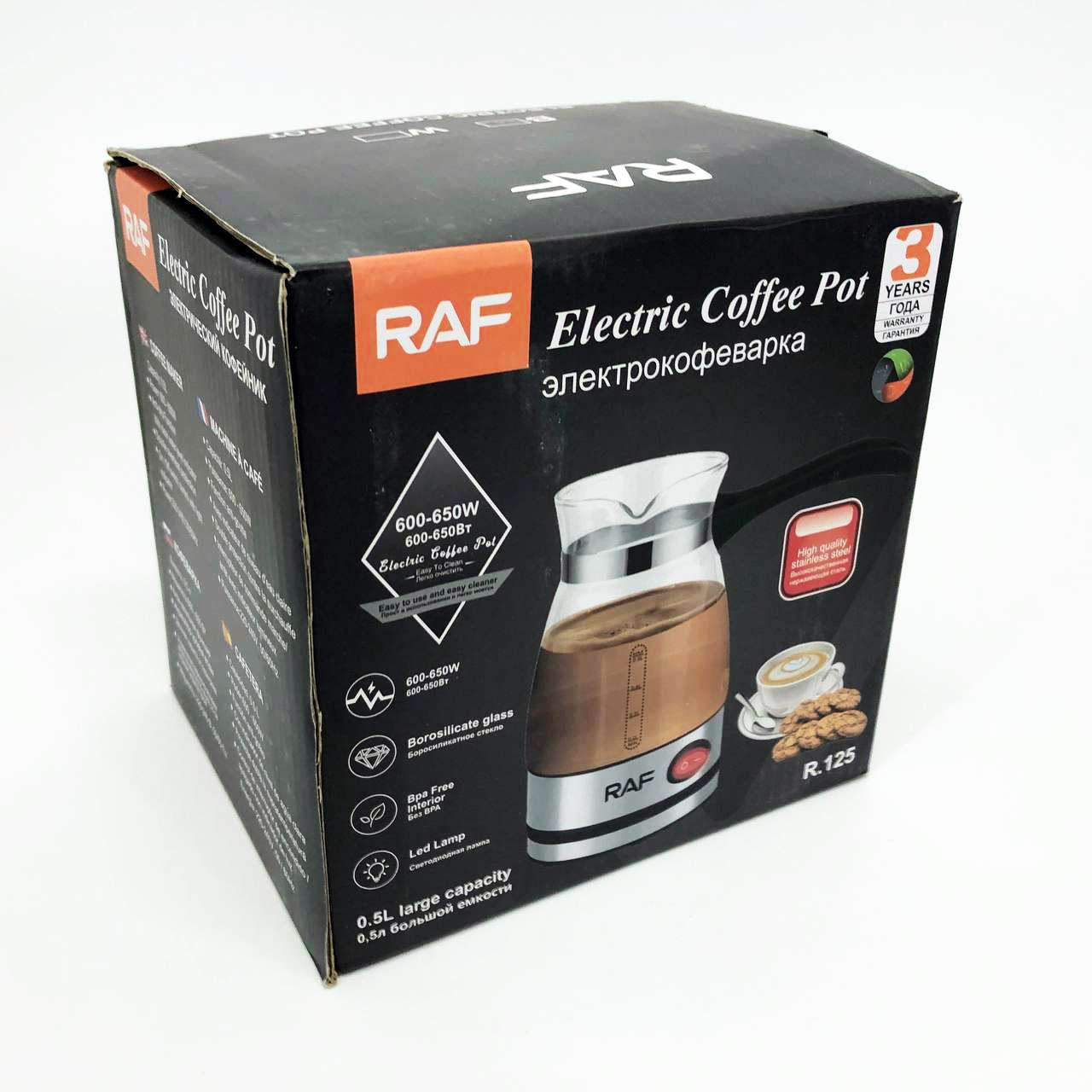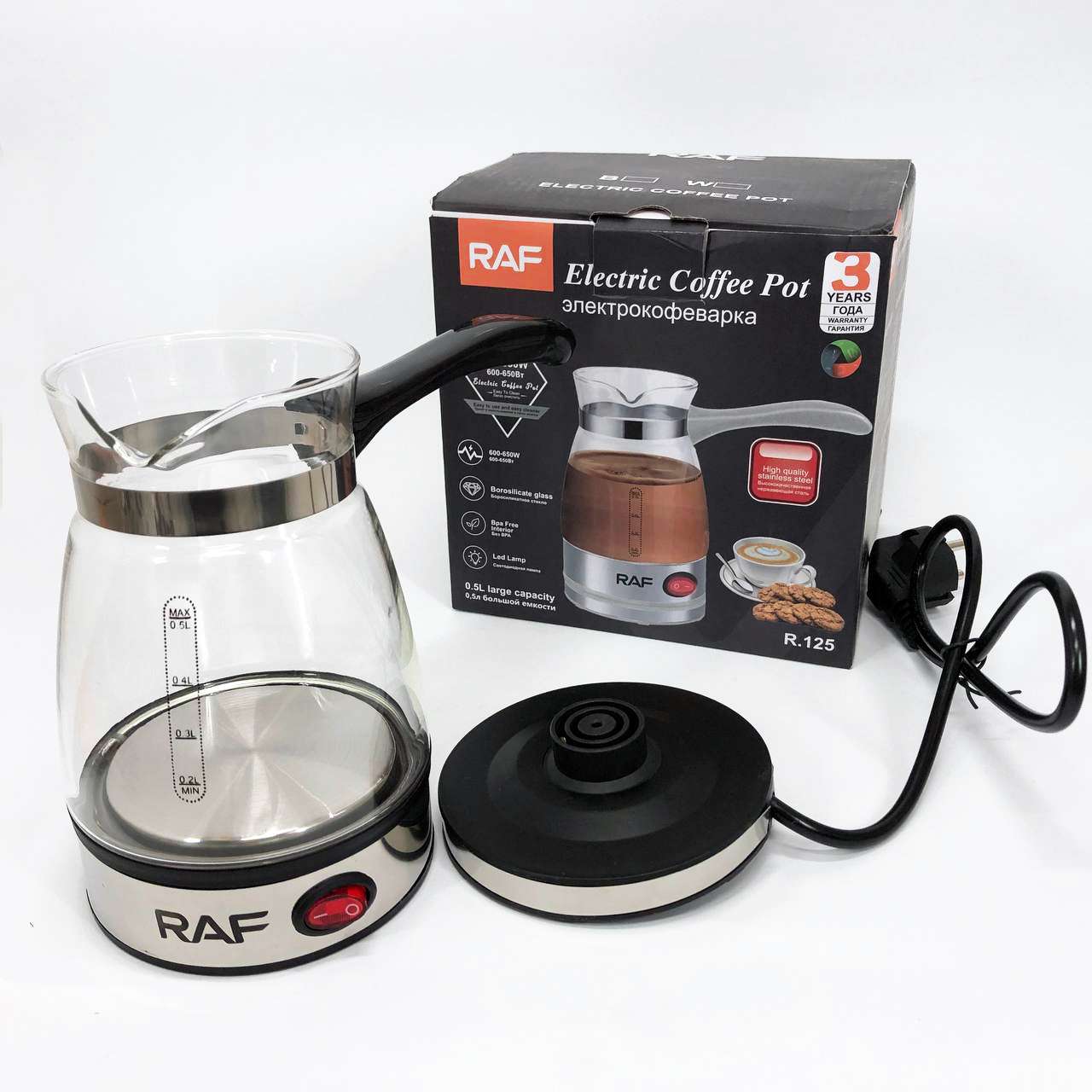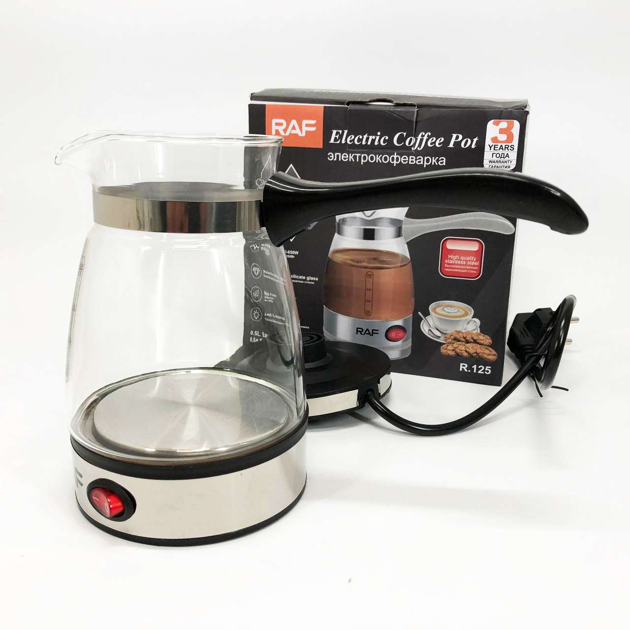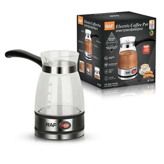 Електрична турка для кави RAF R.125 Кавоварка зі скляною чашею 500мл 600 Вт. Колір: чорний