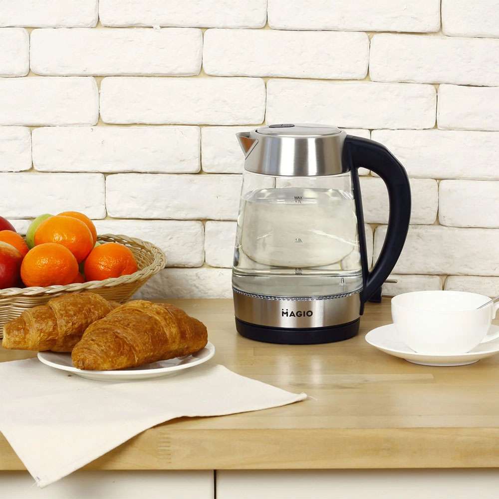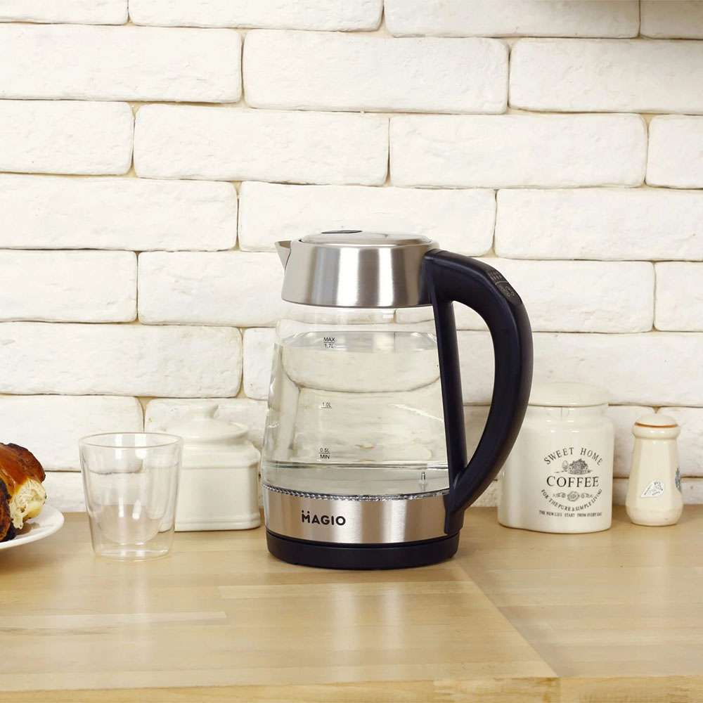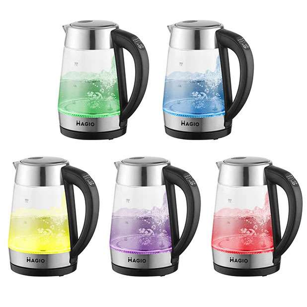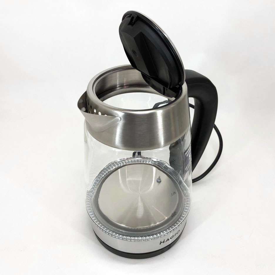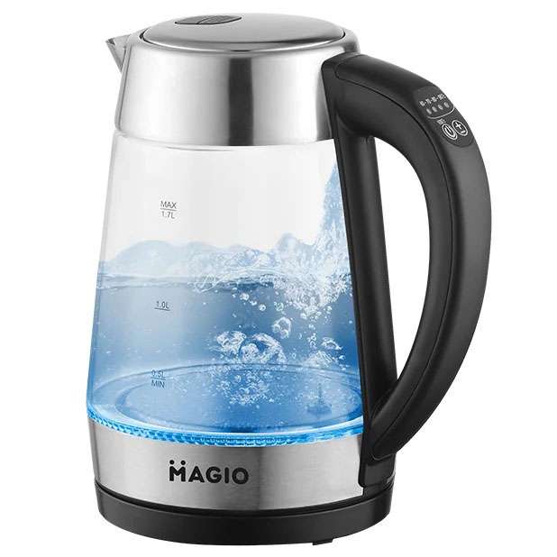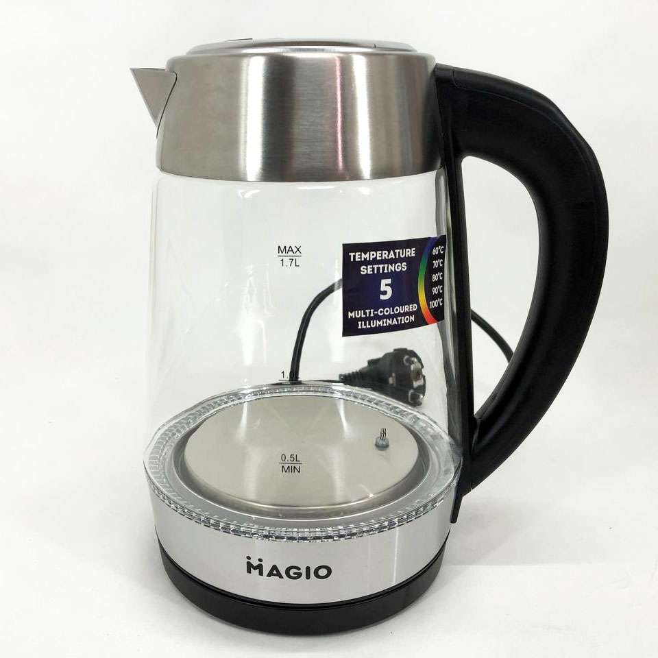Чайник MG-499 об’ємом 1,7 л поєднує в собі стильний дизайн із чудовою якістю та довговічністю. Корпус виготовлений з прозорого термостійкого скла, завдяки чому у воді просто ні звідки з’явитися неприємним присмакам або навіть небезпечним для здоров’я речовинам. Внутрішній світловий індикатор роботи ефектно осяює киплячу воду різнобарвним підсвічуванням. При натисканні кнопки механізм відкриття кришки спрацьовує м’яко і плавно, виключаючи розбризкування конденсату з кришки. Прихований нагрівальний елемент забезпечує швидке кип’ятіння, надійність та простоту очищення чайника, а вбудований контролер захищає від перегріву. Комплексна система безпеки для запобігання короткому замиканню та википанню води. Захист від перегріву забезпечить автоматичне вимкнення при недостатньому рівні води.