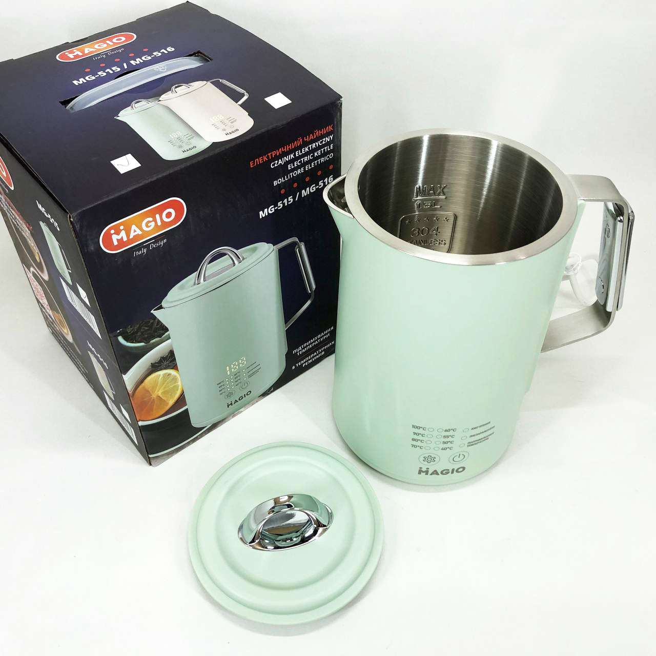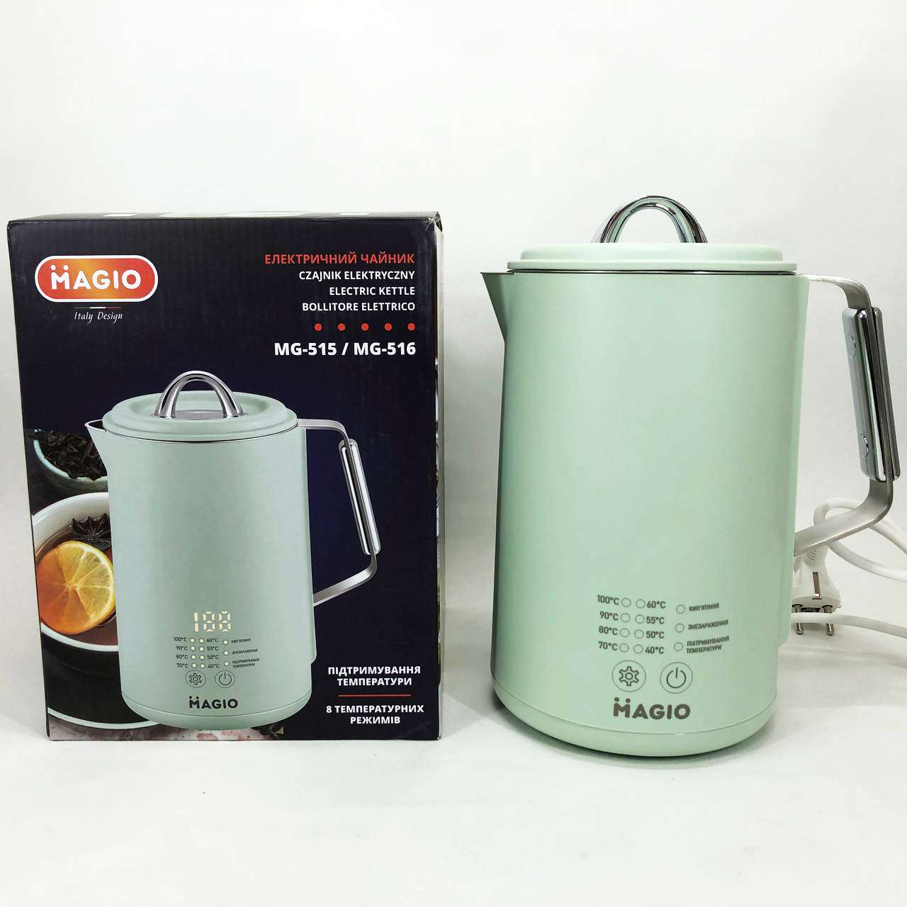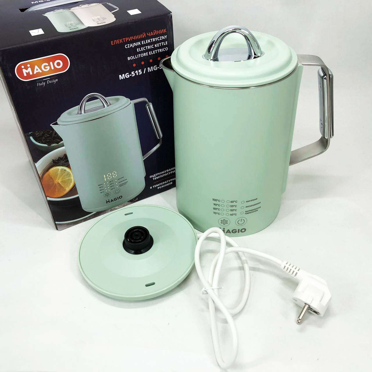 Magio MG-518 – це не просто чайник, а справжній помічник для любителів чаю та кави. Завдяки функції регулювання температури (від 40°C до 100°C) ви зможете вибрати ідеальний режим для заварювання зеленого, чорного, трав’яного чаю або дитячих сумішей. дисплей здійснює управління простим та інтуїтивно зрозумілим.