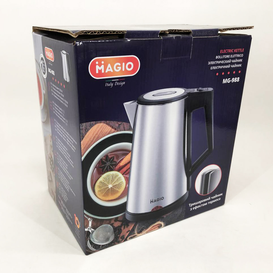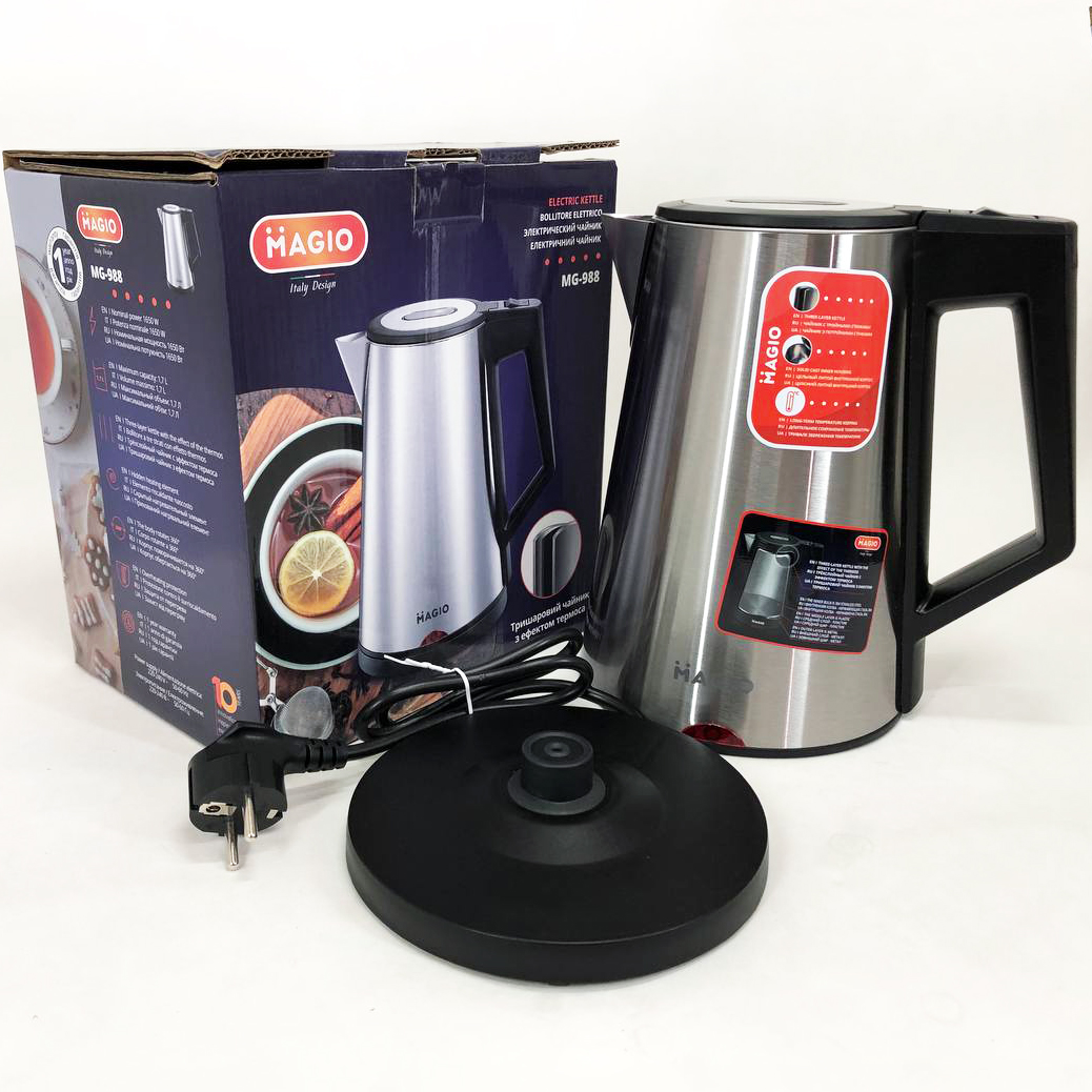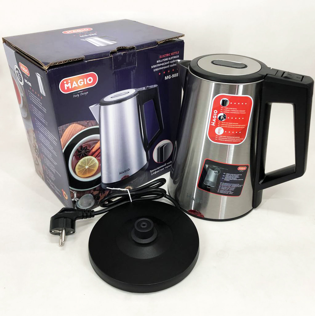 Чайник-термос MG-988 об’ємом 1.7 л поєднує в собі стильний дизайн з чудовою якістю та довговічністю. Чайник-термос завдяки потрійним стінкам нагрівається набагато швидше, заощаджуючи електроенергію та час, а ефект термоса збереже гарячу воду тривалий час.