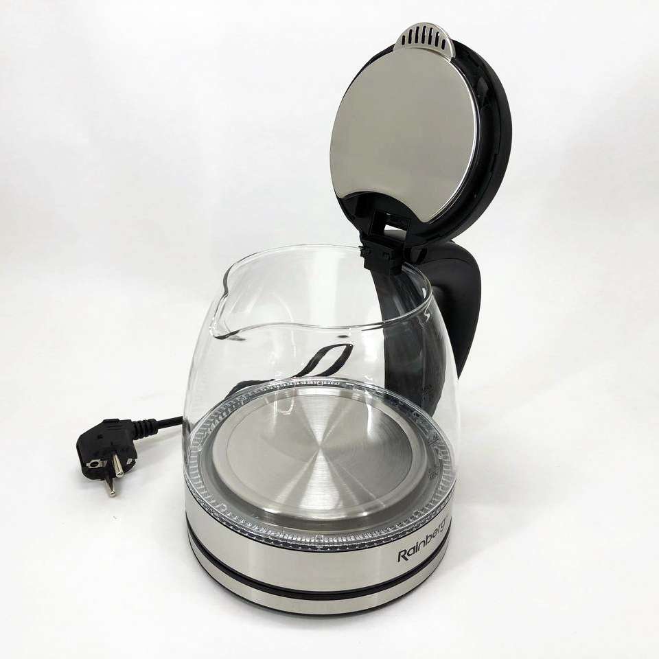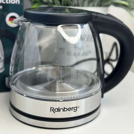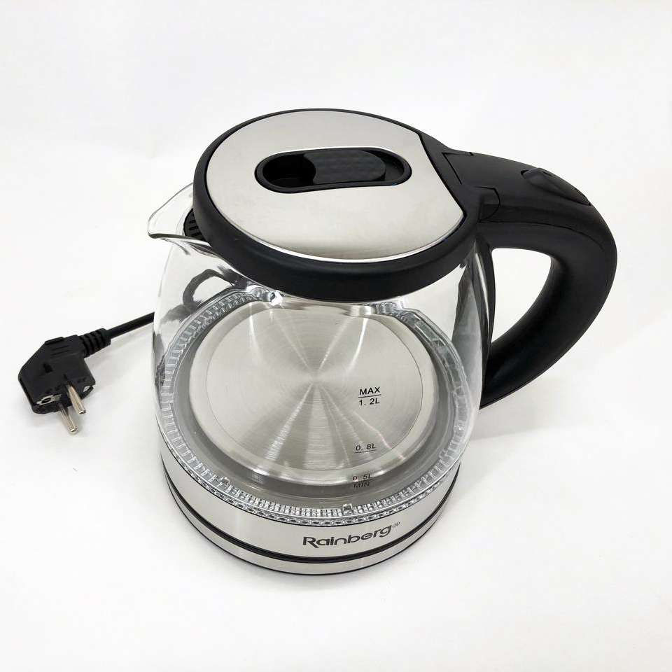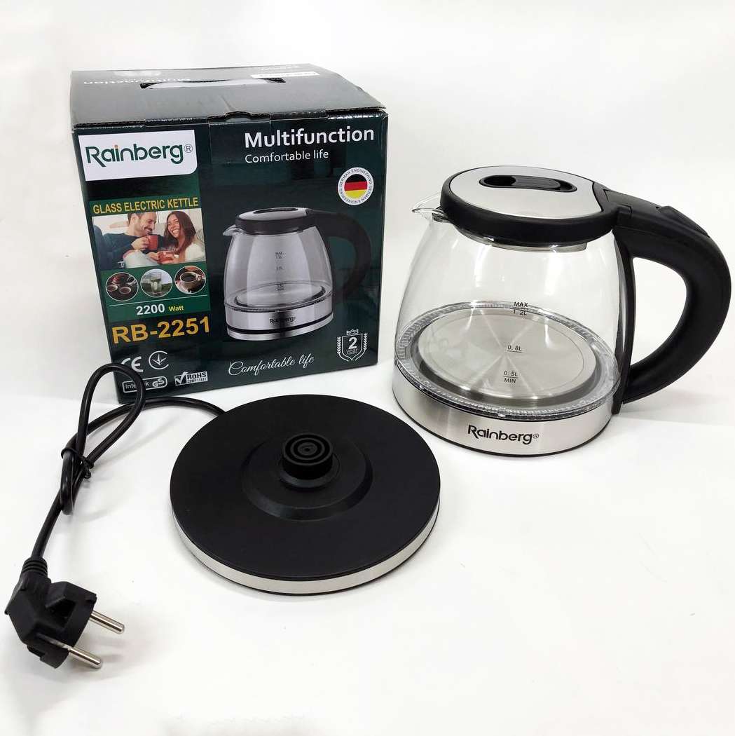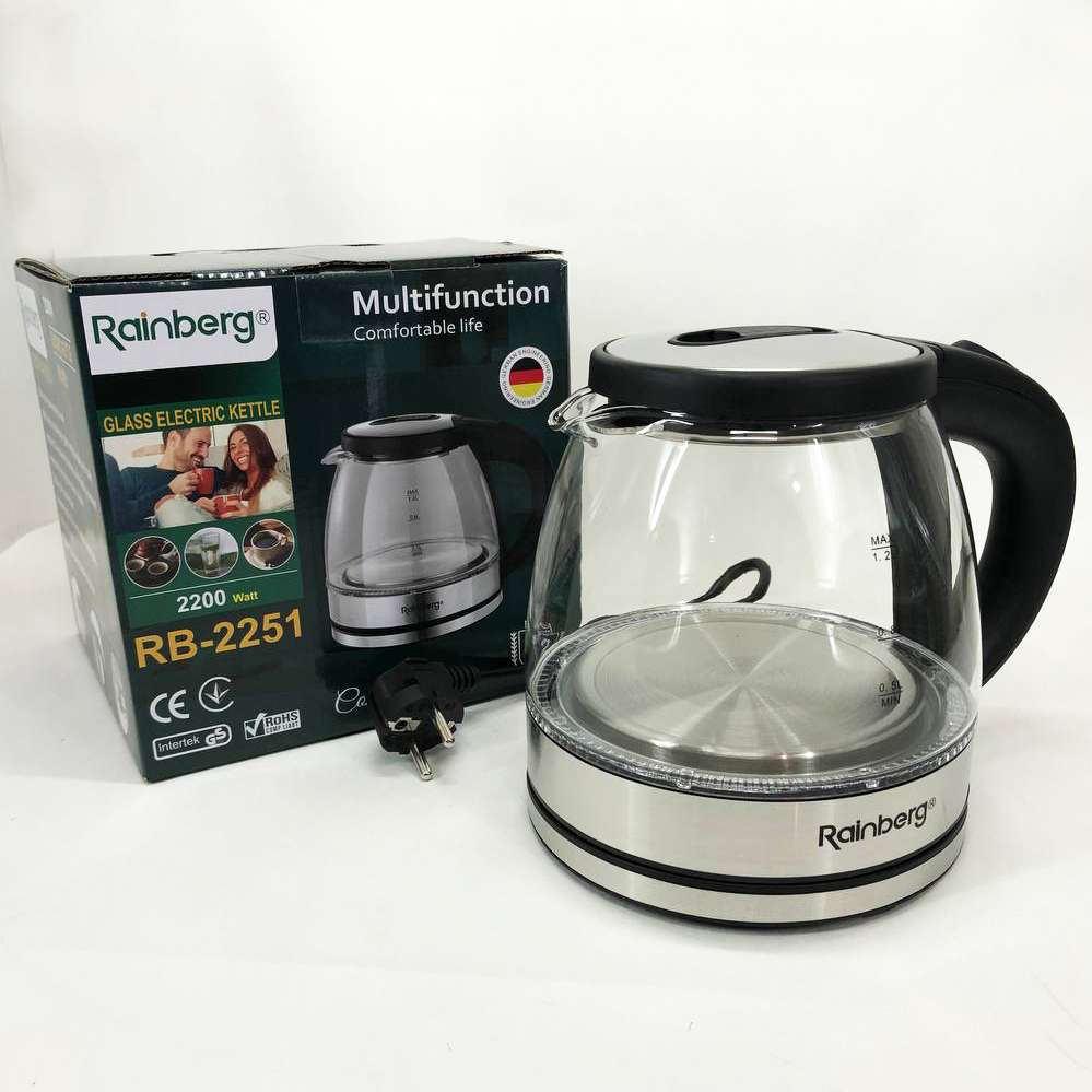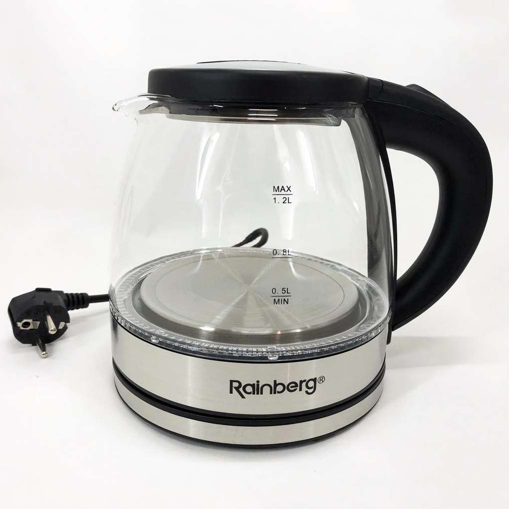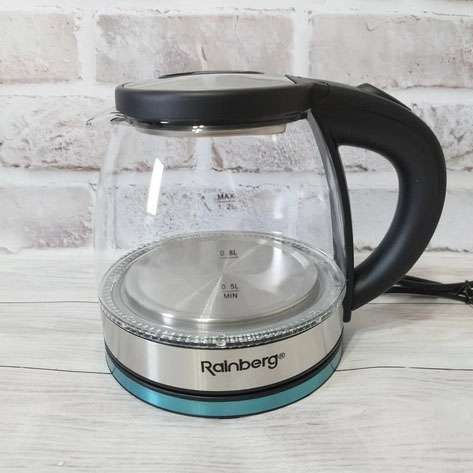 Скляний з підсвічуванням електричний чайник rainberg RB-2251 з дисковим нагрівальним елементом відмінно впишеться в інтер’єр вашої кухні, порадує гарним дизайном та простотою використання.