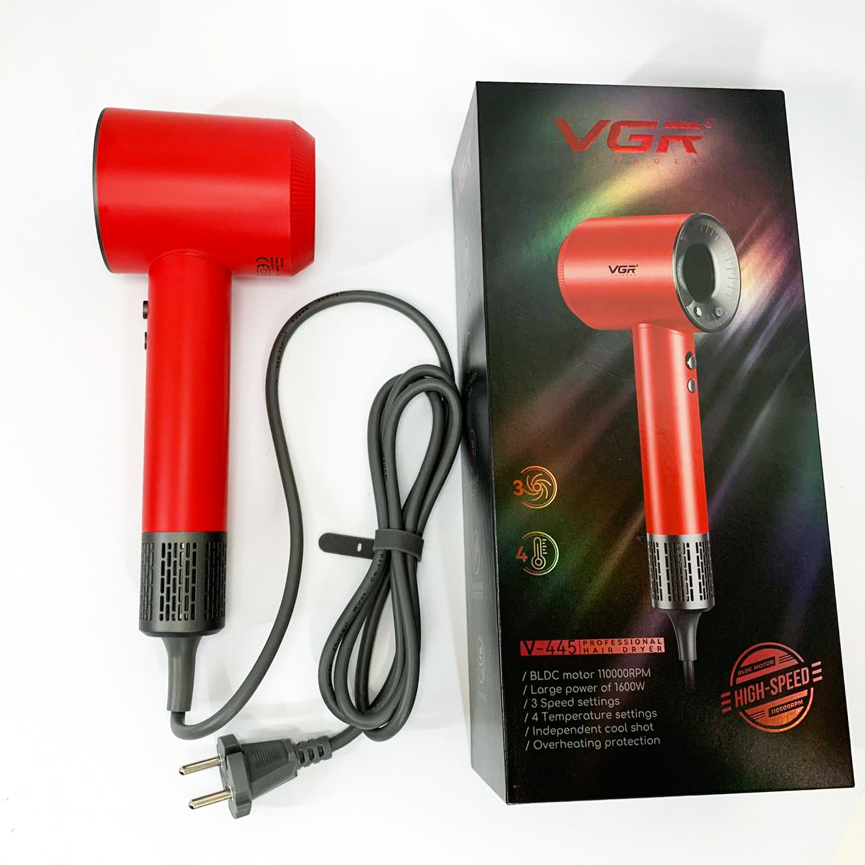 Втомились від довгих сеансів сушіння, які пересушують волосся і втомлюють руки? VGR V-445 RED створений, щоб вирішити ці проблеми — потужність і контроль в одному стильному корпусі.