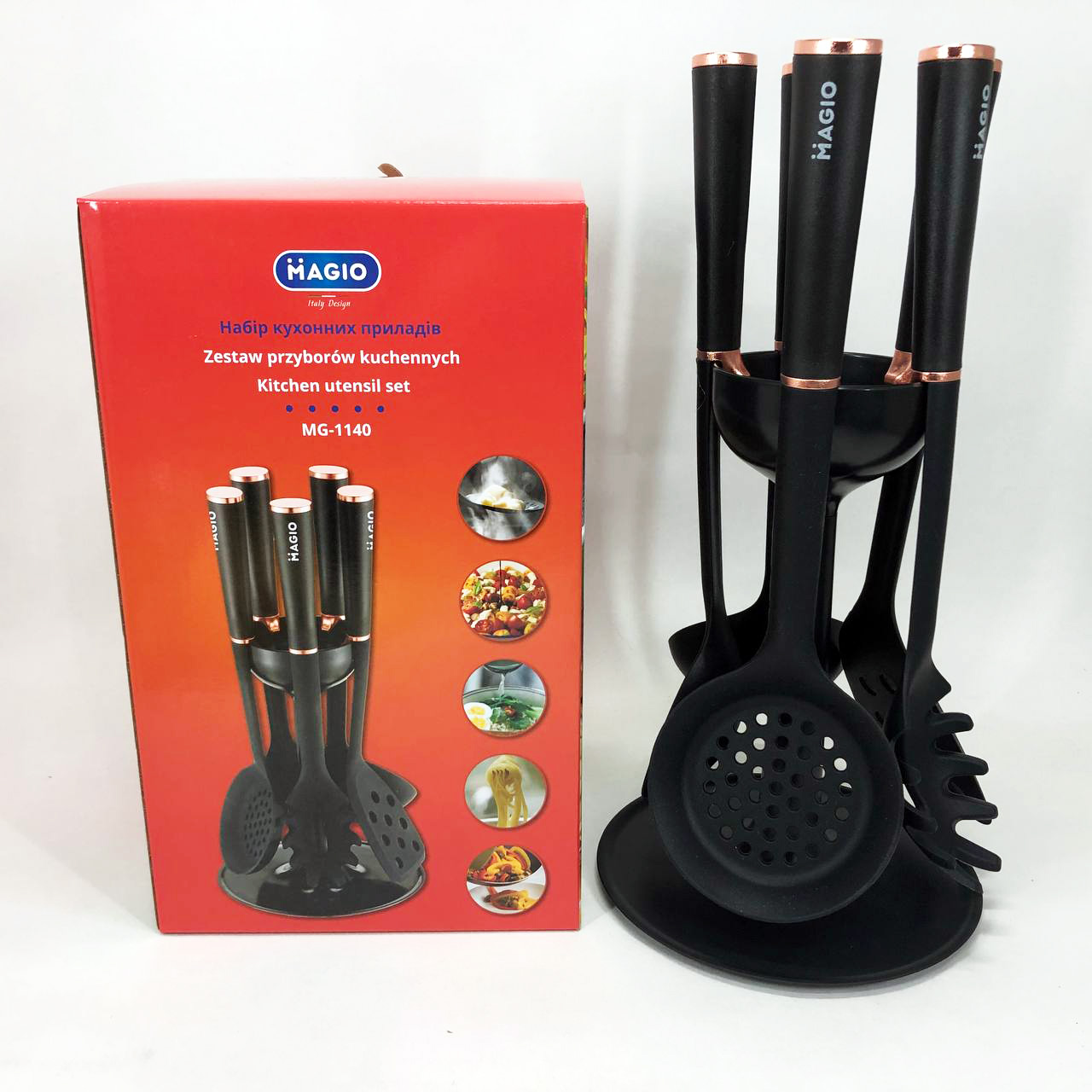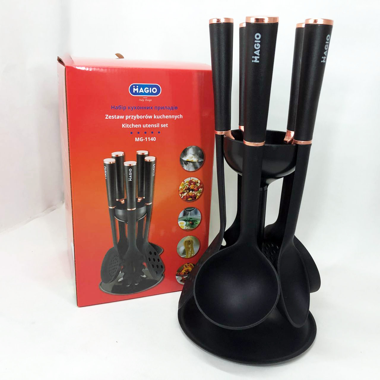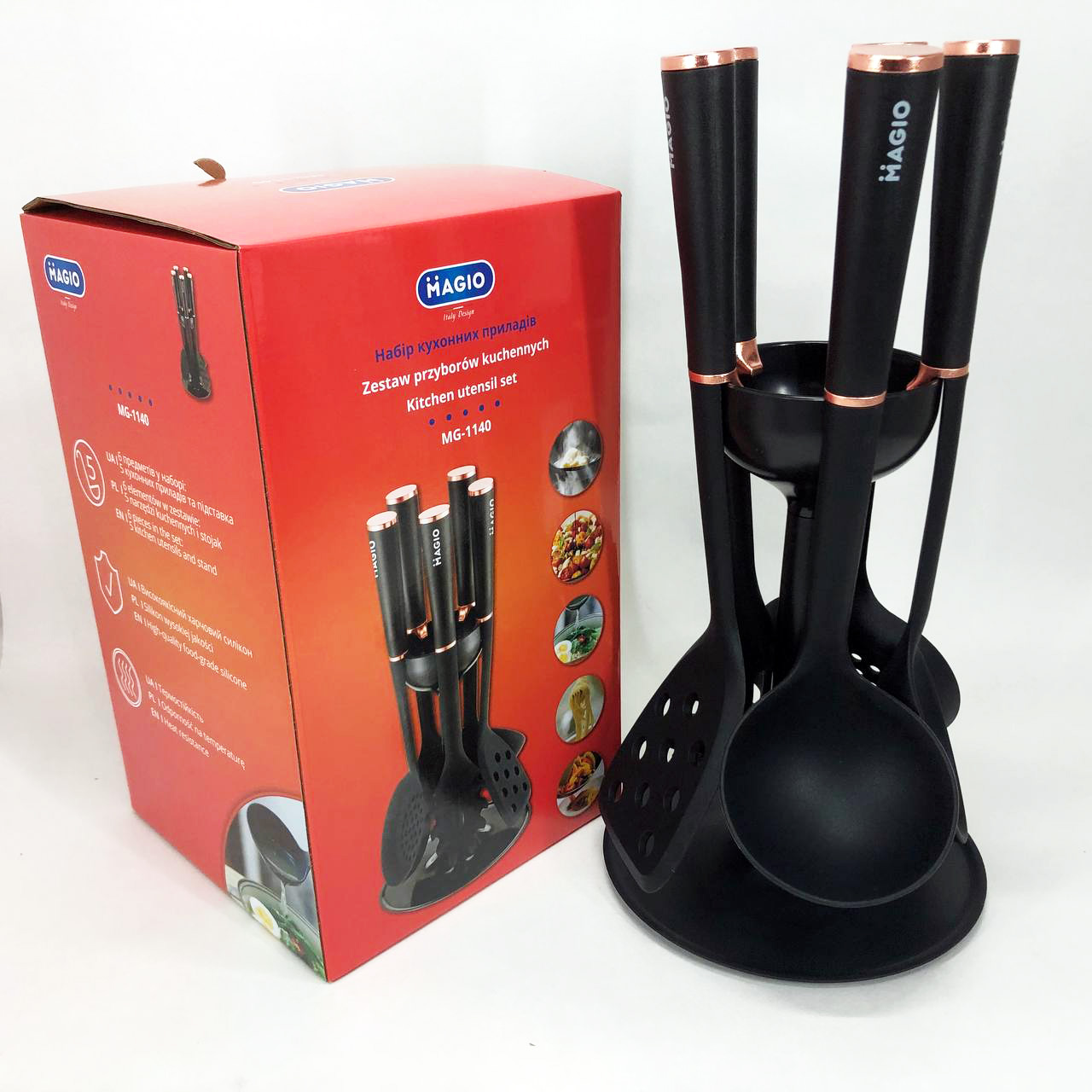 Набір кухонного приладдя MAGIO MG-1140, набір поварешок на підставці кухонний набір лопаток