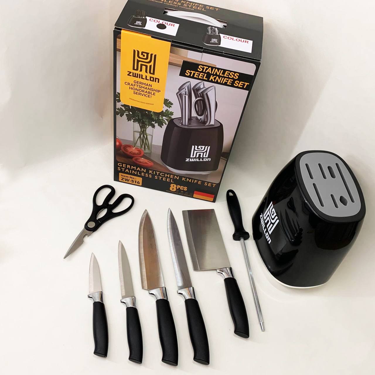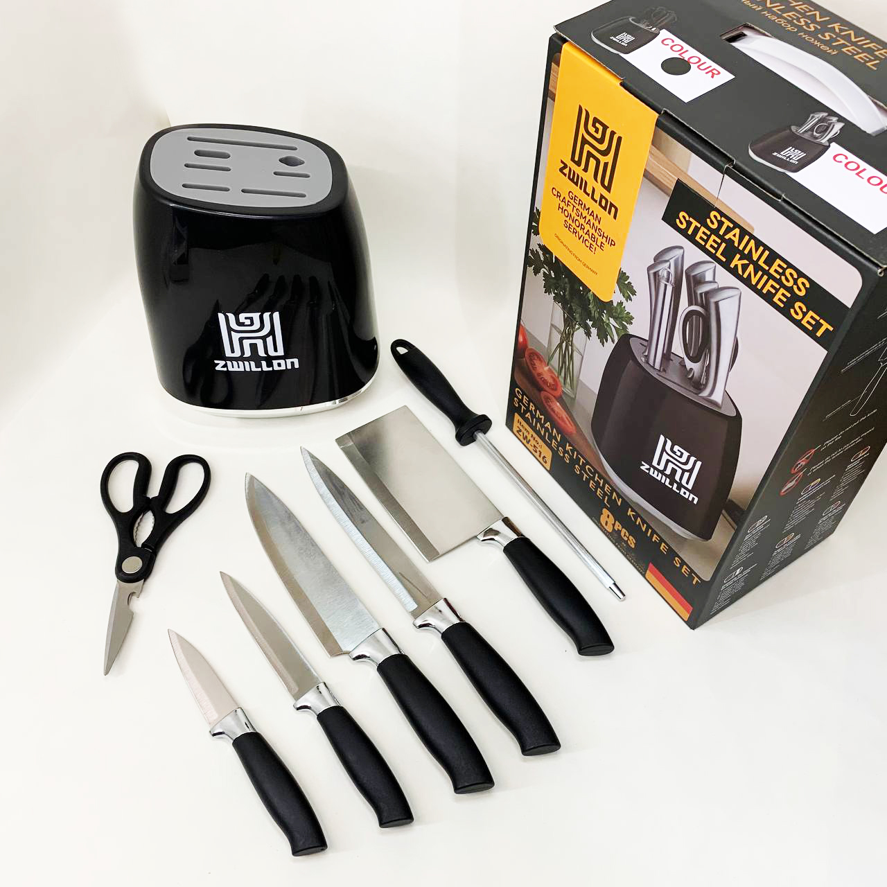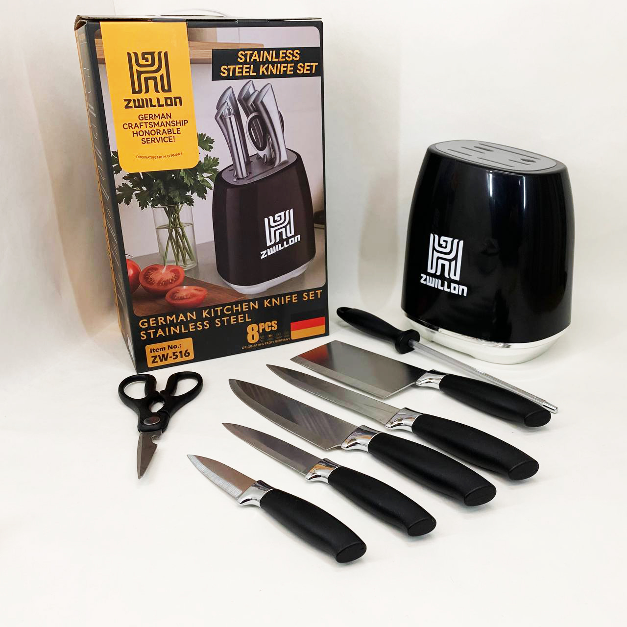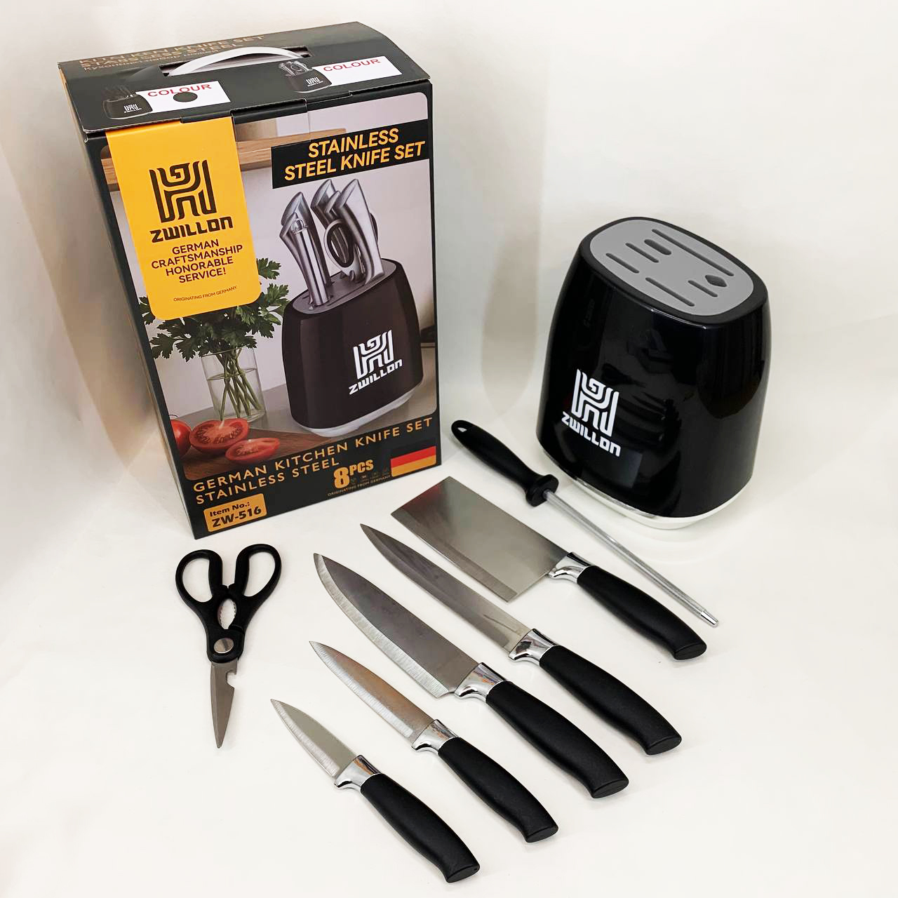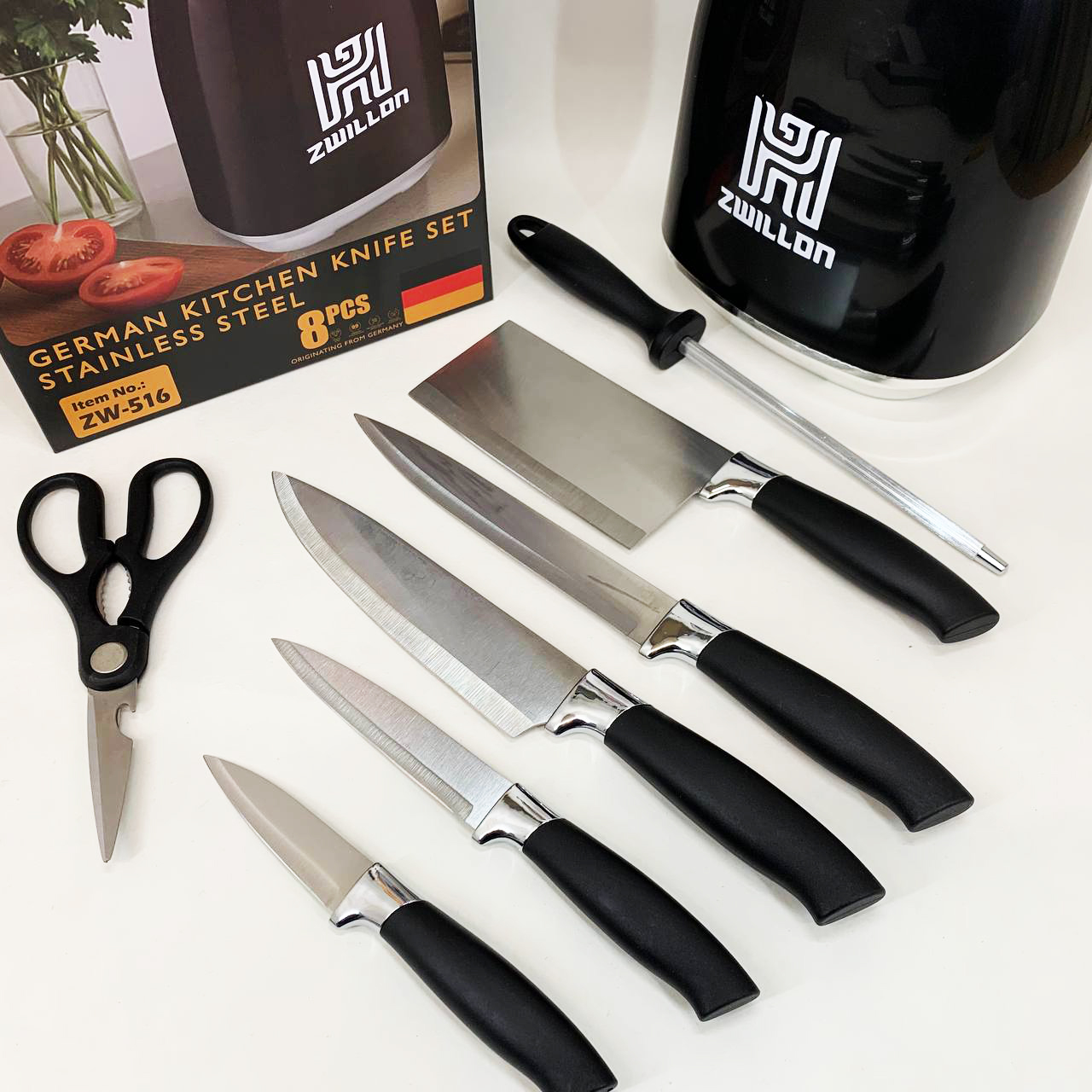 - Комплектація: 5 ножів, мусат, ножиці, підставка