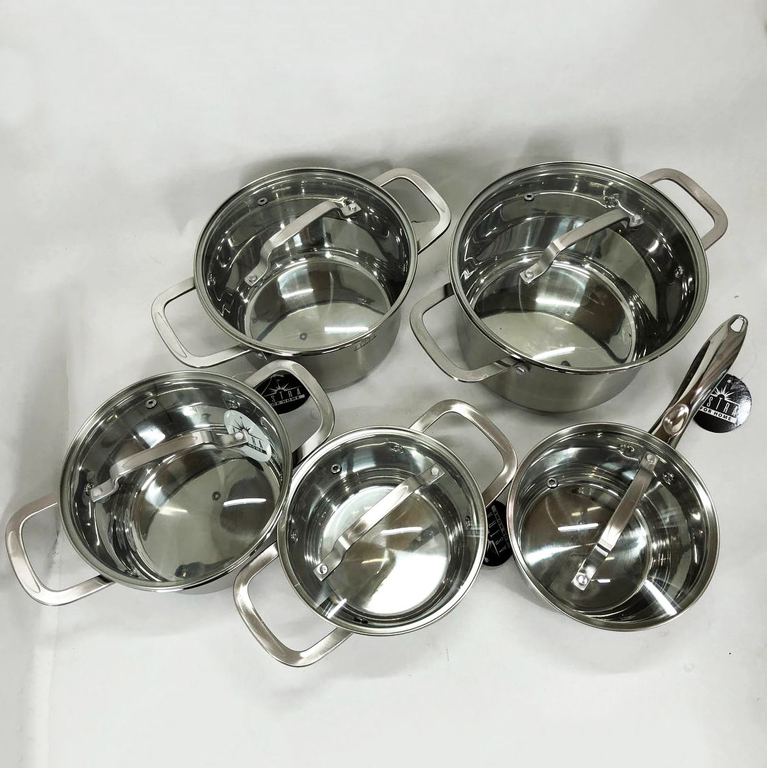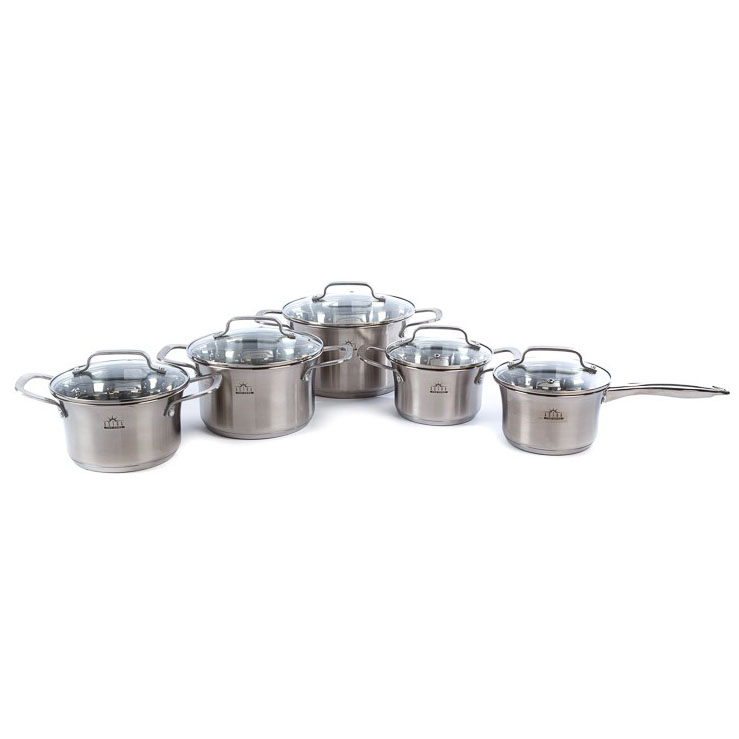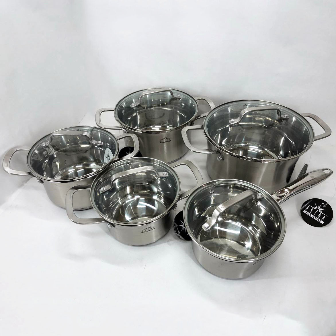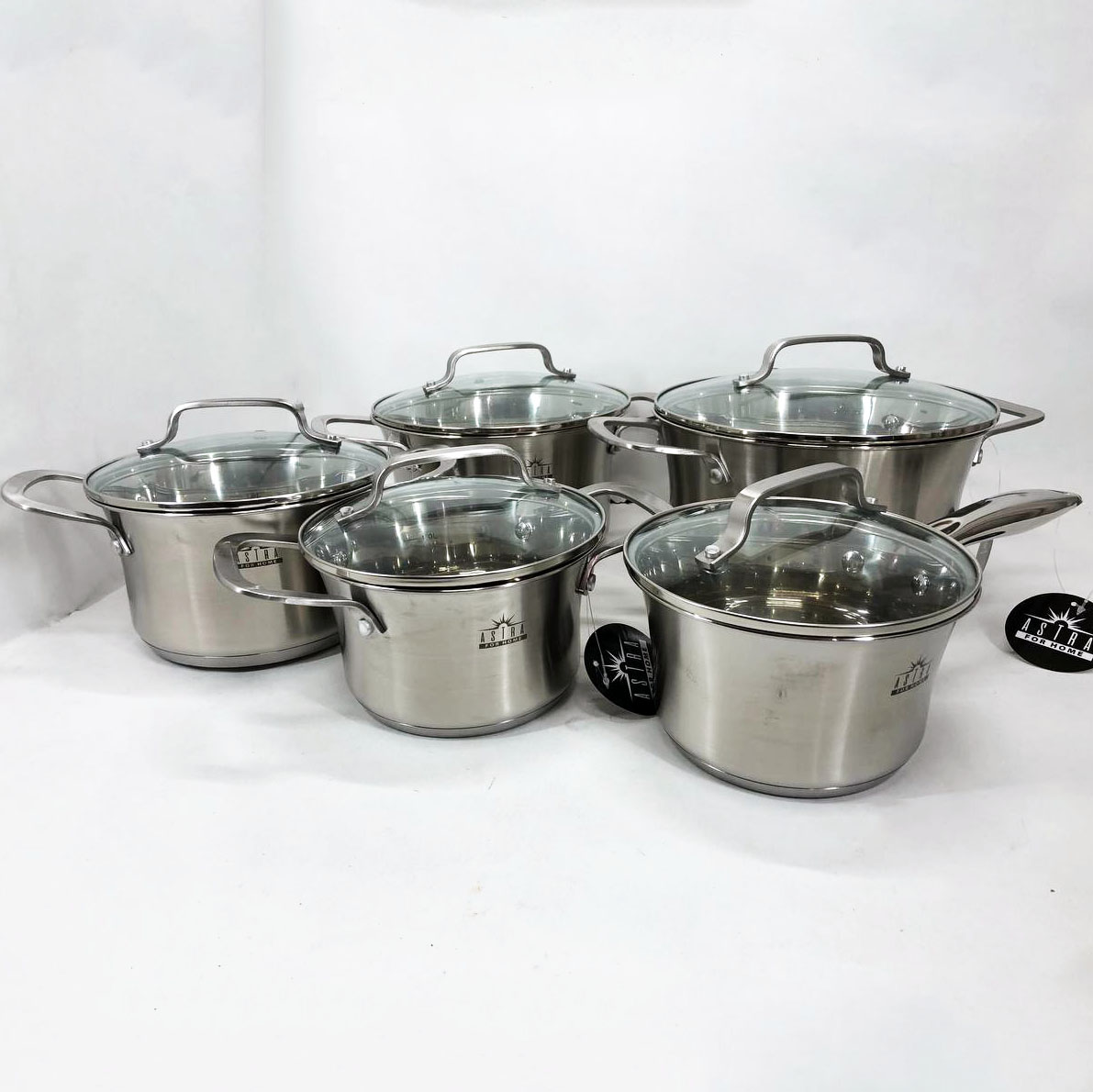 Набір посуду ASTRA виготовлений з високоякісної нержавіючої сталі 18/10 (18% Хром & 10% Нікель) такий матеріал робить набори міцними і довговічними. Посуд на відміну від інших видів металевого посуду не впливає на смак їжі, що готується. Всі ємності мають дзеркальне полірування зовні та матове всередині. П’ятишарове капсульне дно не деформується при нагріванні і забезпечує швидкий і рівномірний розподіл тепла. Ручки каструль клепні, зручно розташовані, ергономічні. Скляні кришки з отвором для виходу пари дозволять контролювати весь процес приготування в оптимальному режимі.
